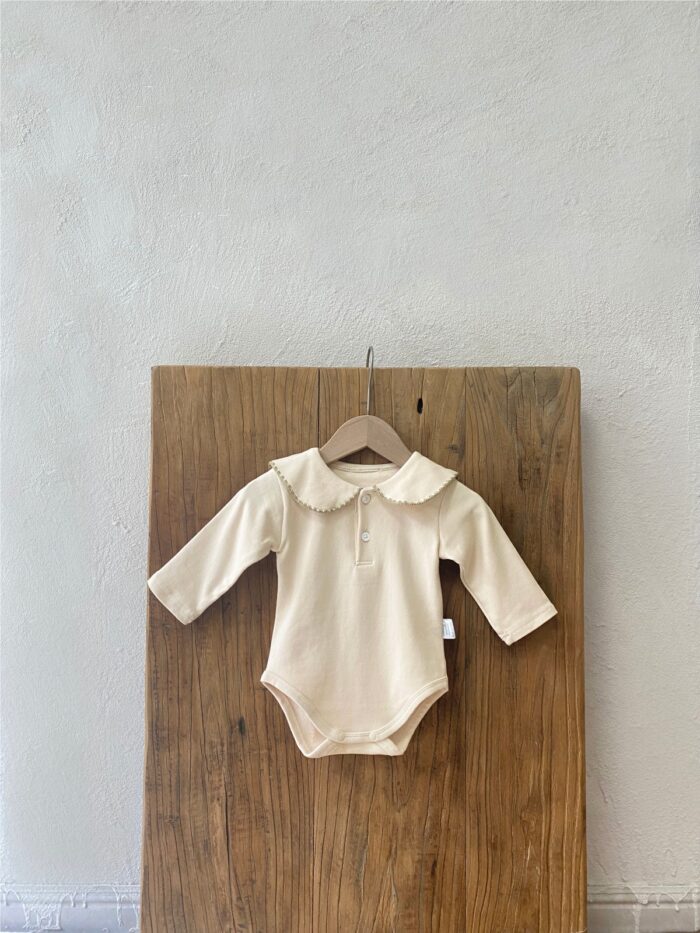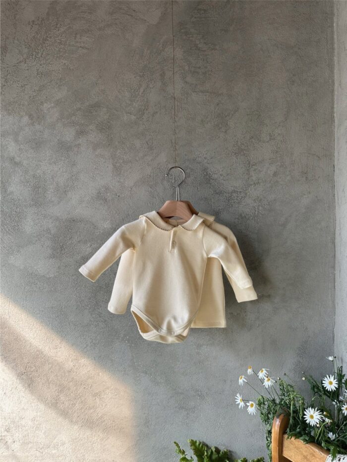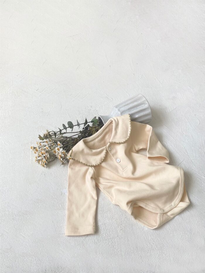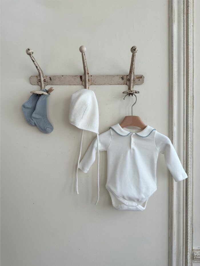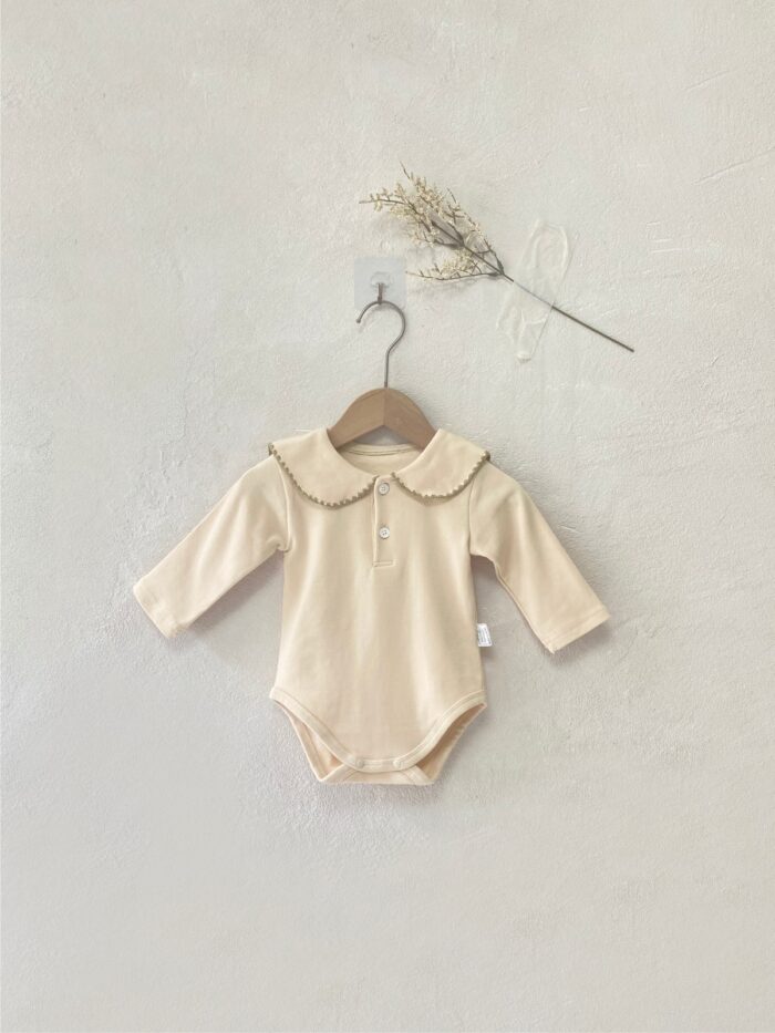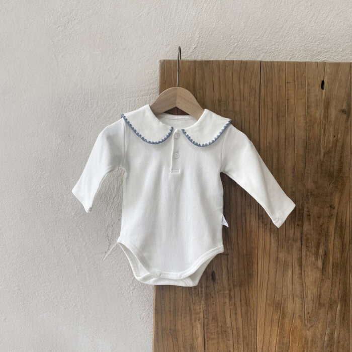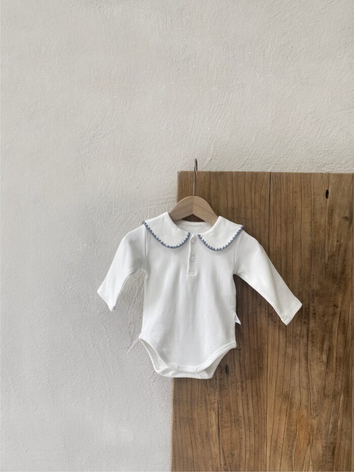 韓版秋季 66~90 – 滾邊小圓領包屁衣 / 二色