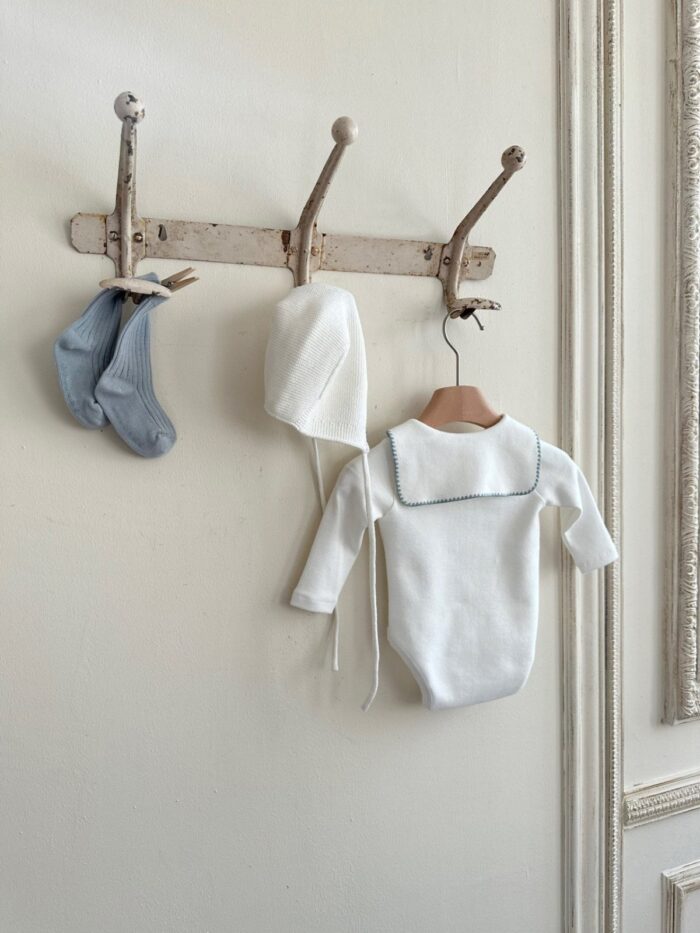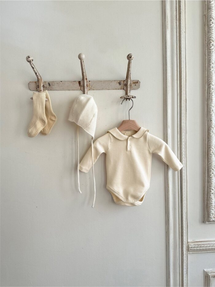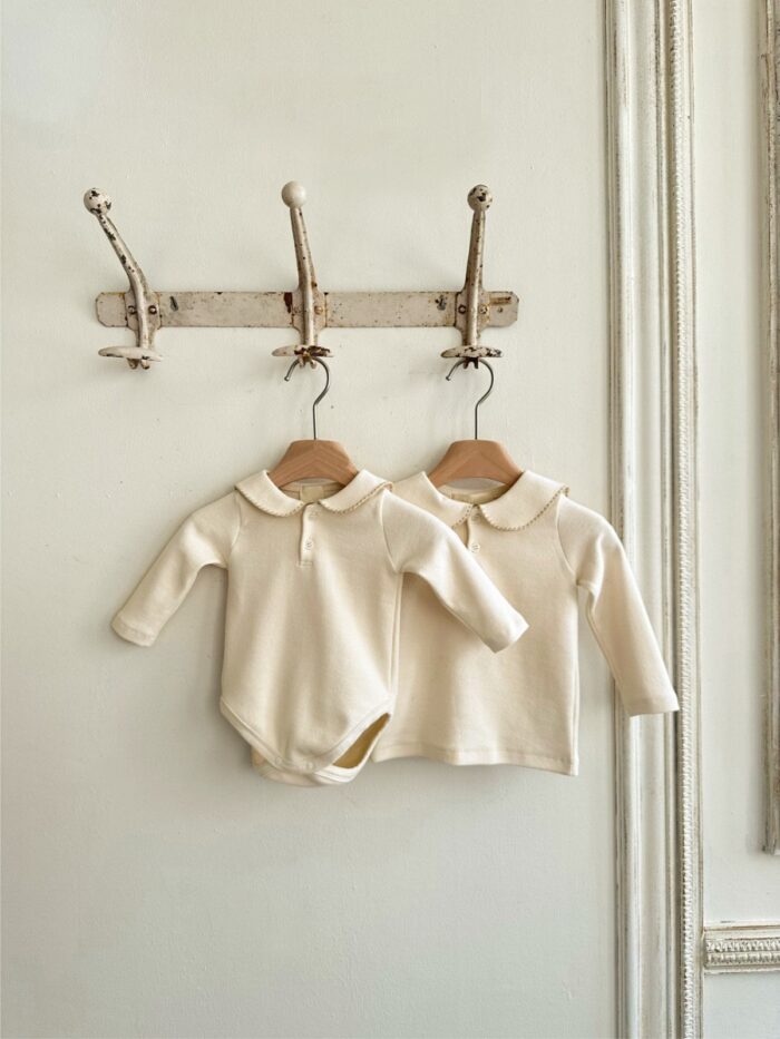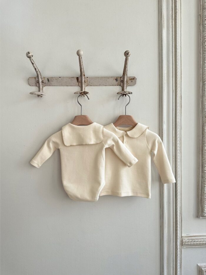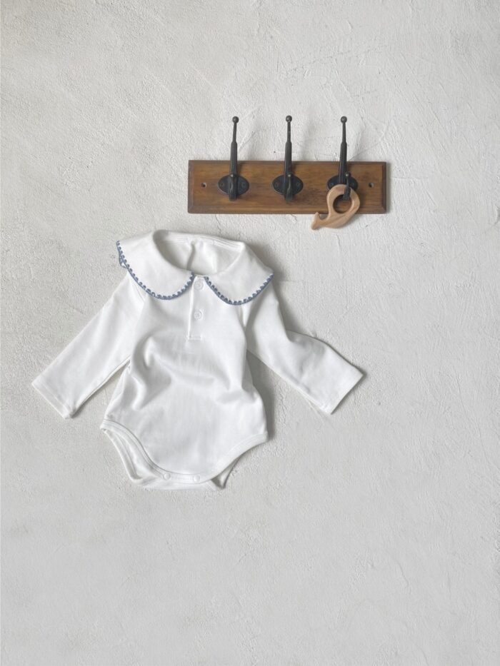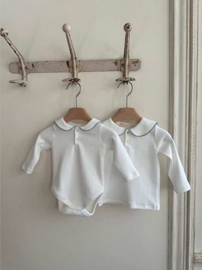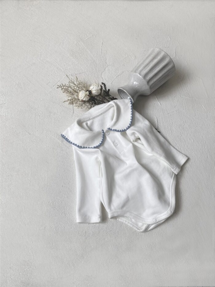 韓版秋季 66~90 – 滾邊小圓領包屁衣 / 二色