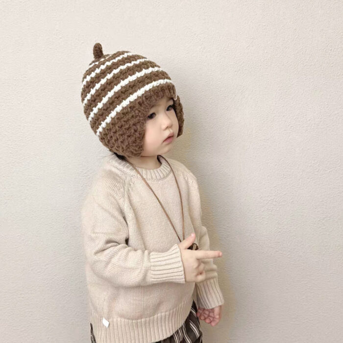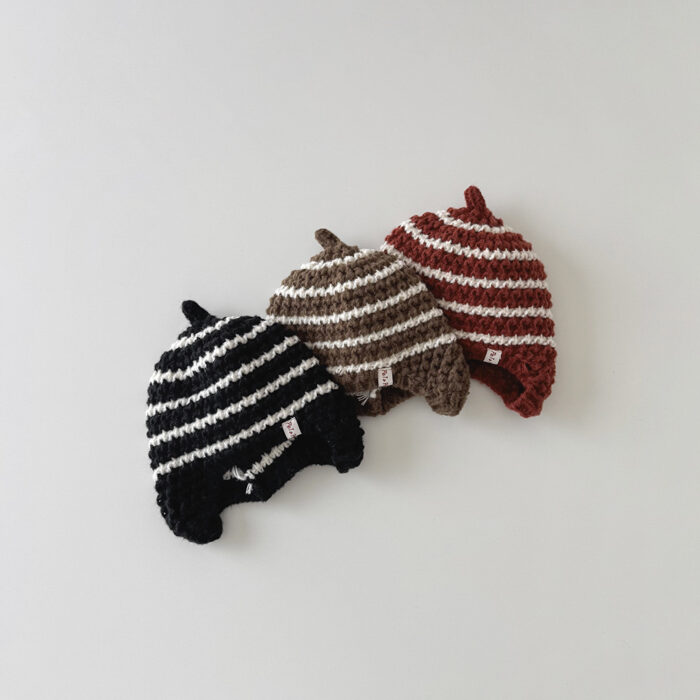 冬季童帽2~6y – 橫條百搭針織毛線帽 / 三色
