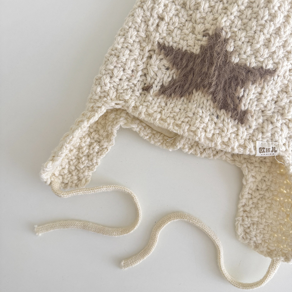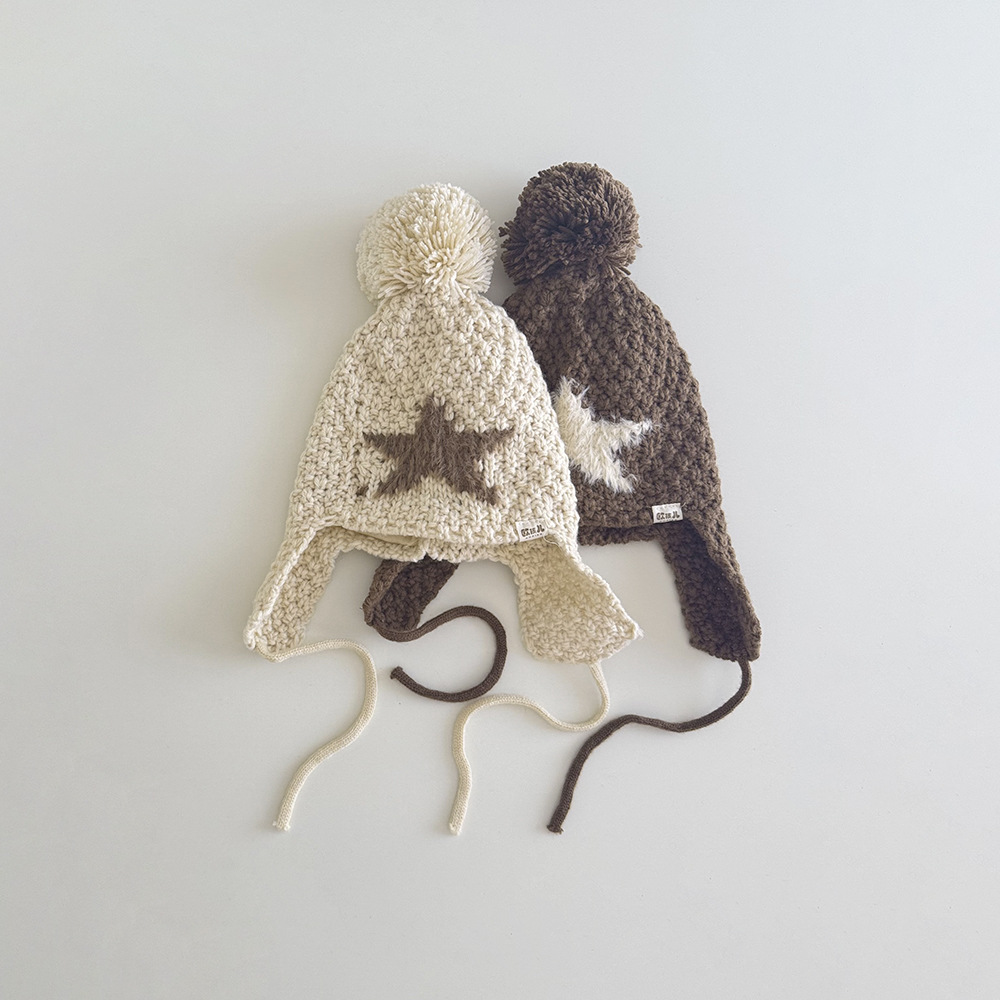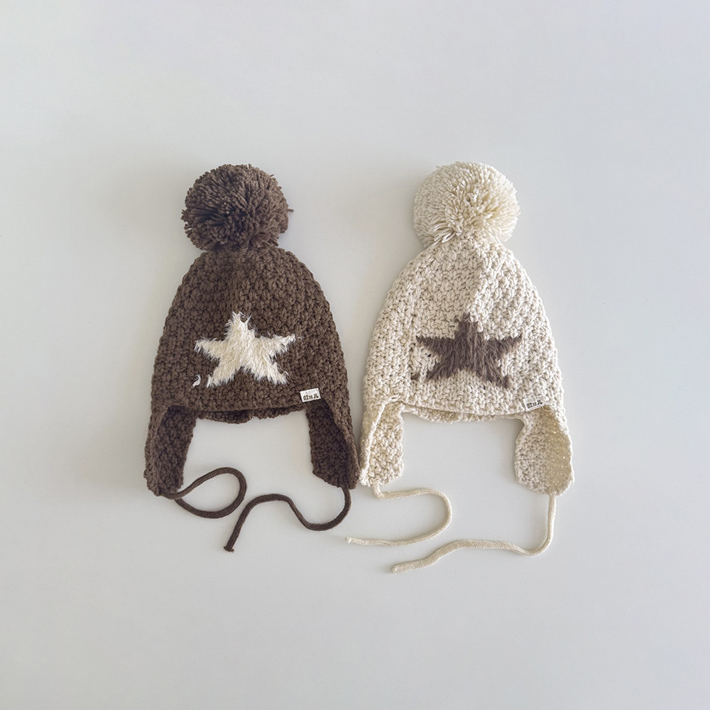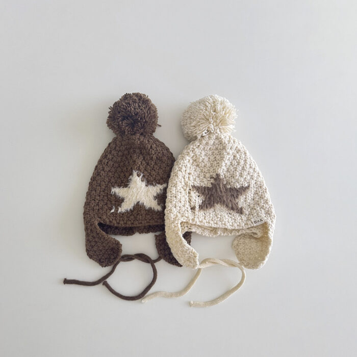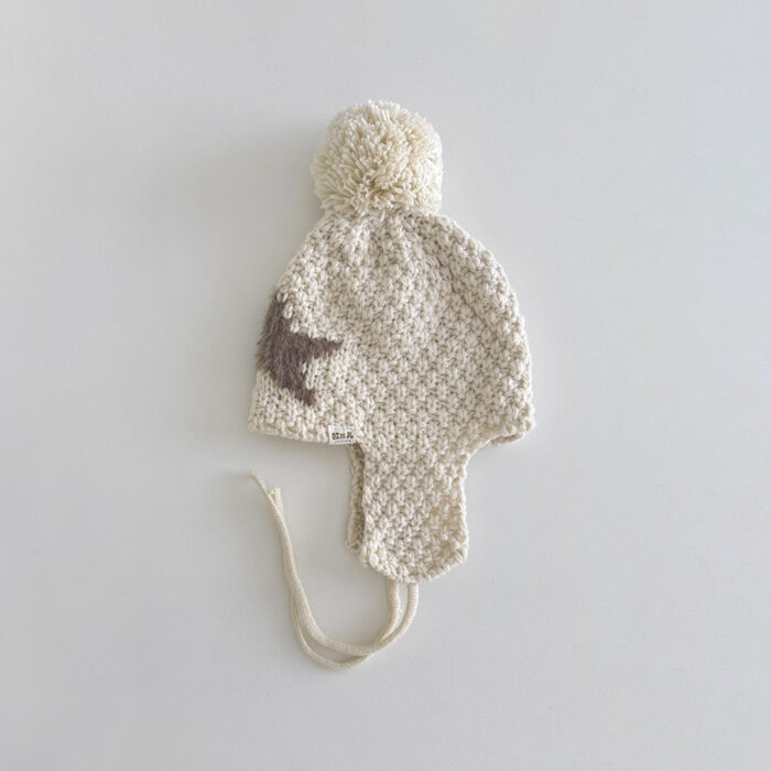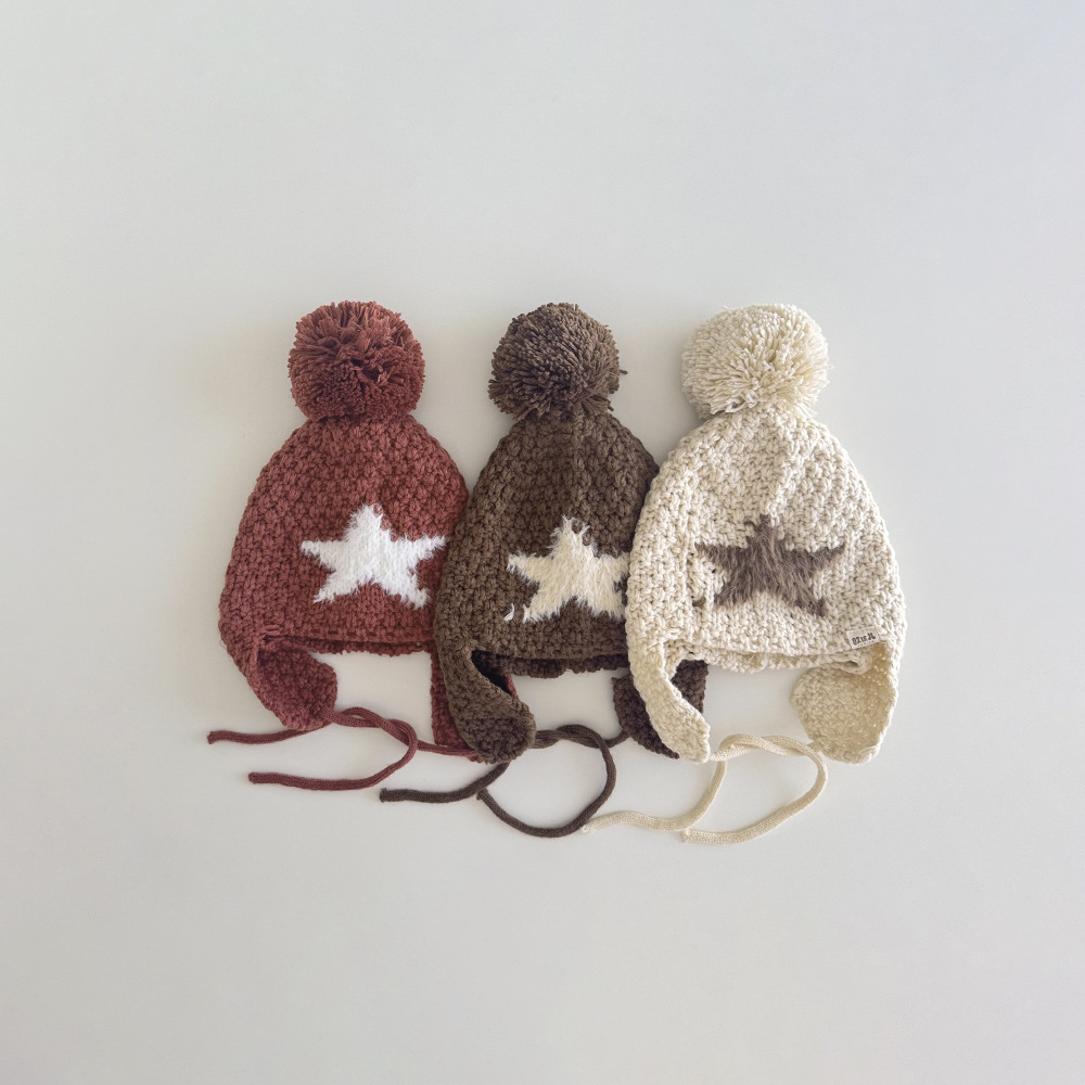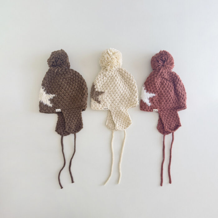 冬季童帽3~7y – 星星針織毛球帽 / 三色