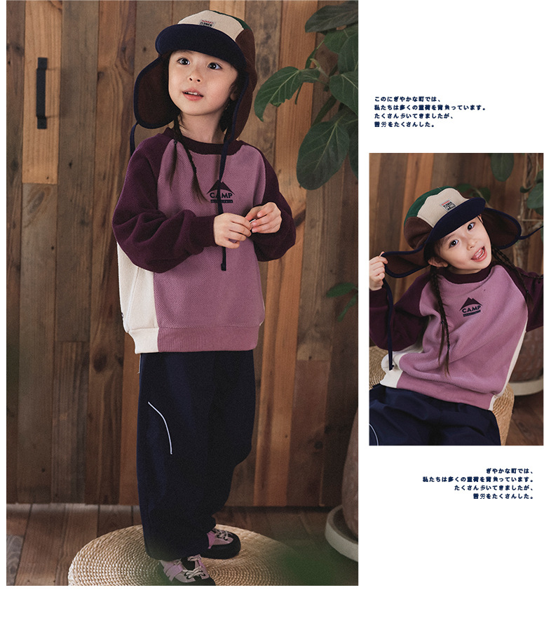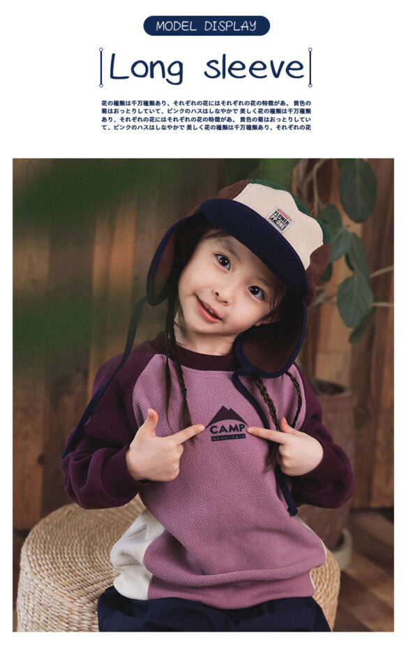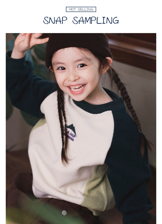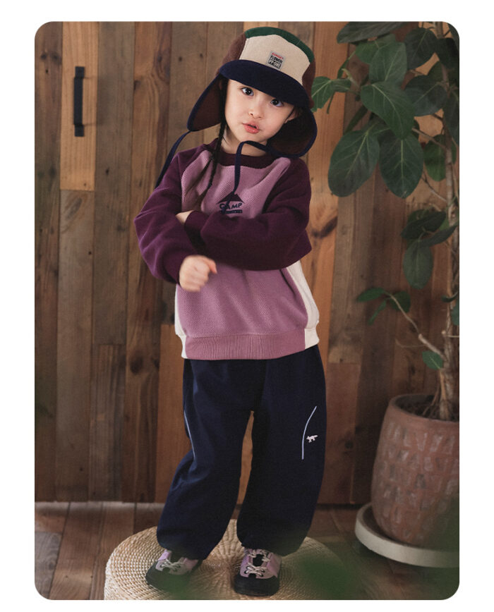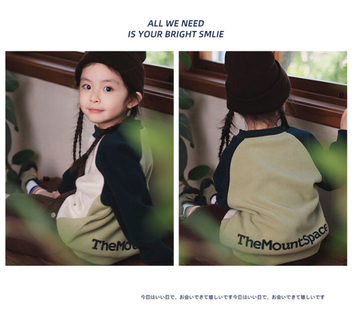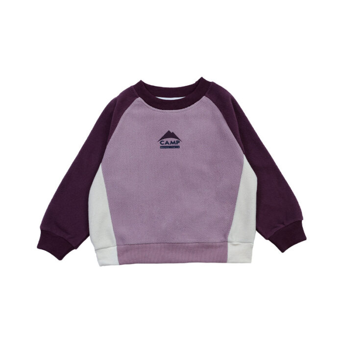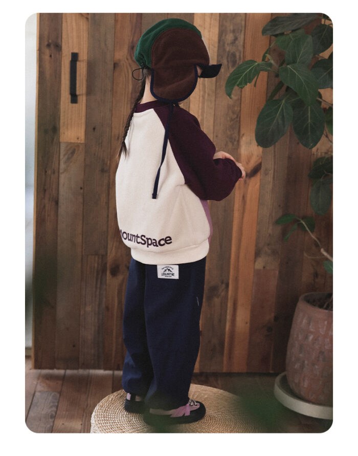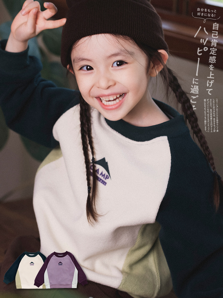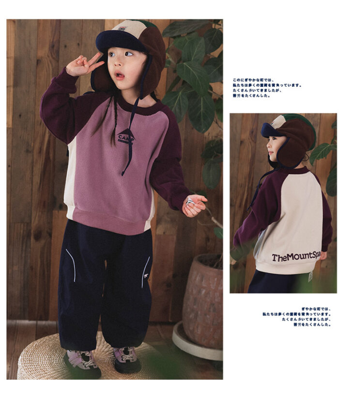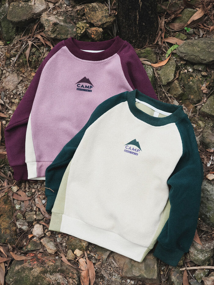 凹豆冬季100~150cm – 拚色圓領加絨上衣 / 二色
