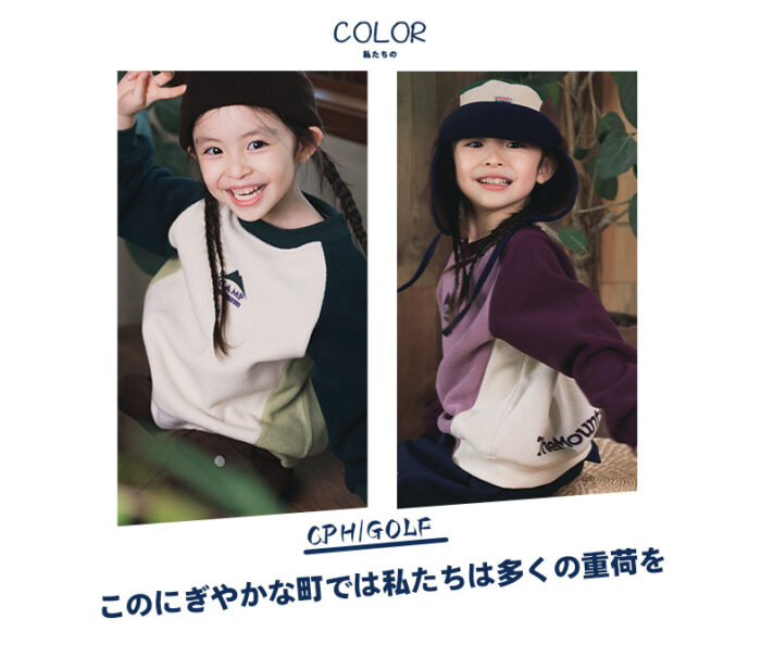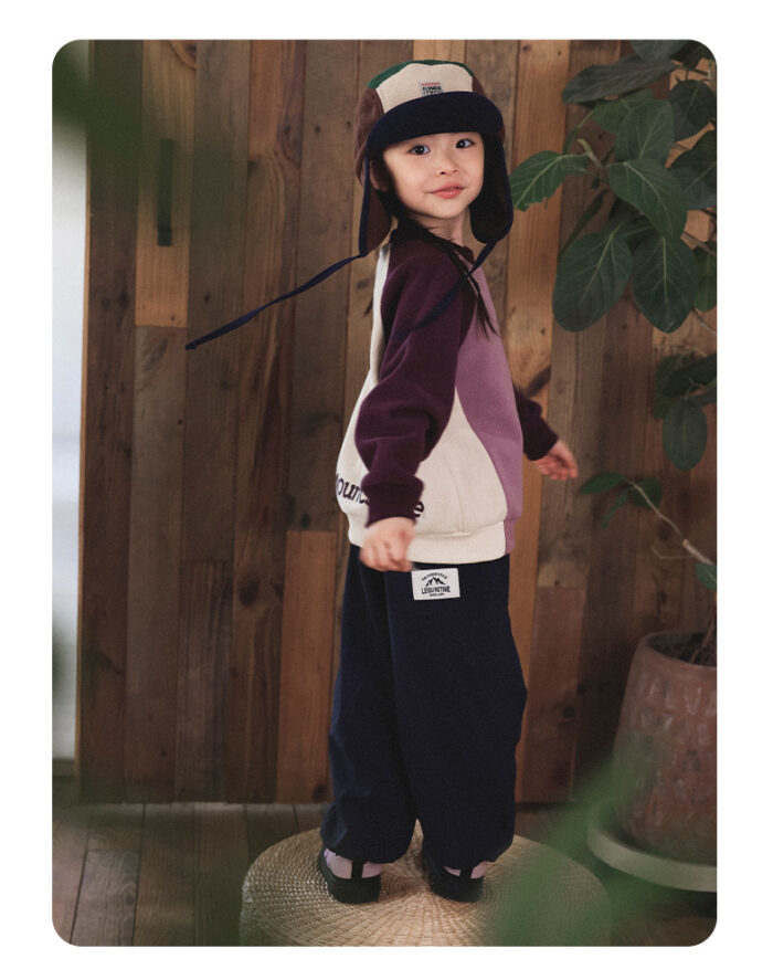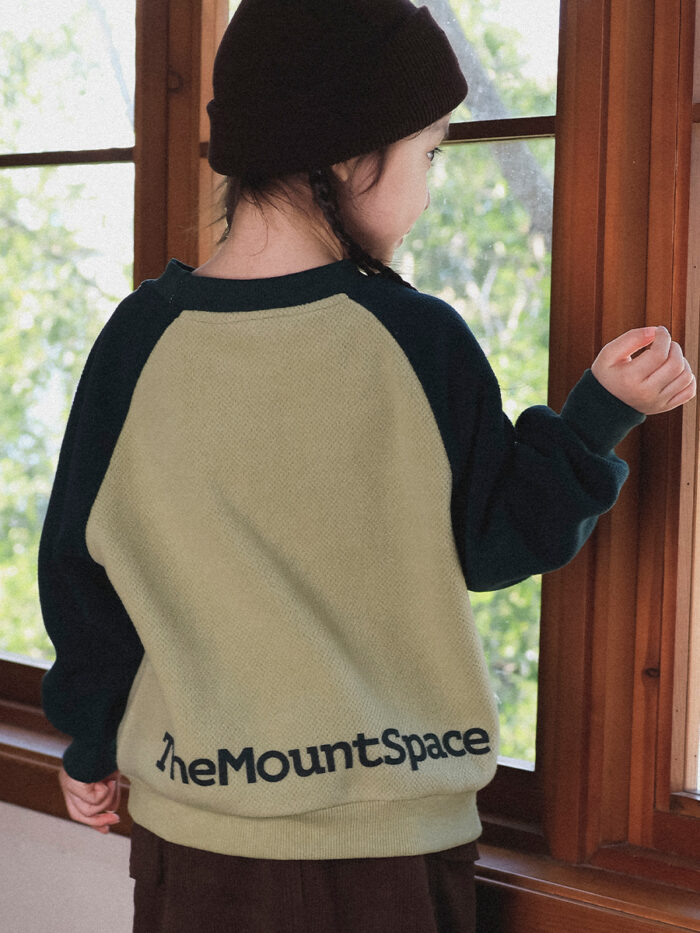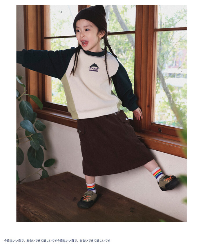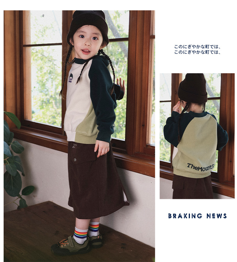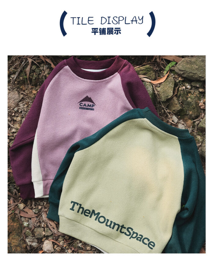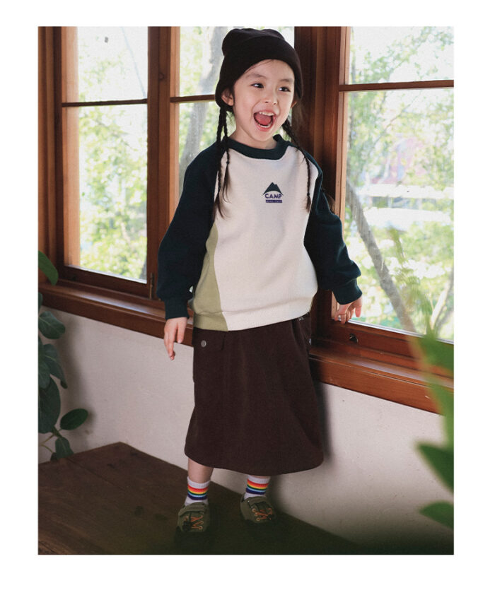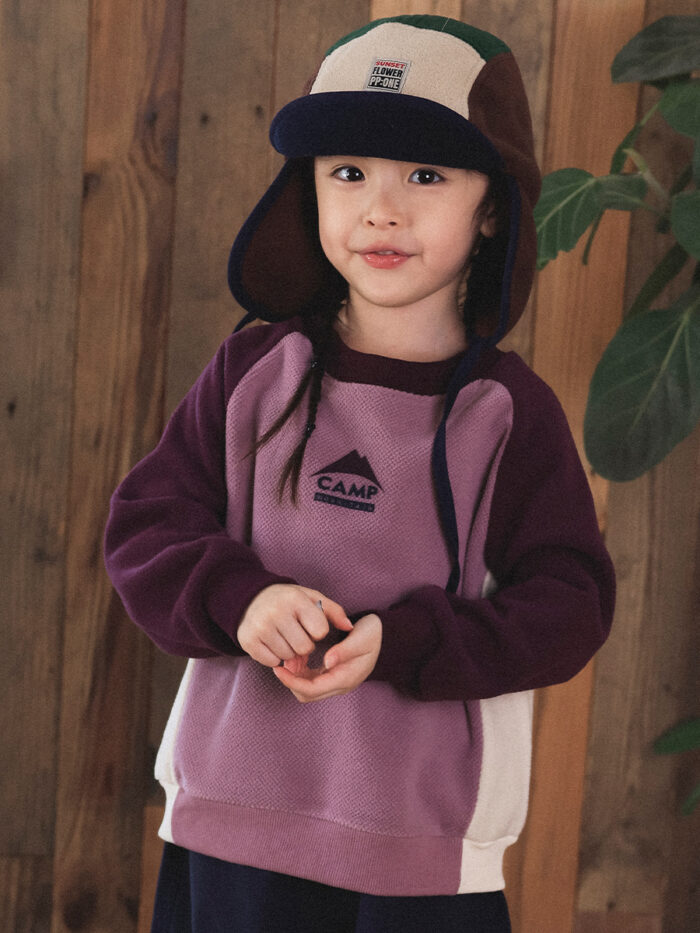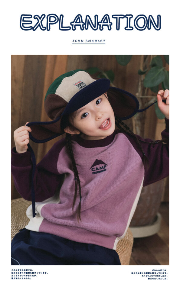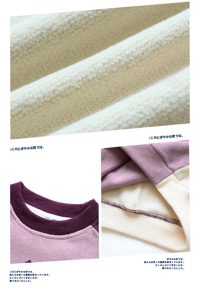 凹豆冬季100~150cm – 拚色圓領加絨上衣 / 二色