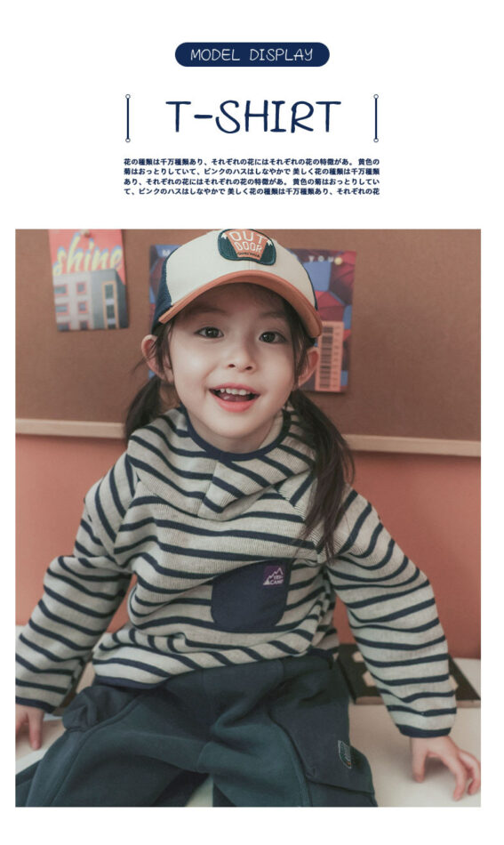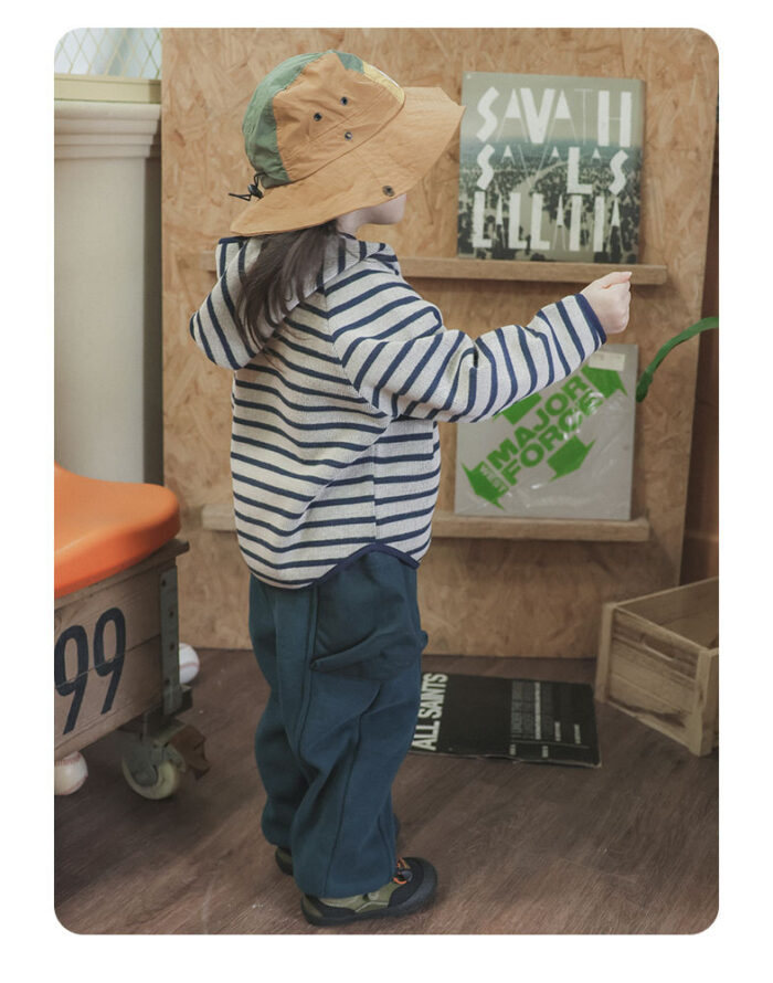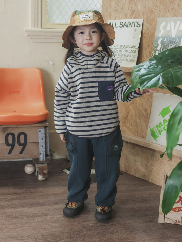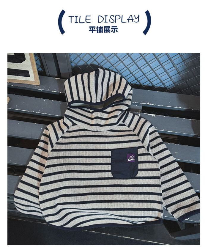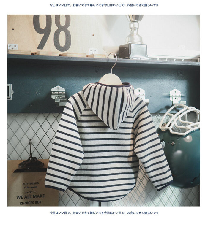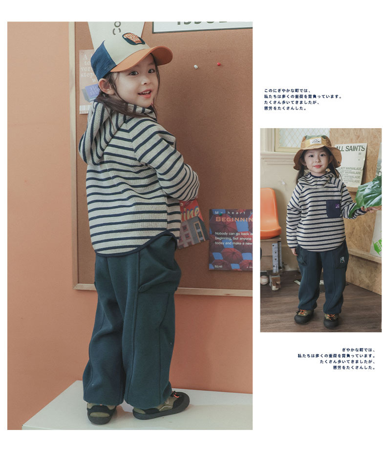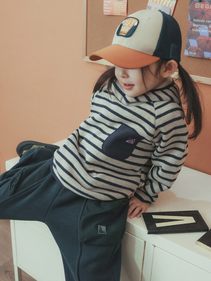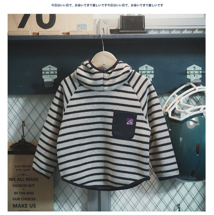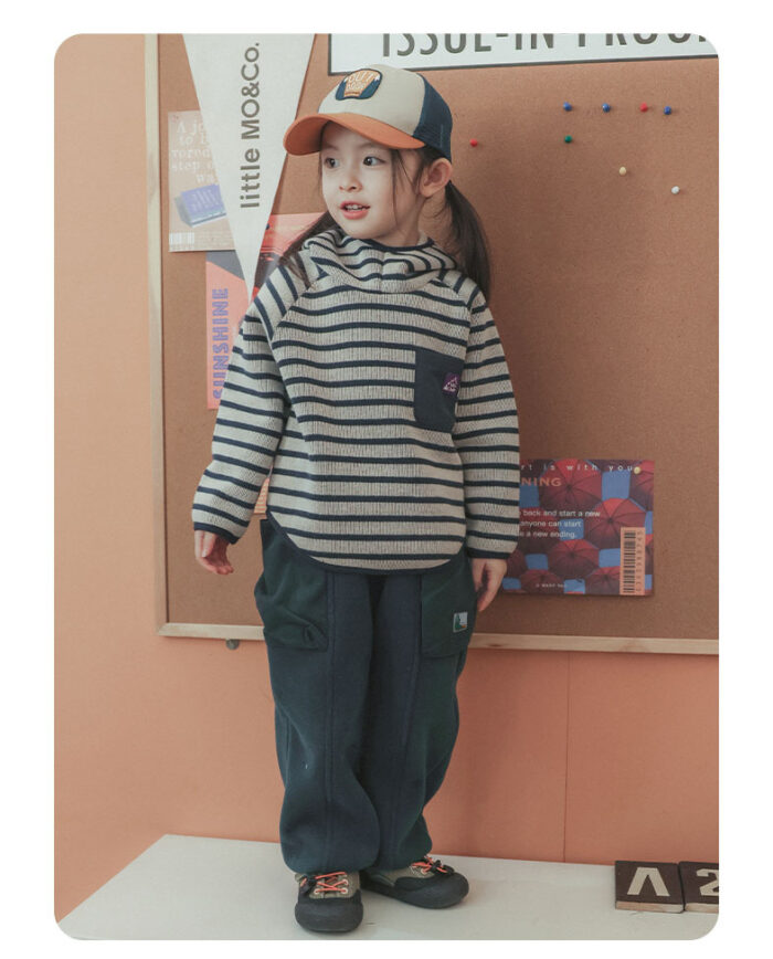 凹豆冬季100~150cm – 橫條高領連帽上衣 / 二款