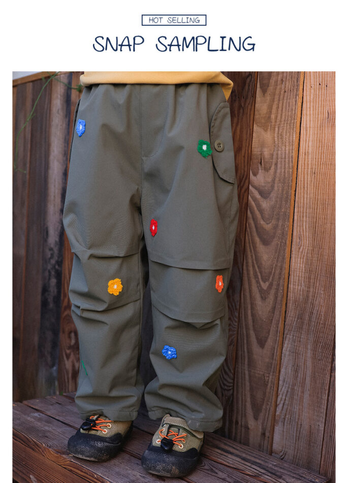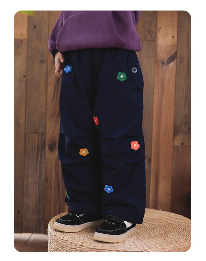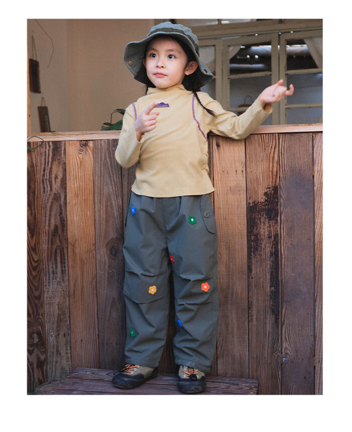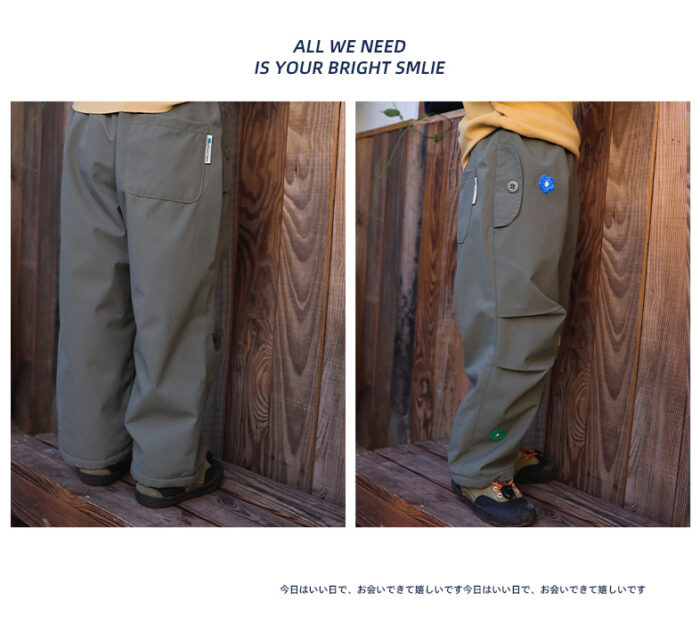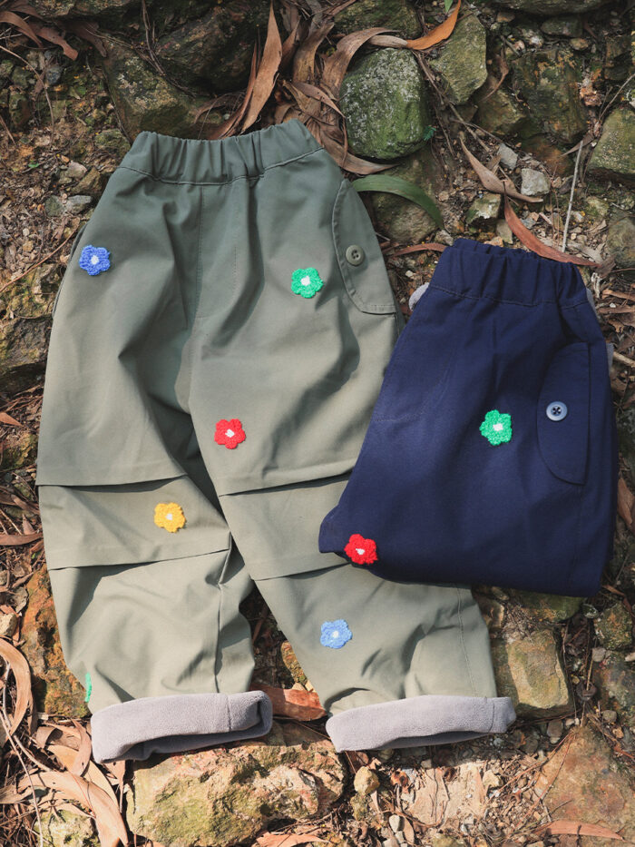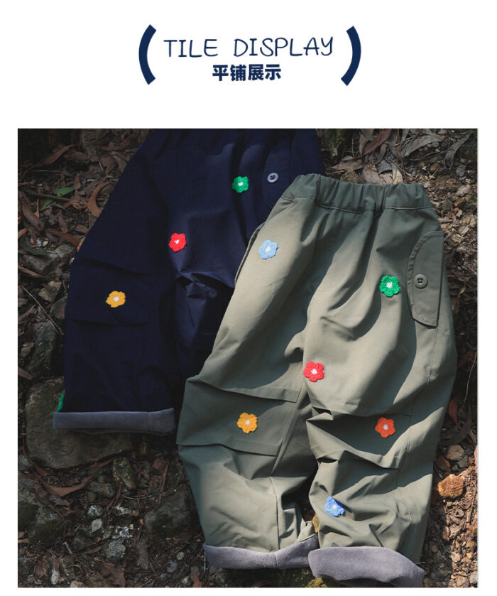 凹豆冬季100~150cm – 花花加絨工裝褲 / 二色
