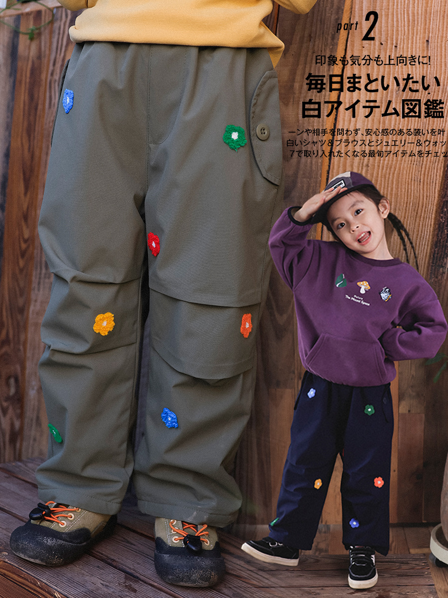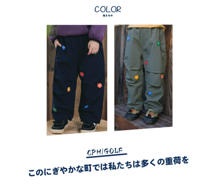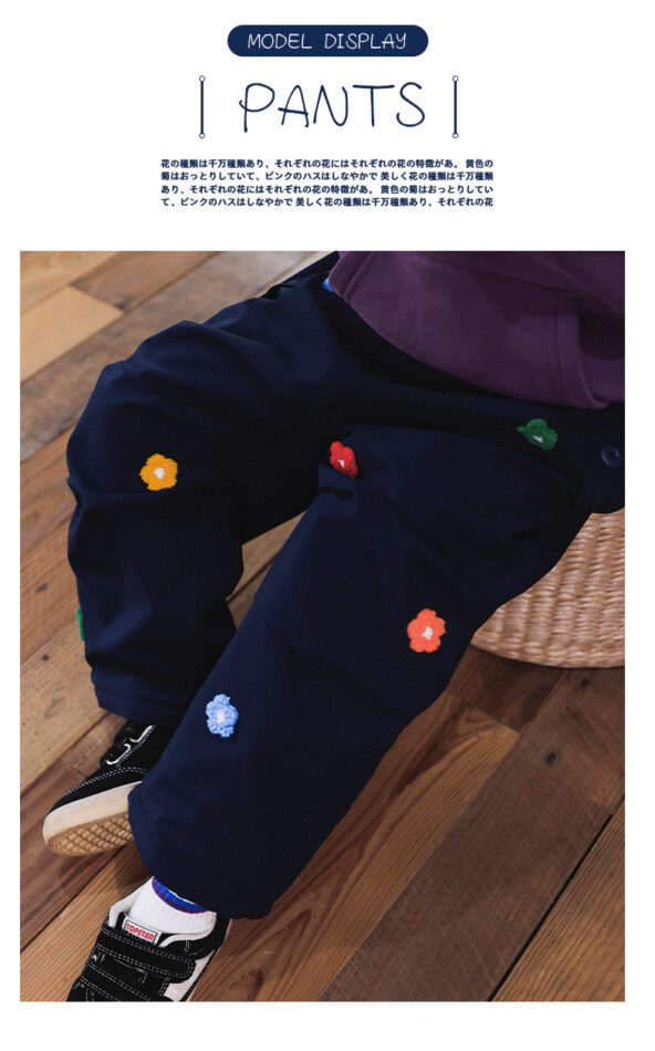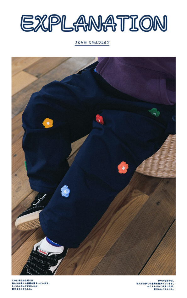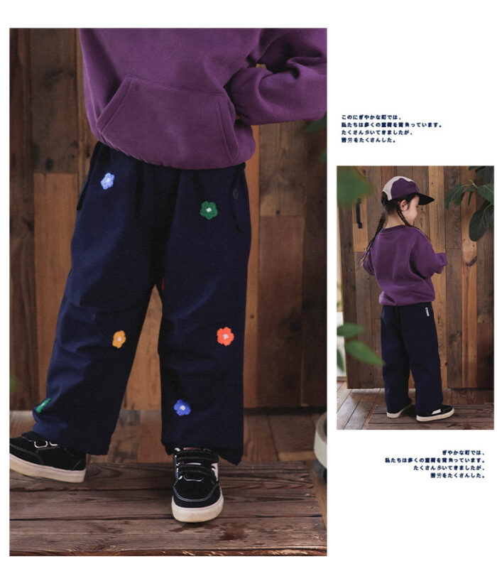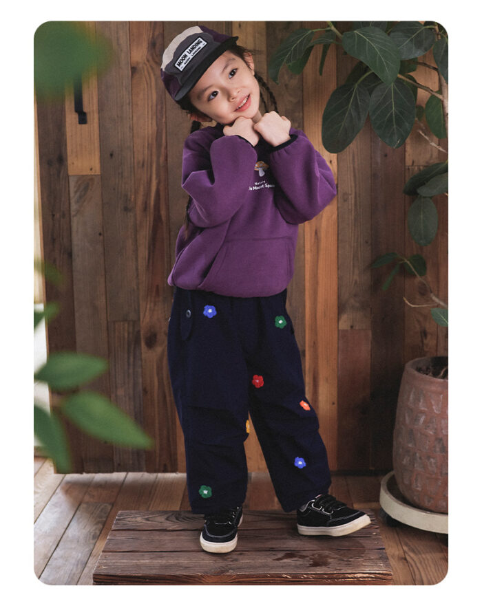 凹豆冬季100~150cm – 花花加絨工裝褲 / 二色