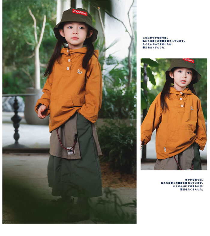 凹豆秋季100~150cm – 超好看連衝鋒博款口袋帽上衣 / 三色