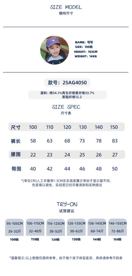 凹豆秋季100~150cm – 超百搭水洗休閒褲