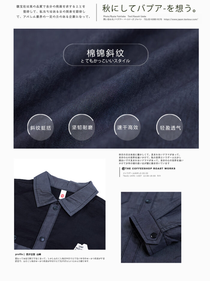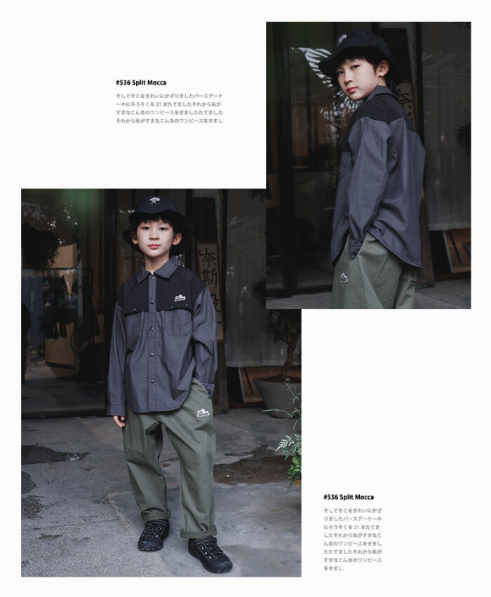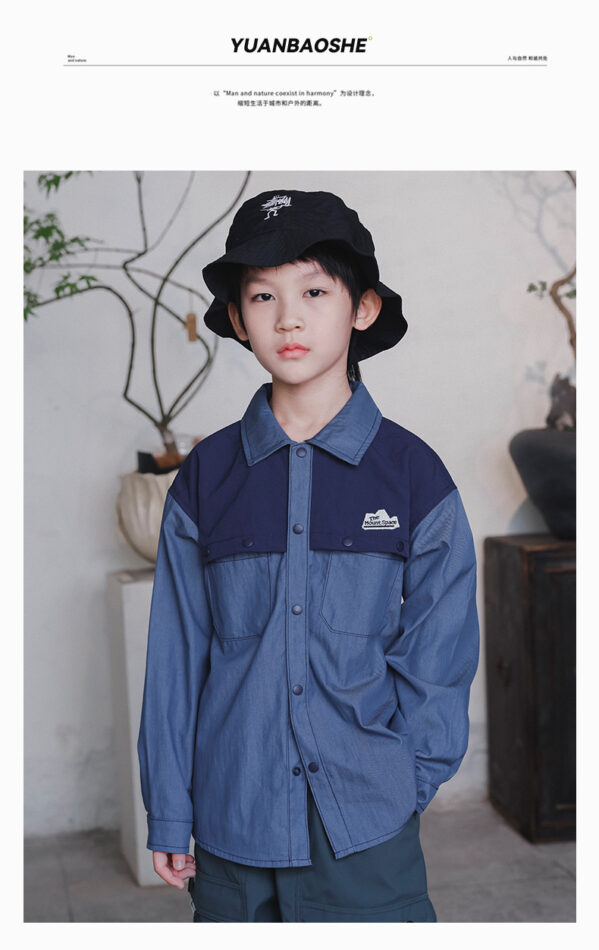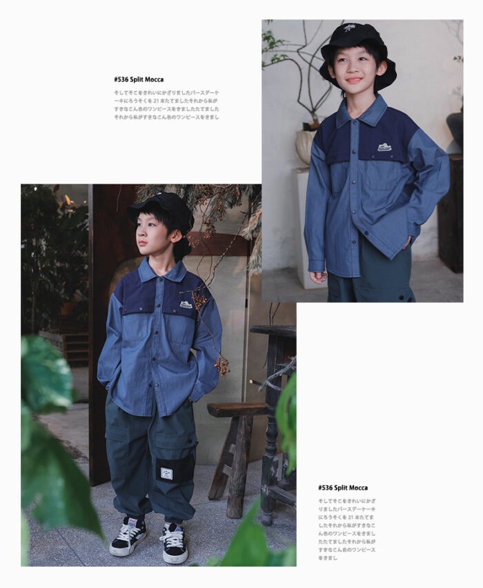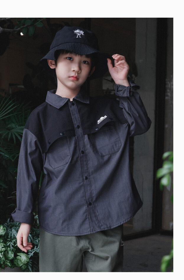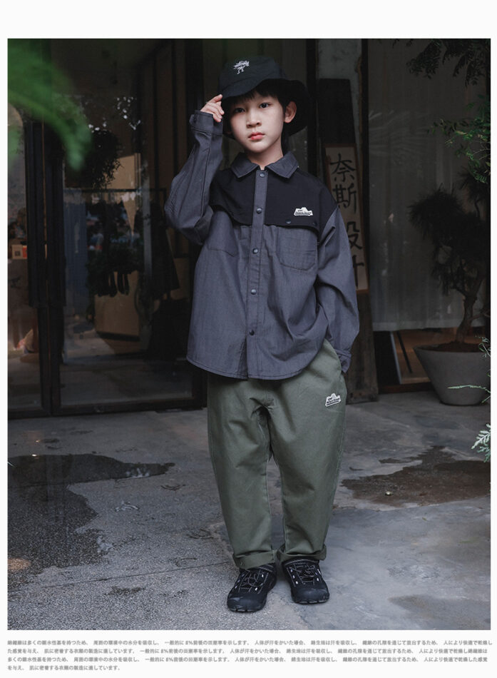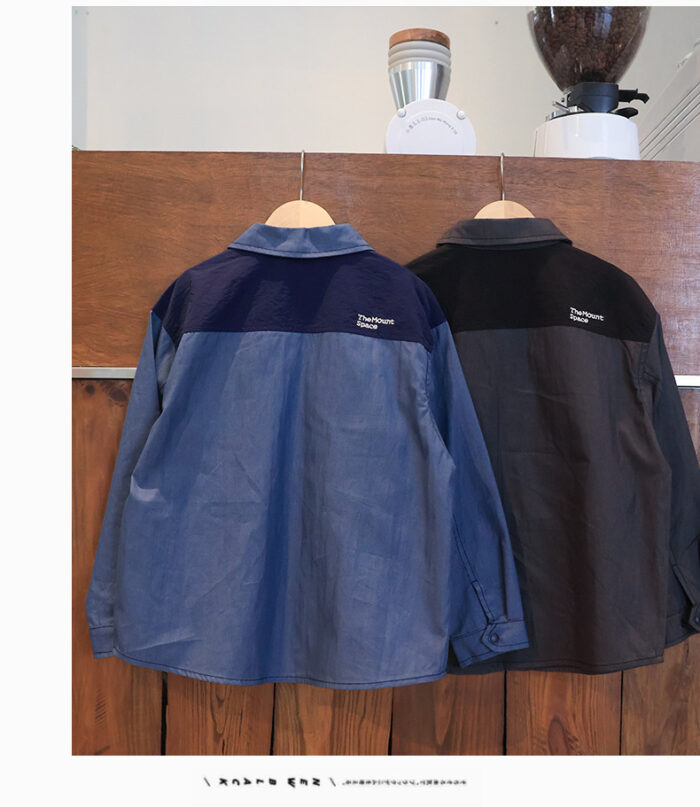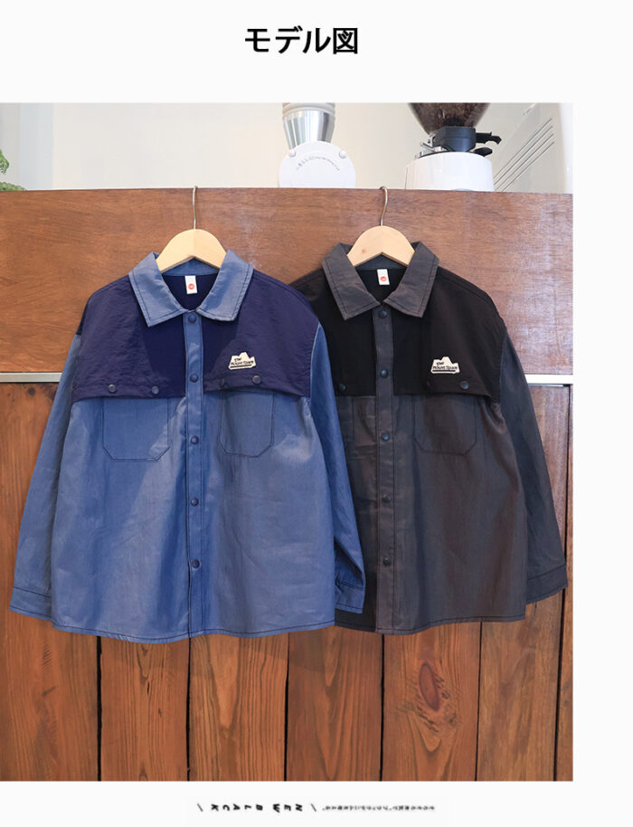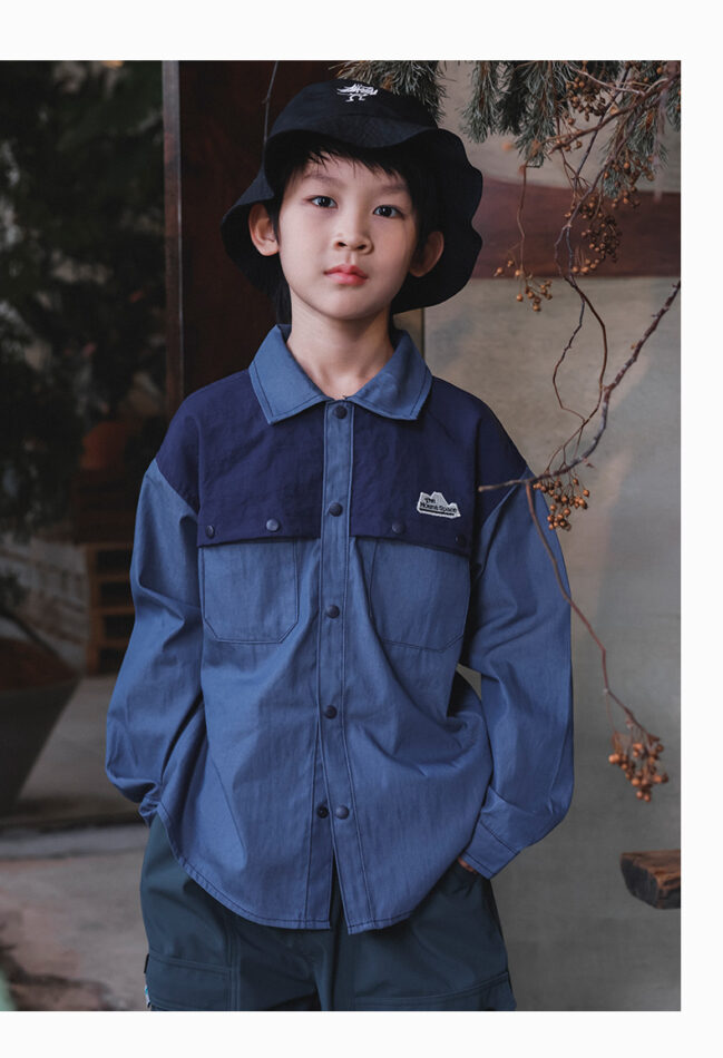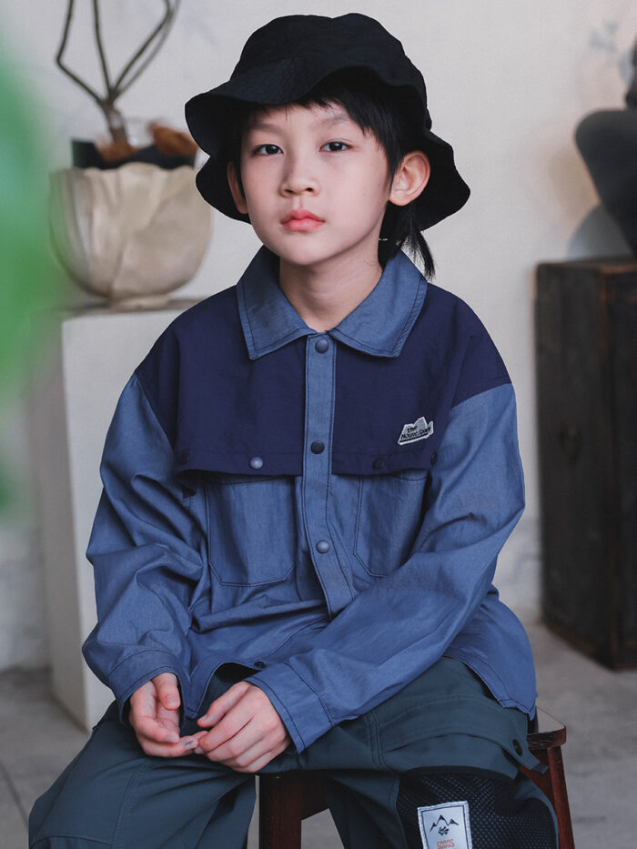 凹豆秋季110~170cm – 率性拼接襯衫 / 二色