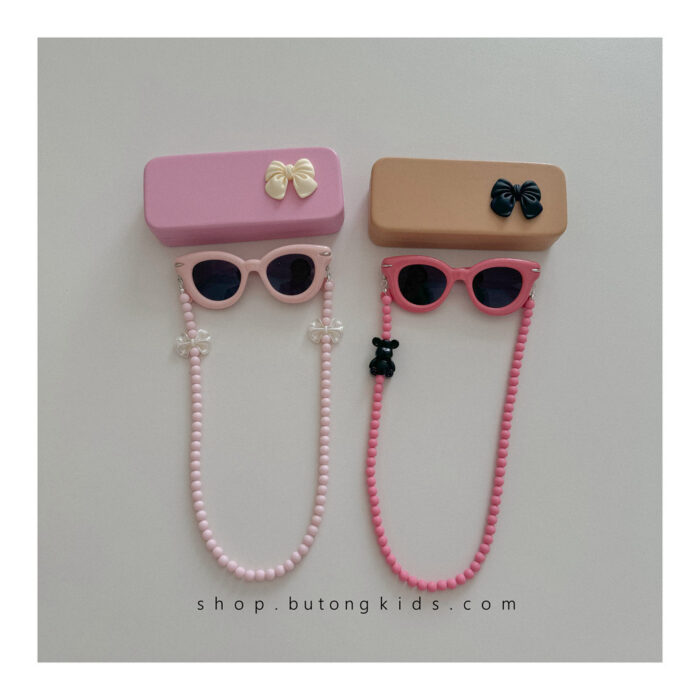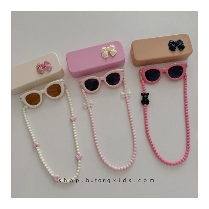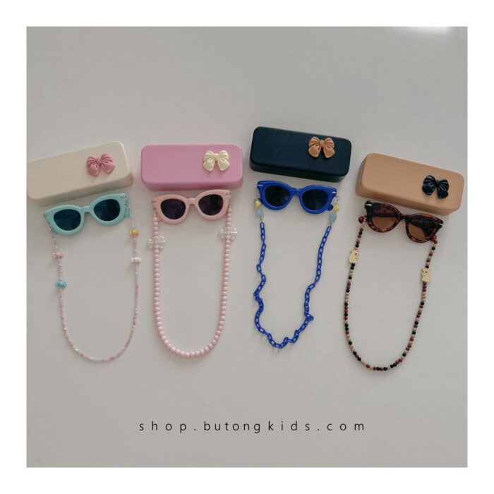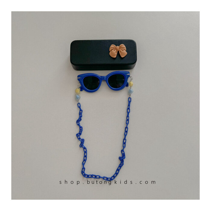 夏季配件 – 復古粗框墨鏡+鍊+鏡盒 / 8色