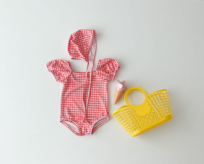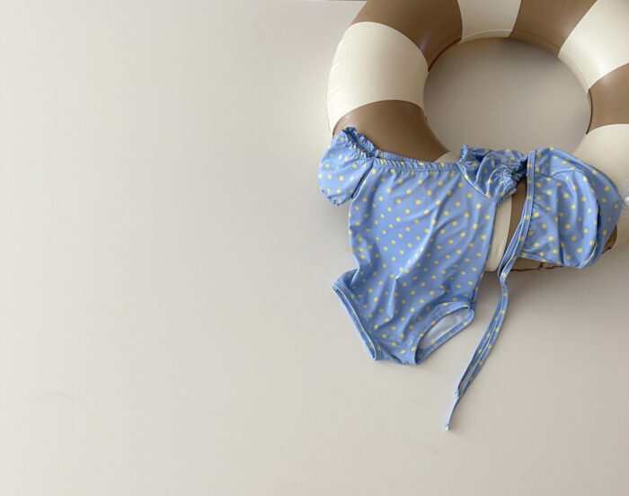 夏日泳裝66~100cm – 公主泡泡袖連身泳裝含帽子 / 三色