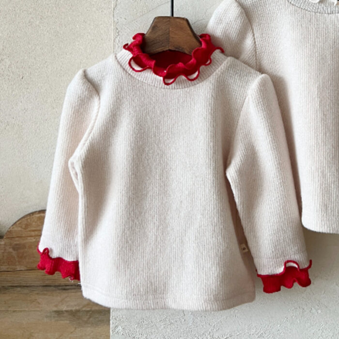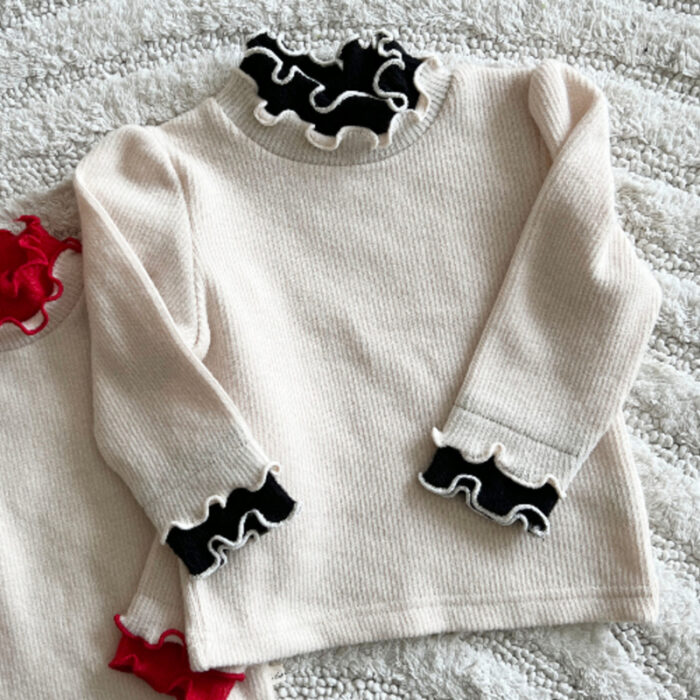 正韓冬季1~6y – 捲邊拚色上衣 / 二色