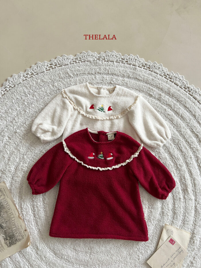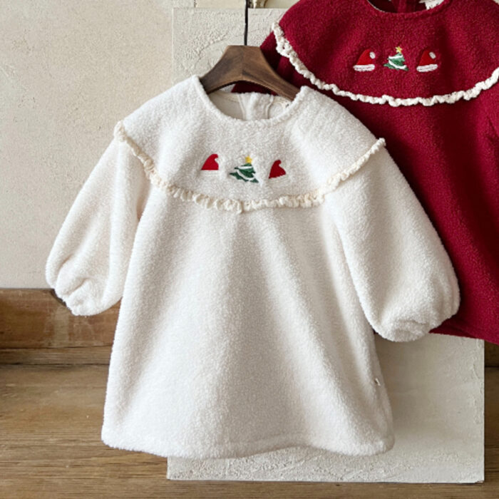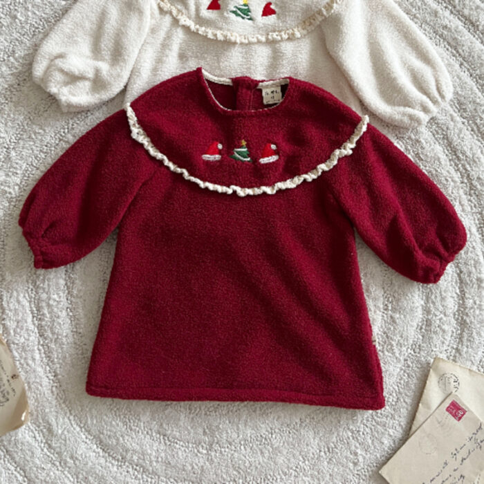 正韓冬季1~6y – 聖誕繡花蕾絲洋裝 / 二色