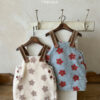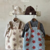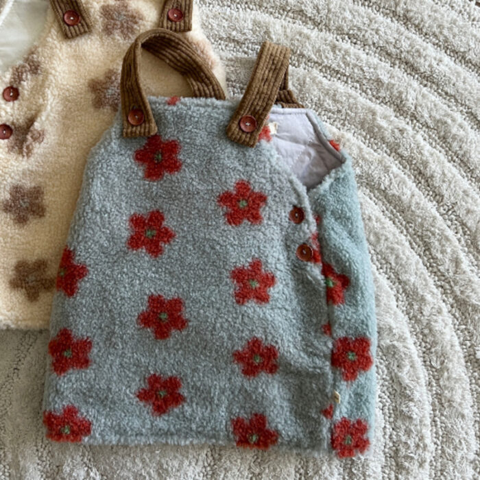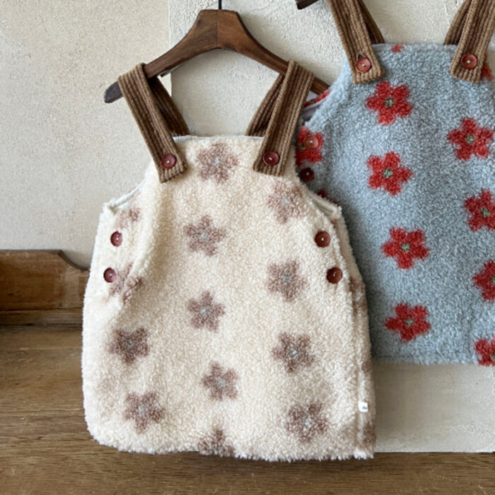 正韓冬季1~6y – 花花毛毛燈心絨吊帶洋裝 / 二色