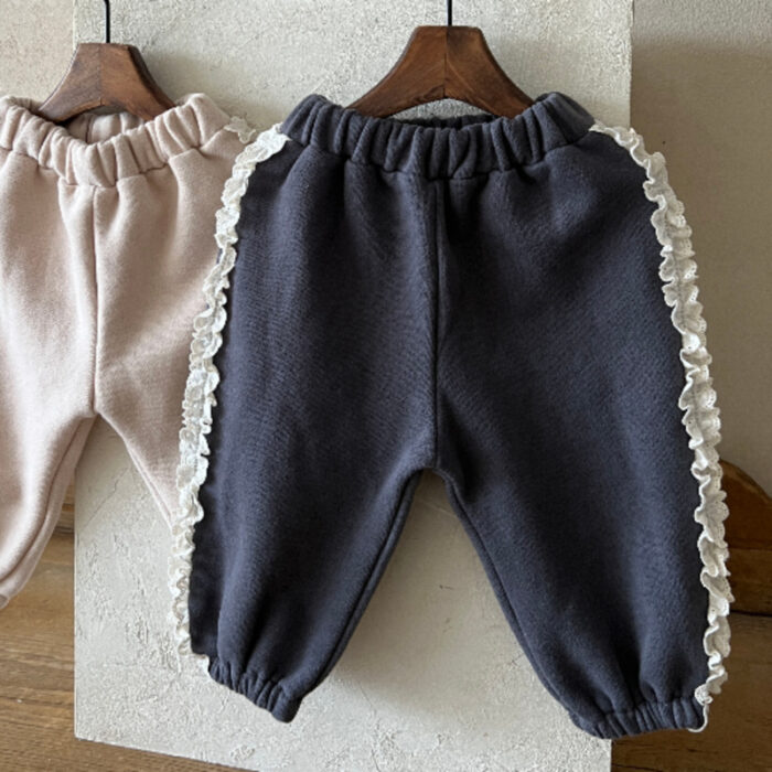 正韓冬季1~6y – 蕾絲邊休閒褲 / 二色