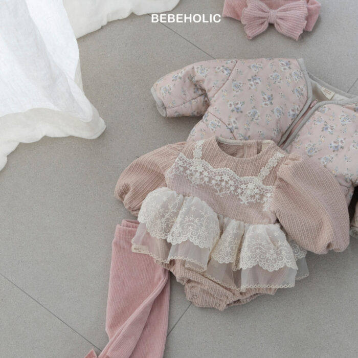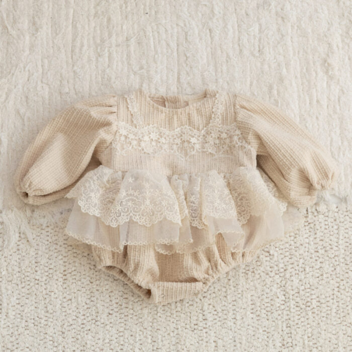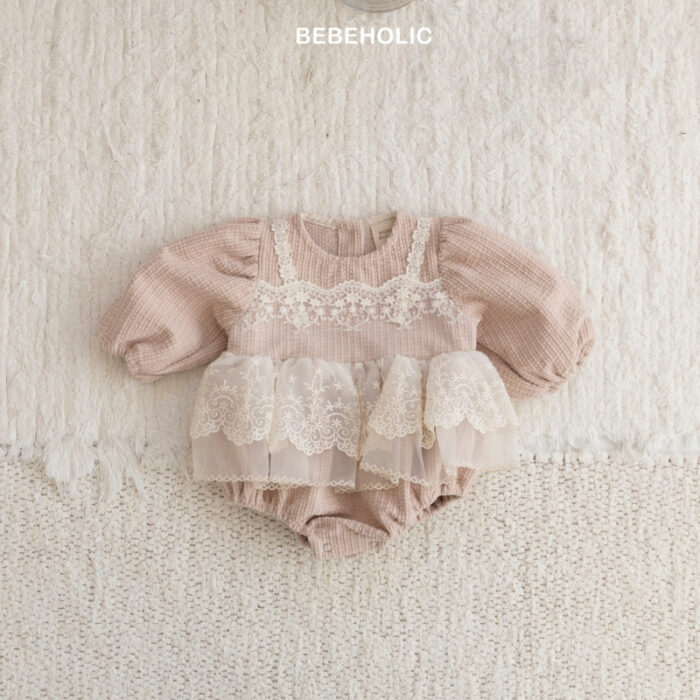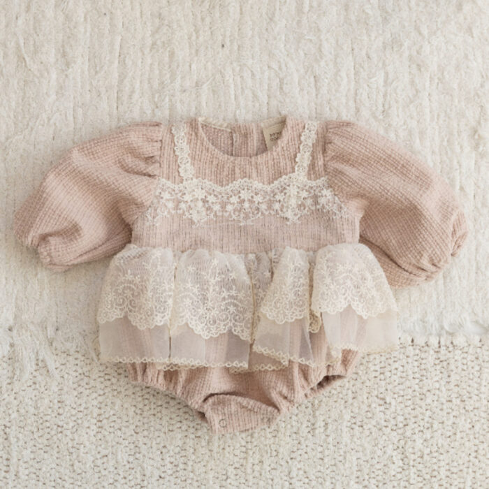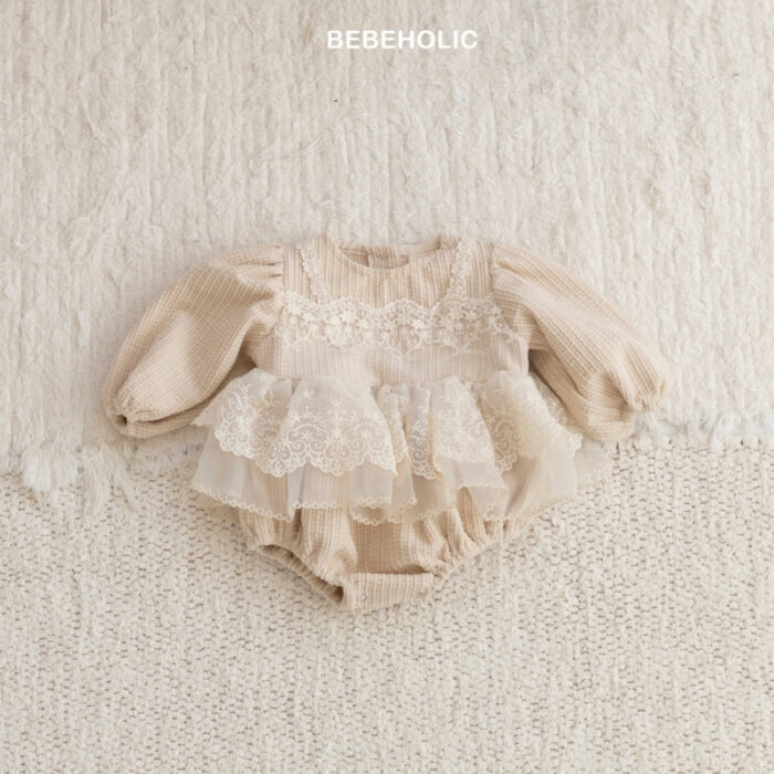 正韓冬季3~18m – 假兩件蕾絲包屁衣 / 二色