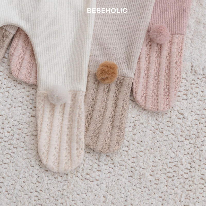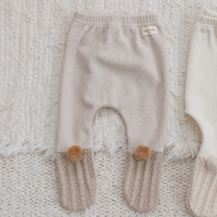 正韓冬季3~18m – 拼接毛毛球褲襪 / 三色