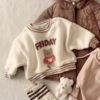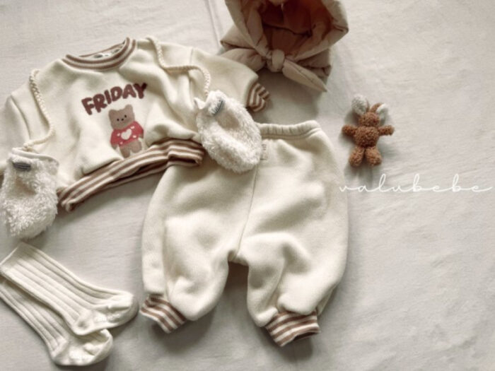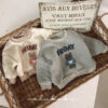 正韓冬季Babe – 橫條拼接熊熊上衣 / 二色