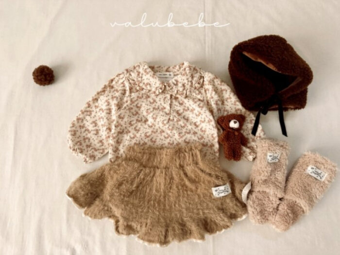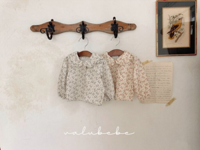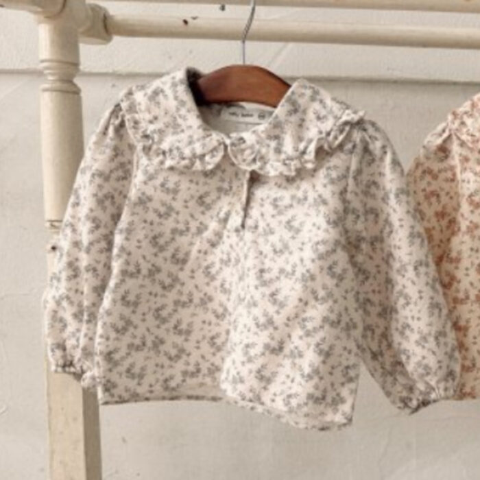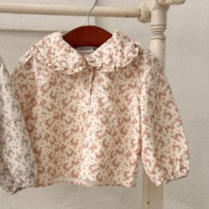 正韓冬季Babe – 碎花荷葉領上衣 / 二色