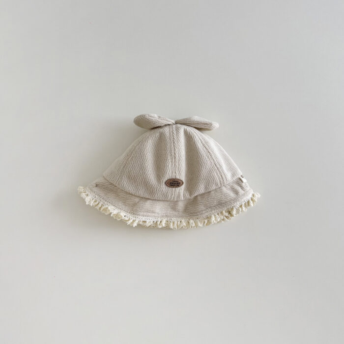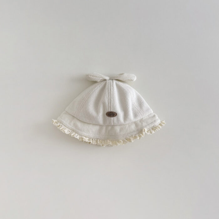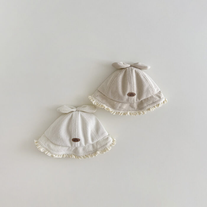 秋季童帽6m~2y – 蕾絲皮標蝴蝶結盆帽 / 二色