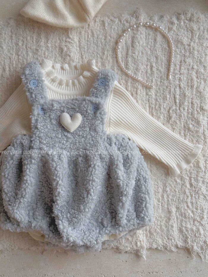 韓版冬季66~100cm – 毛茸茸愛心吊帶包屁褲 / 打底衣