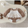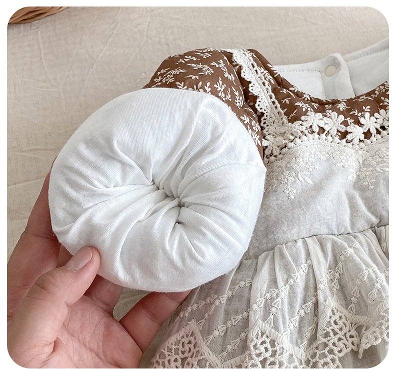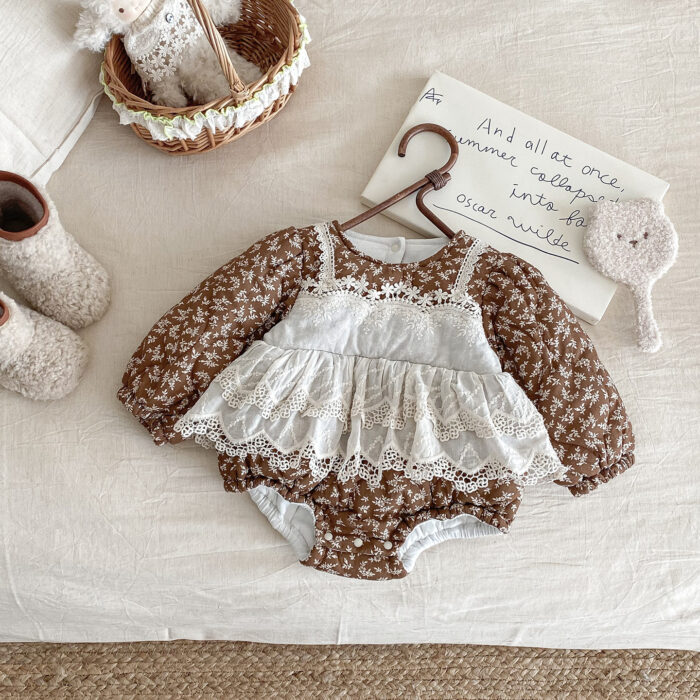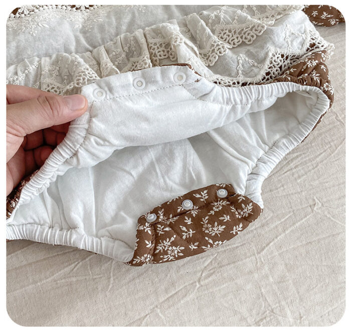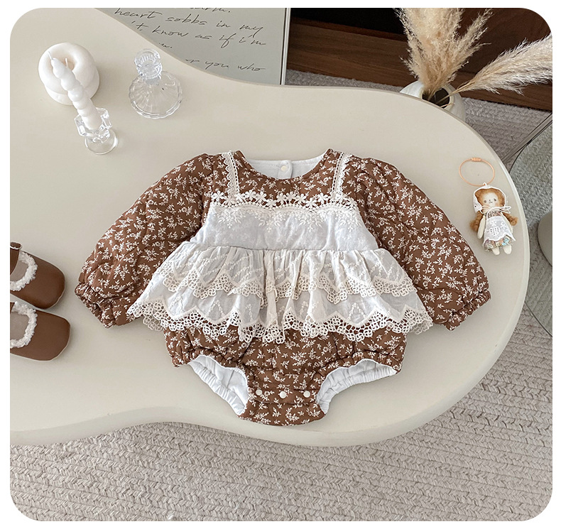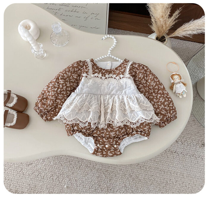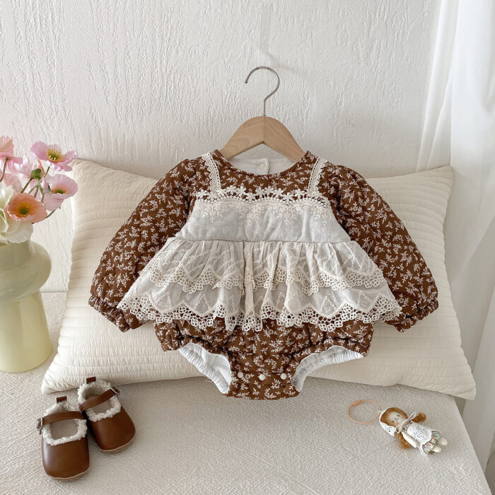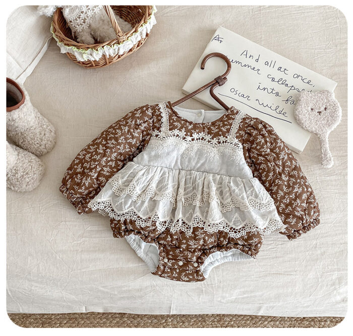 韓版冬季66~90cm – 碎花加絨絎縫蕾絲假兩件包屁衣