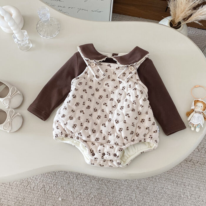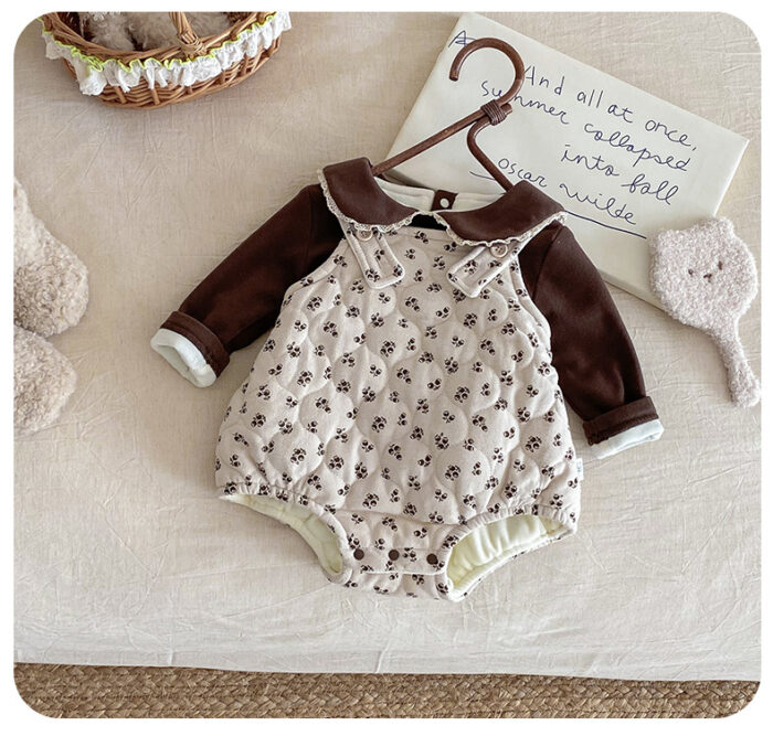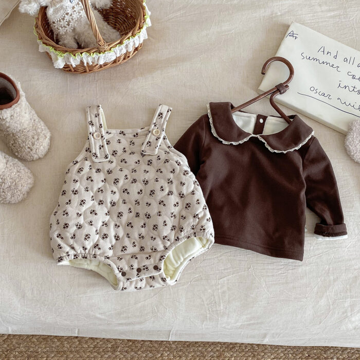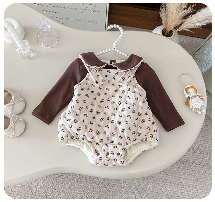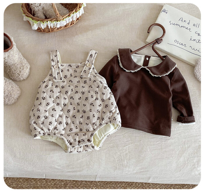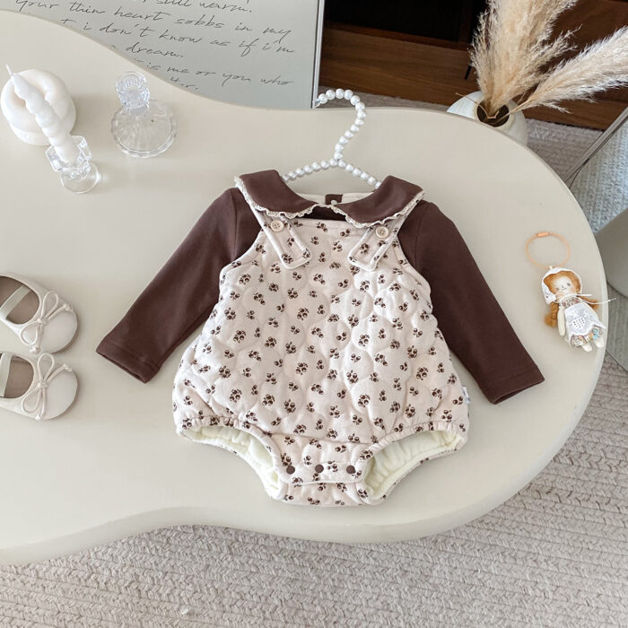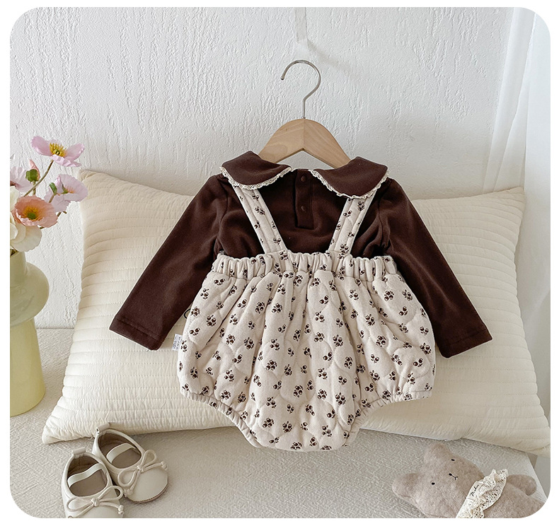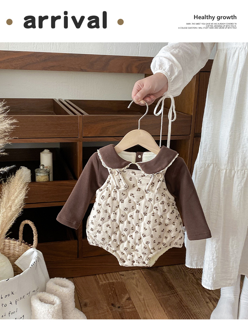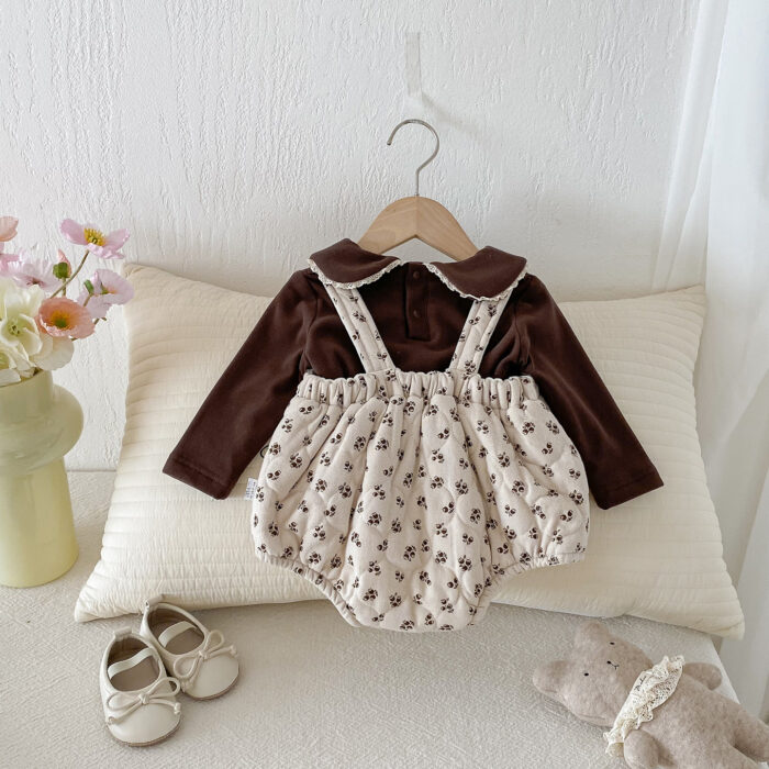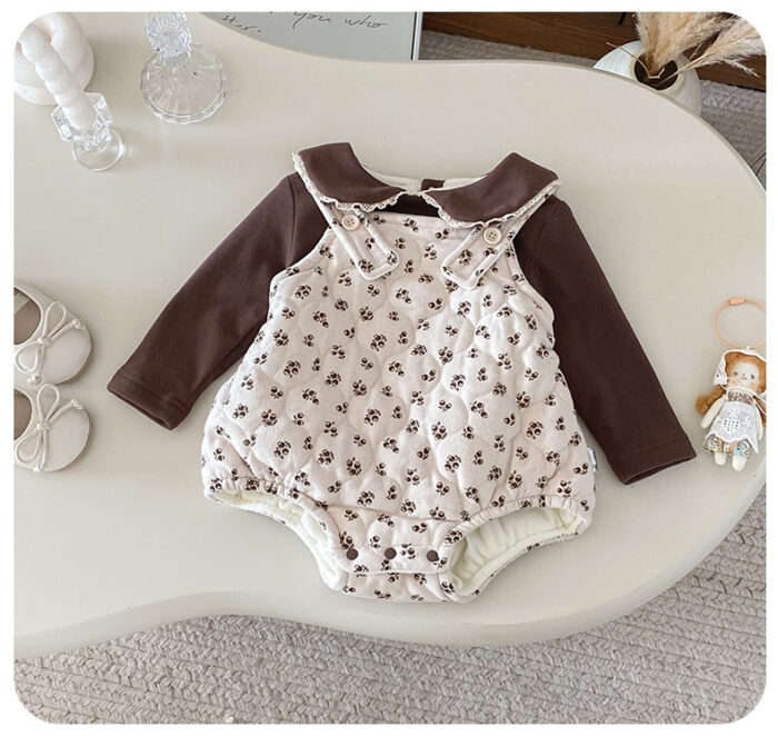 韓版冬季66~90cm – 碎花絎縫吊帶包屁衣套裝