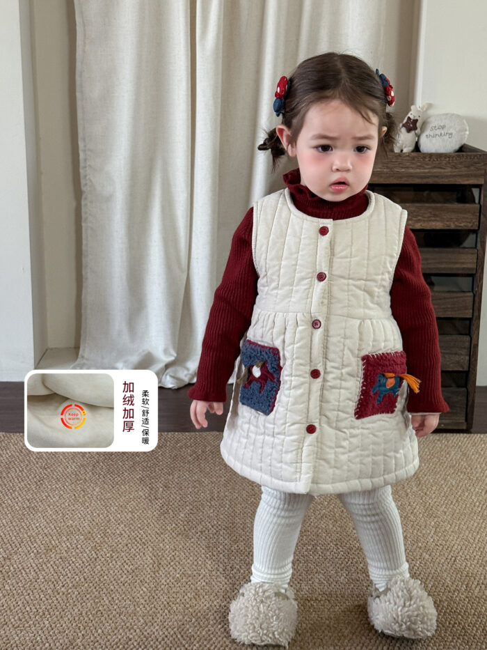 韓版冬季73~100cm – 撞色木馬背心裙 / 打底衣