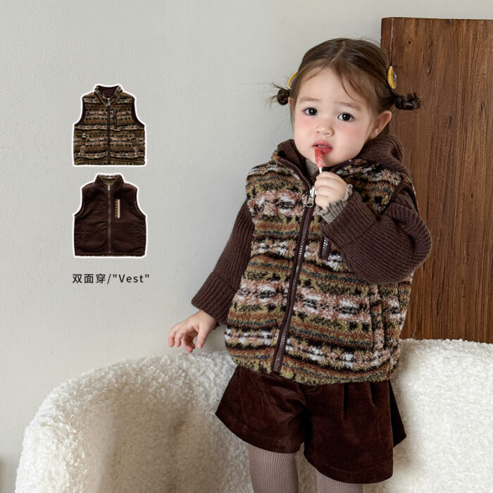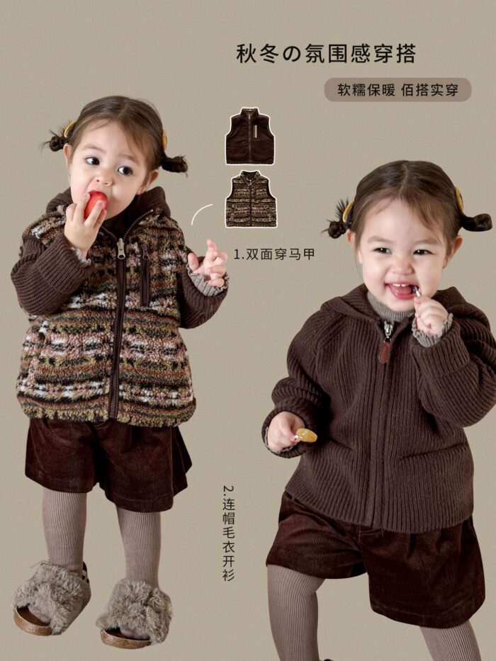 韓版冬季73~100cm – 雙面羊羔背心 / 連帽針織外套 / 燈芯絨褲