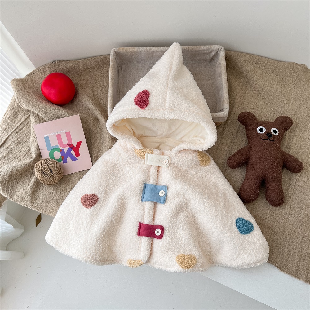 韓版冬季73~90cm-外出加絨防風連帽斗篷