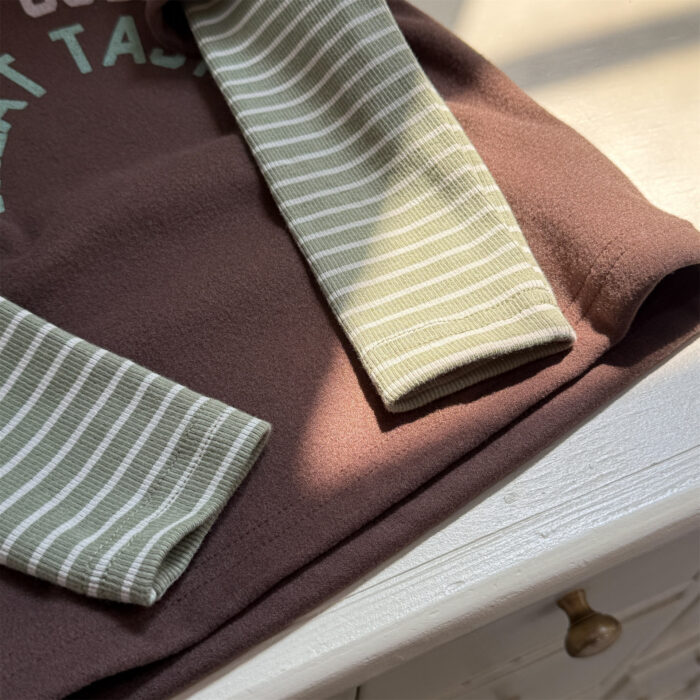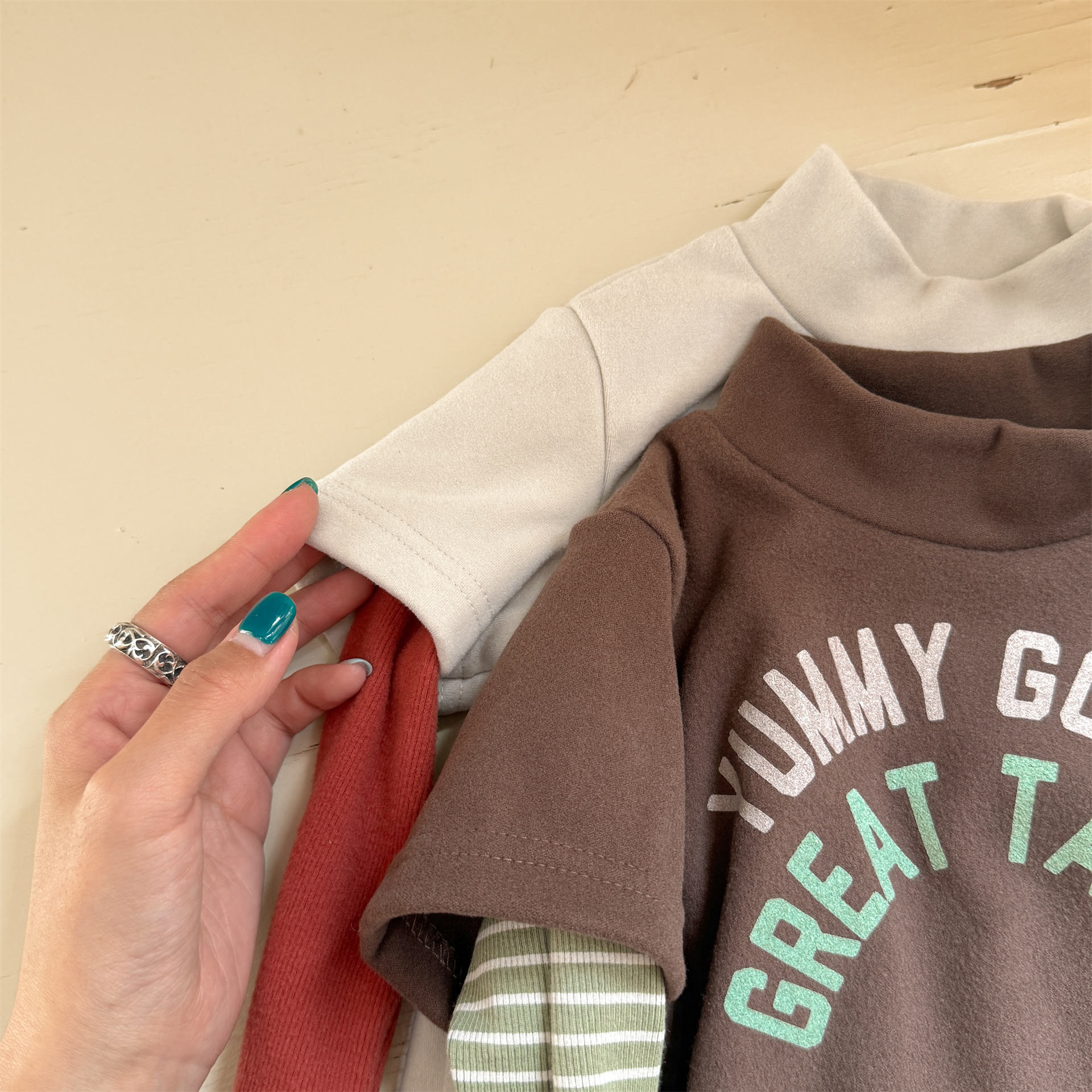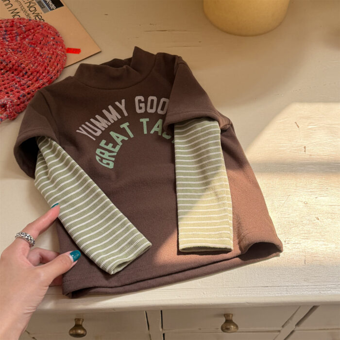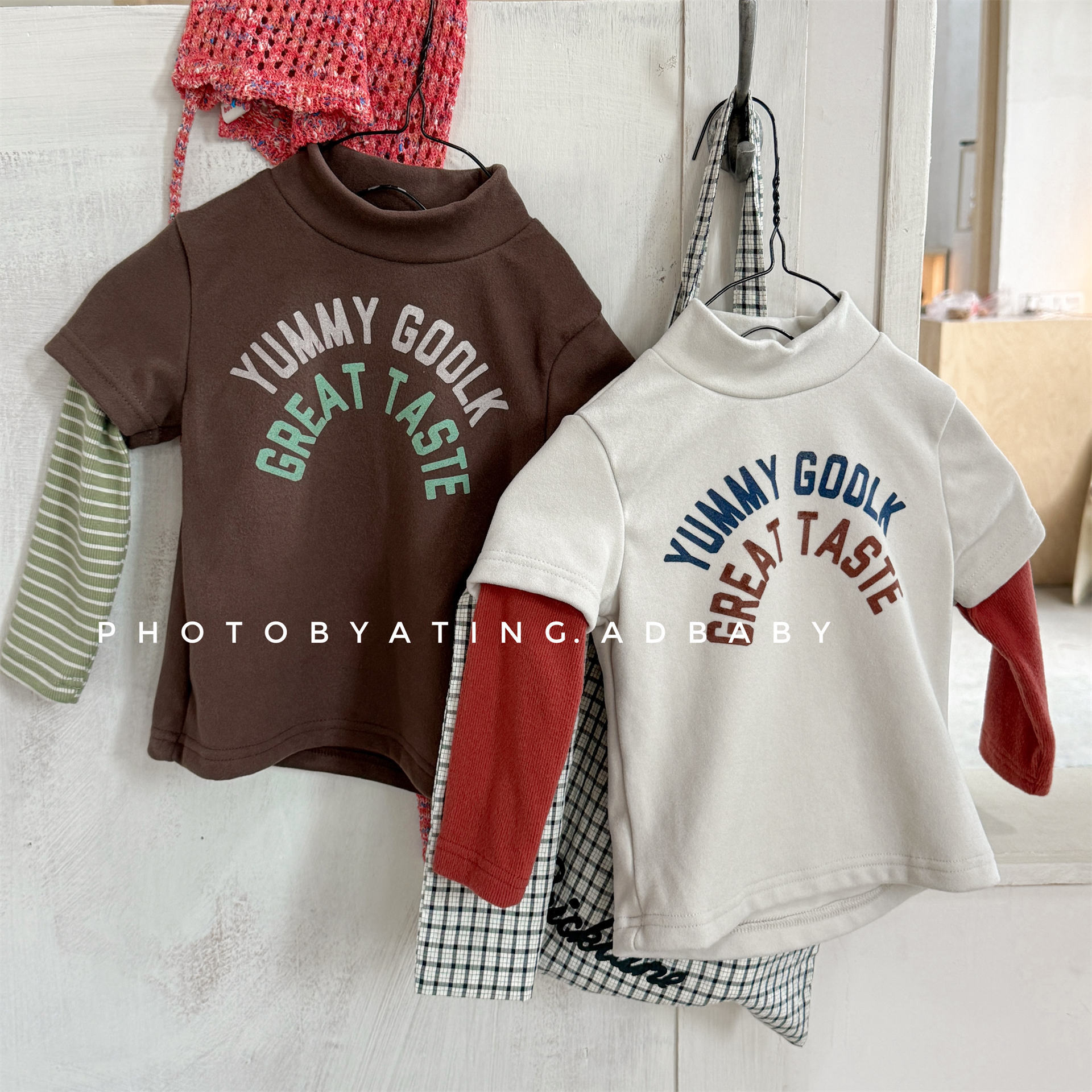 韓版冬季80~130cm – 假兩件式高領磨毛上衣 / 二色