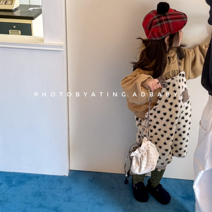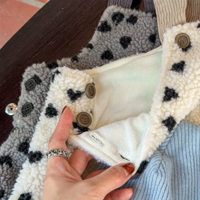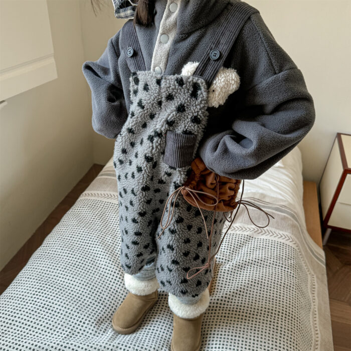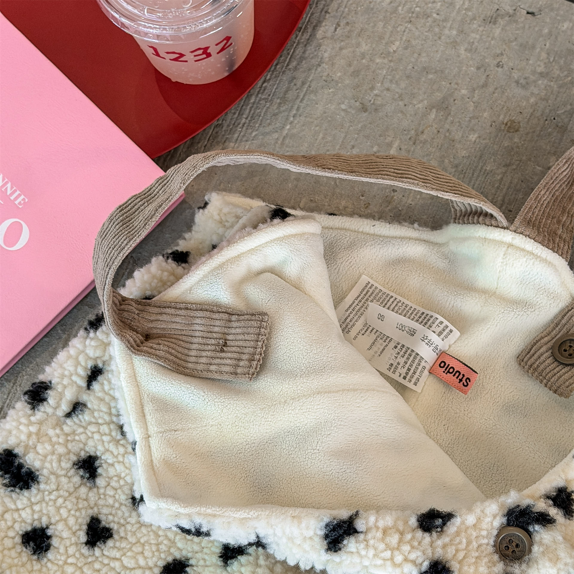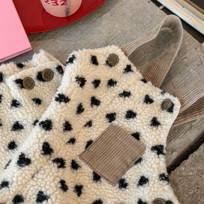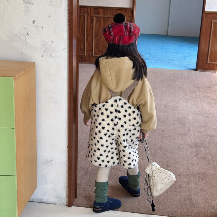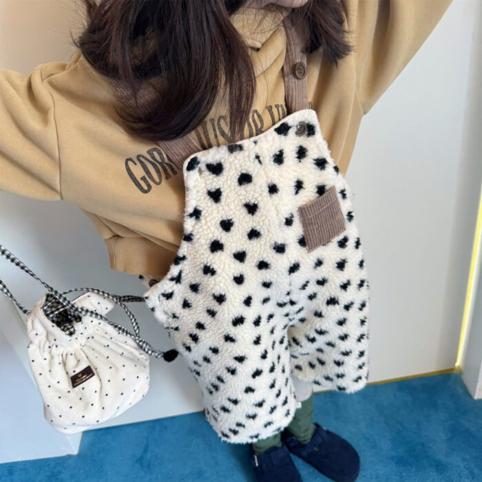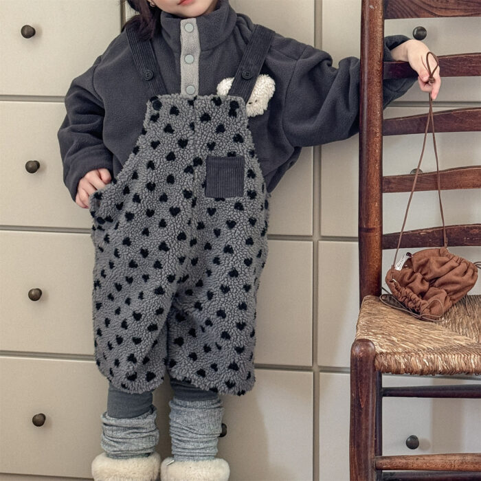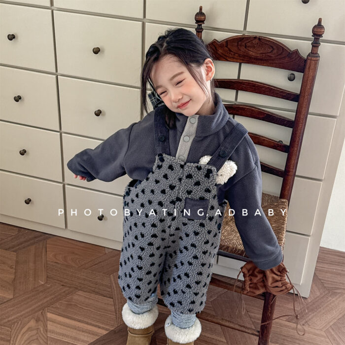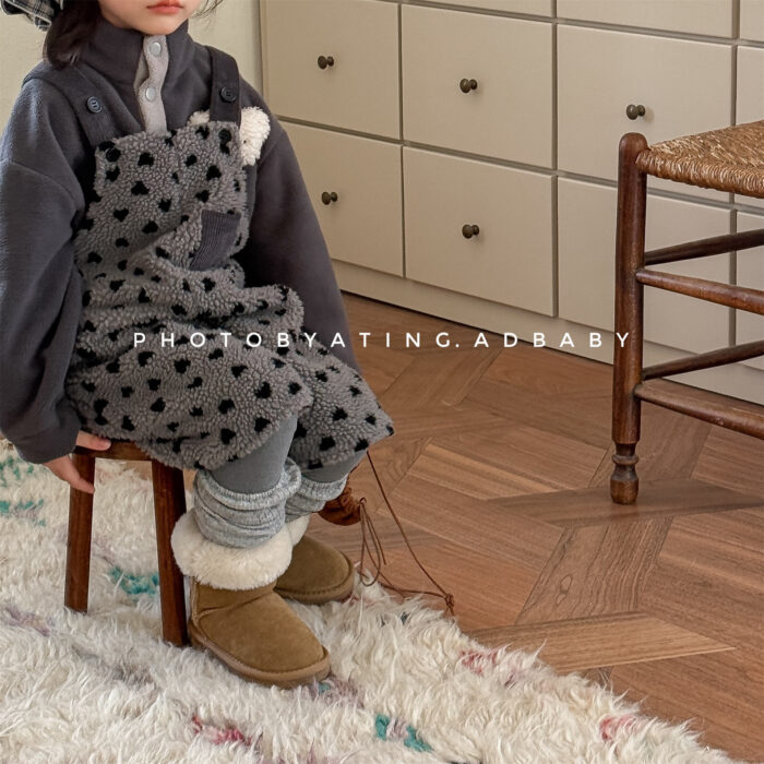 韓版冬季80~130cm – 愛心羊羔燈心絨吊帶褲 / 二色