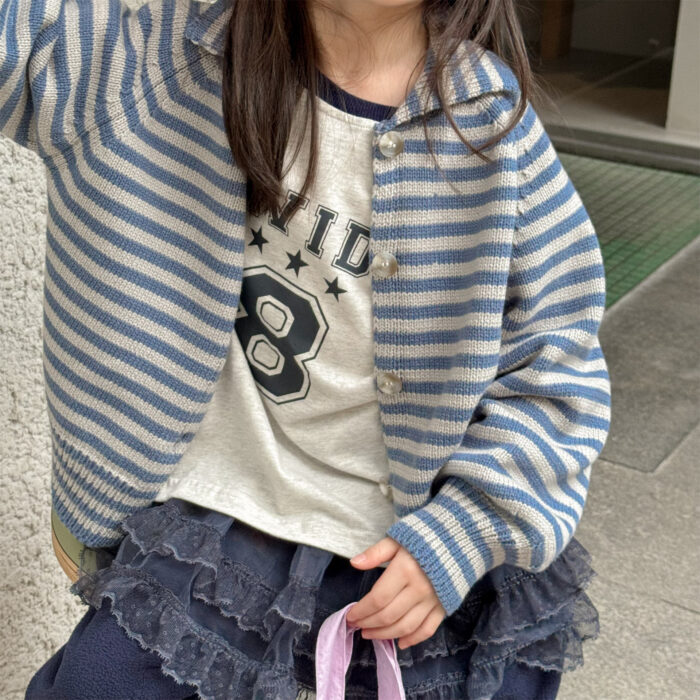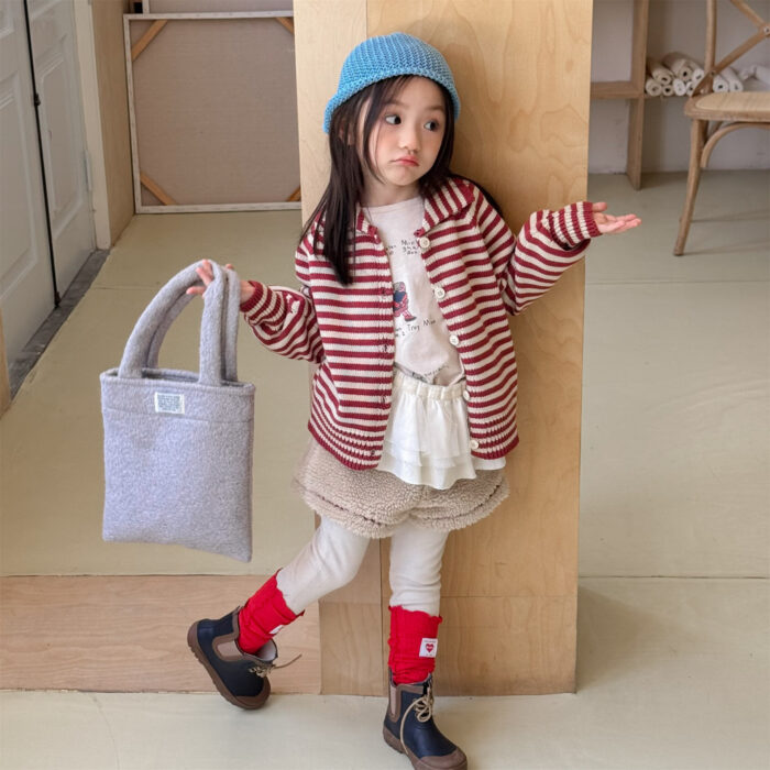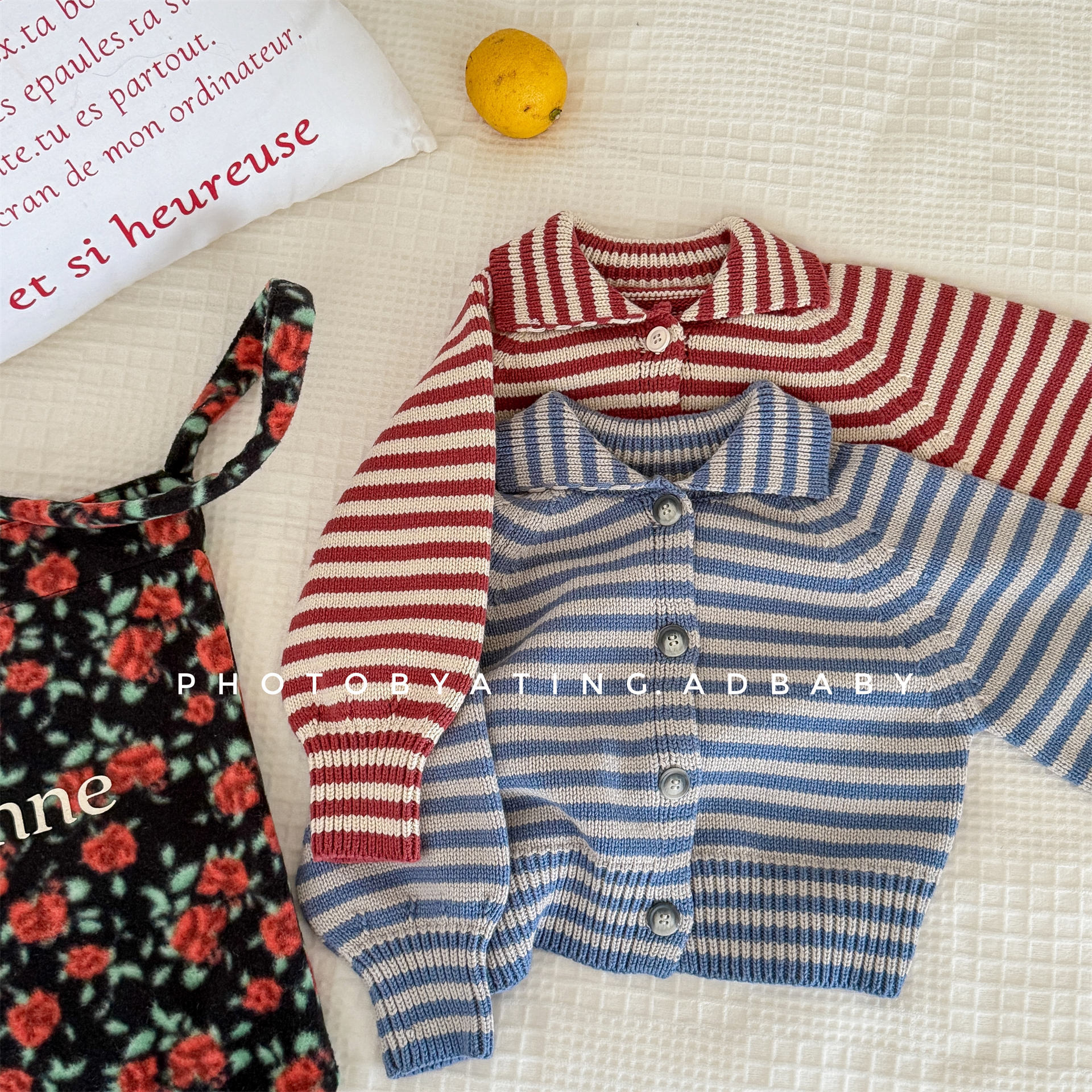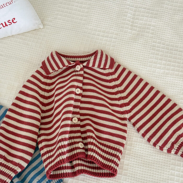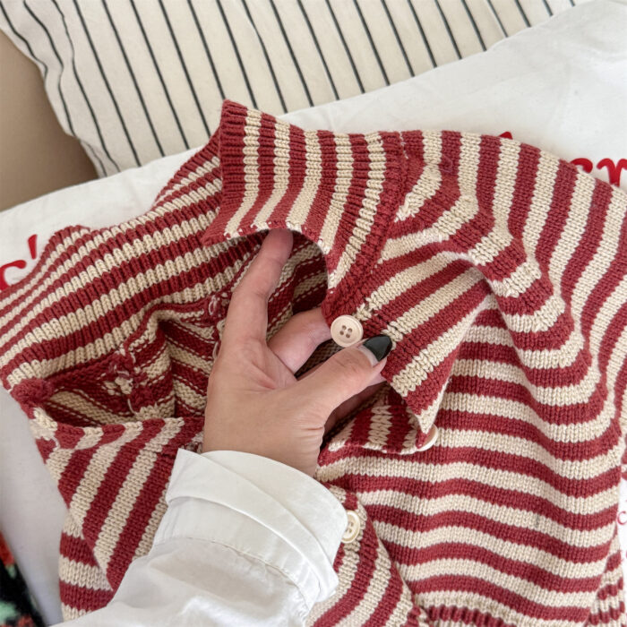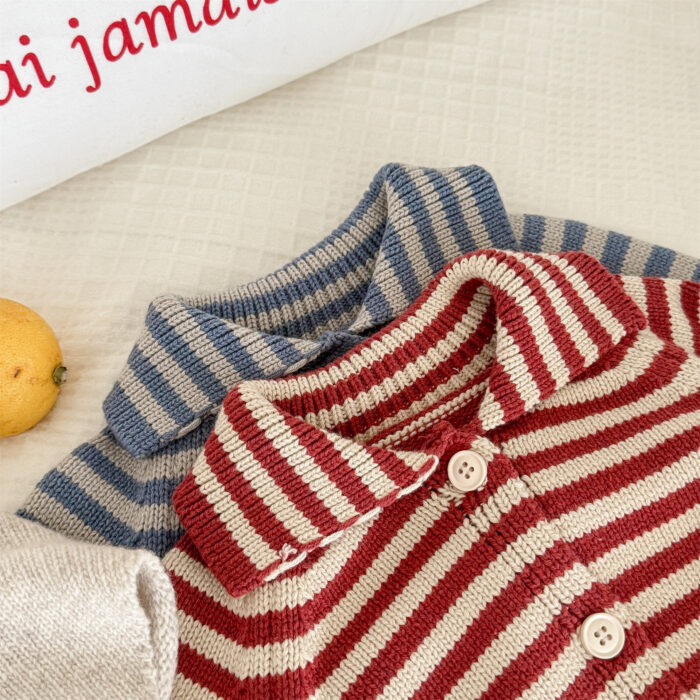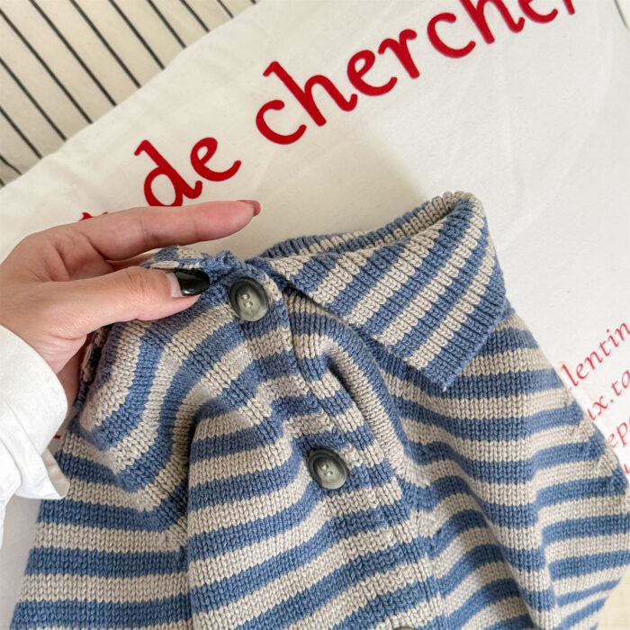 韓版冬季80~130cm – 橫條針織外套 / 二色