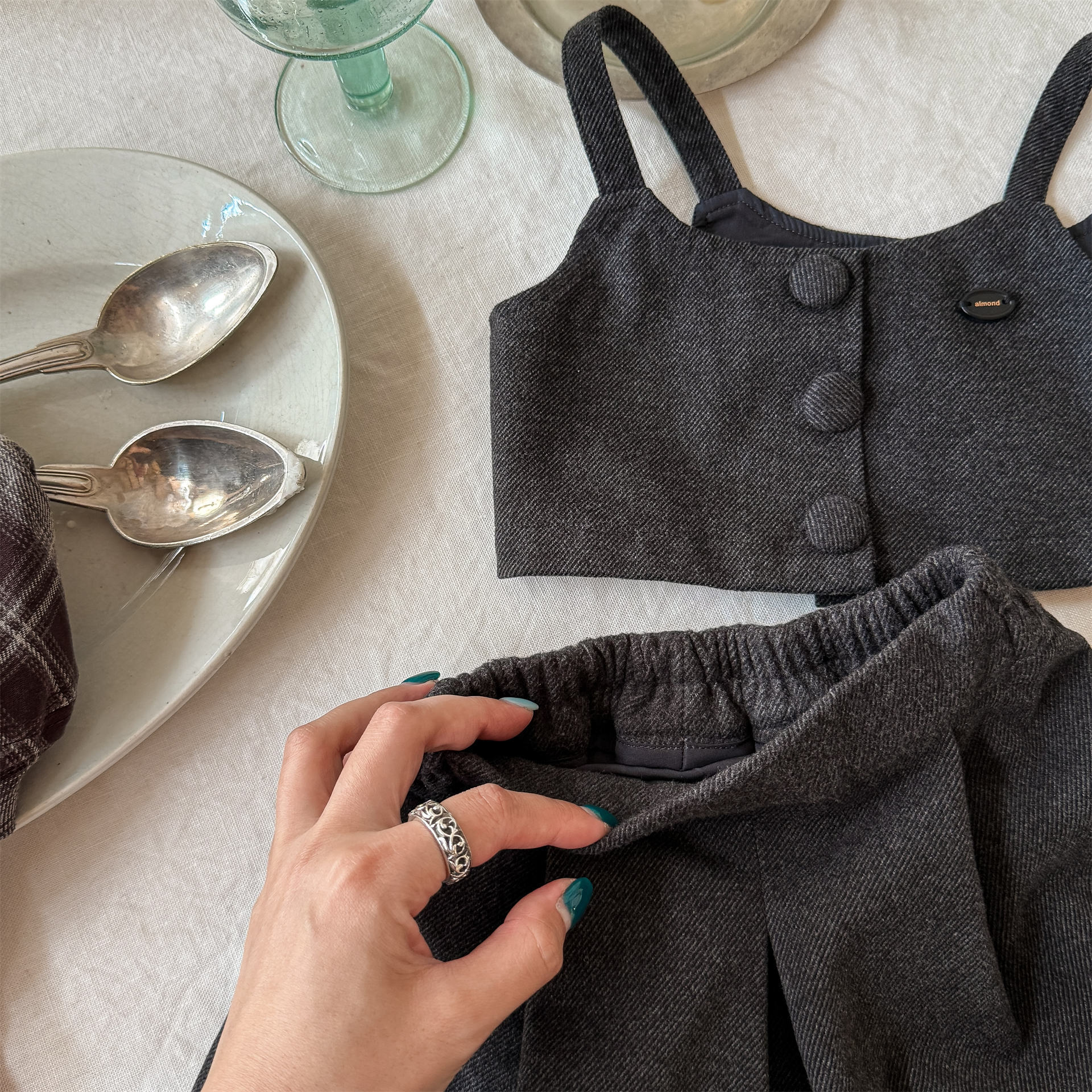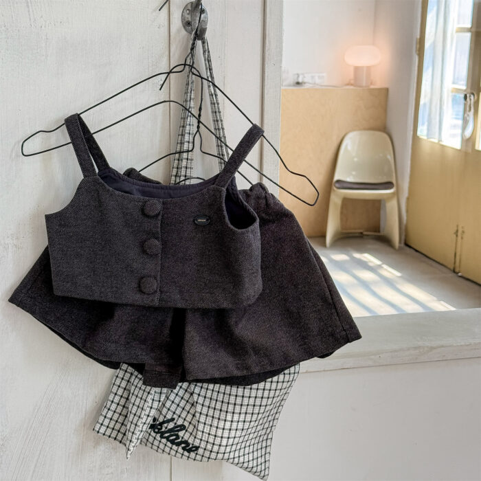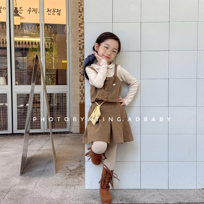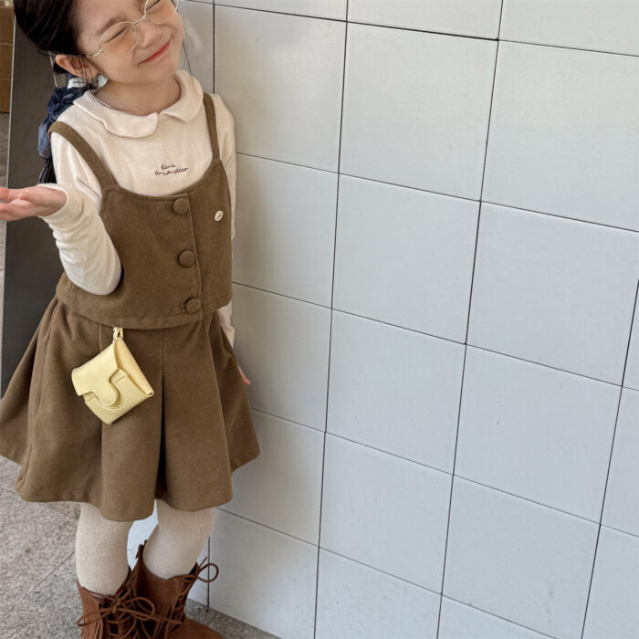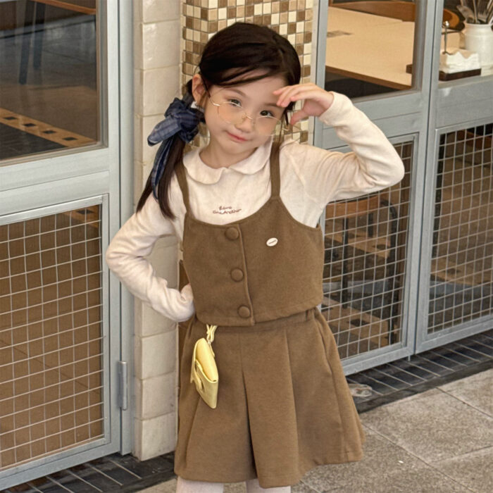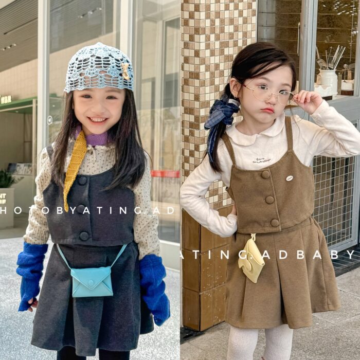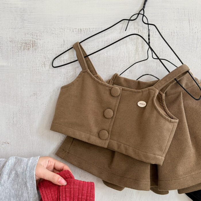 韓版冬季80~130cm – 毛呢套裝(背心+褲裙) / 二色