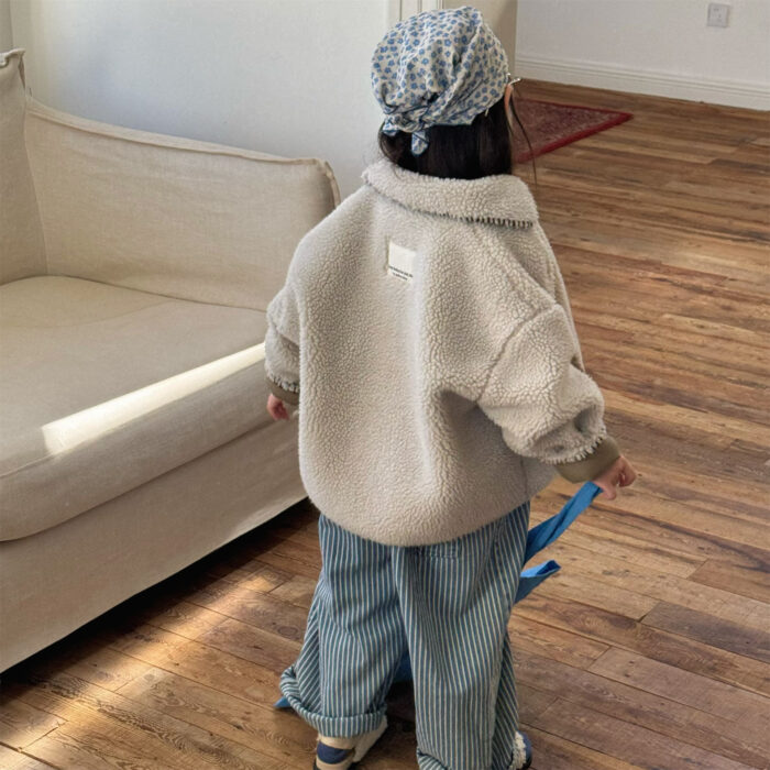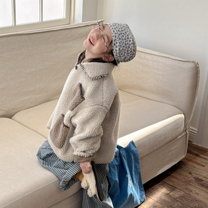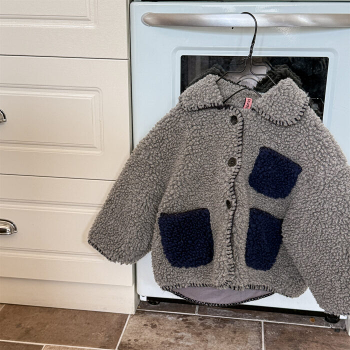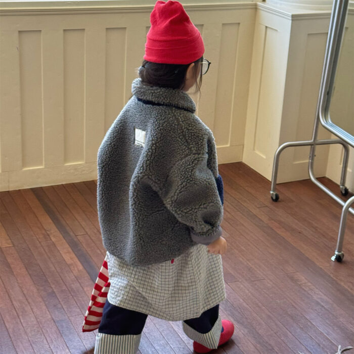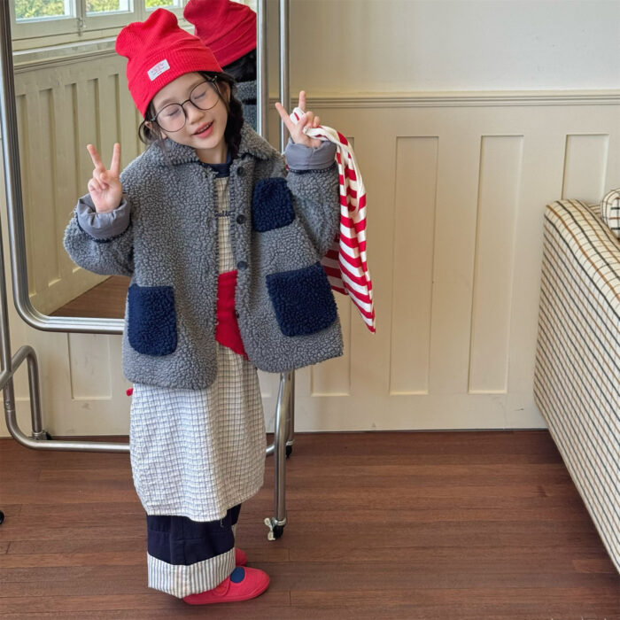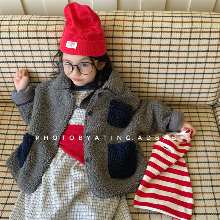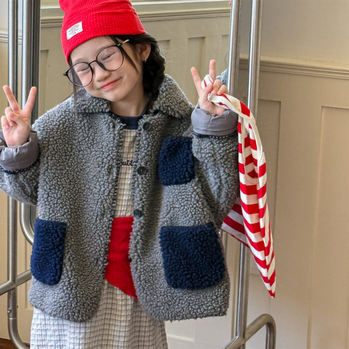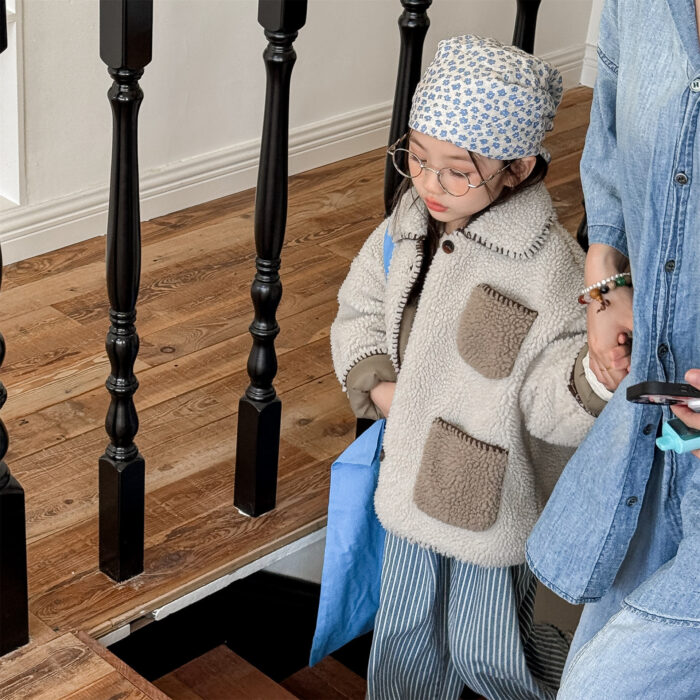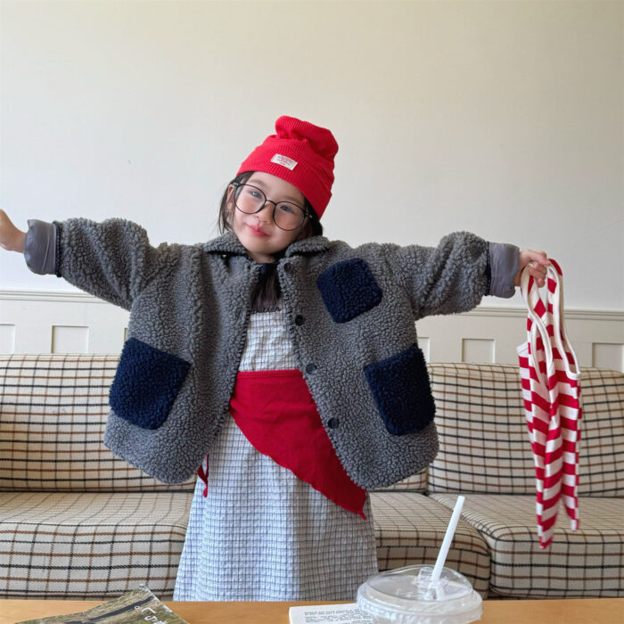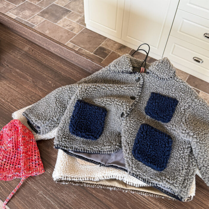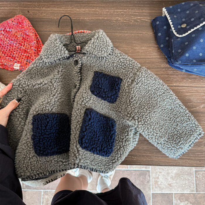 韓版冬季80~130cm – 羊羔絨棉口袋外套 / 二色