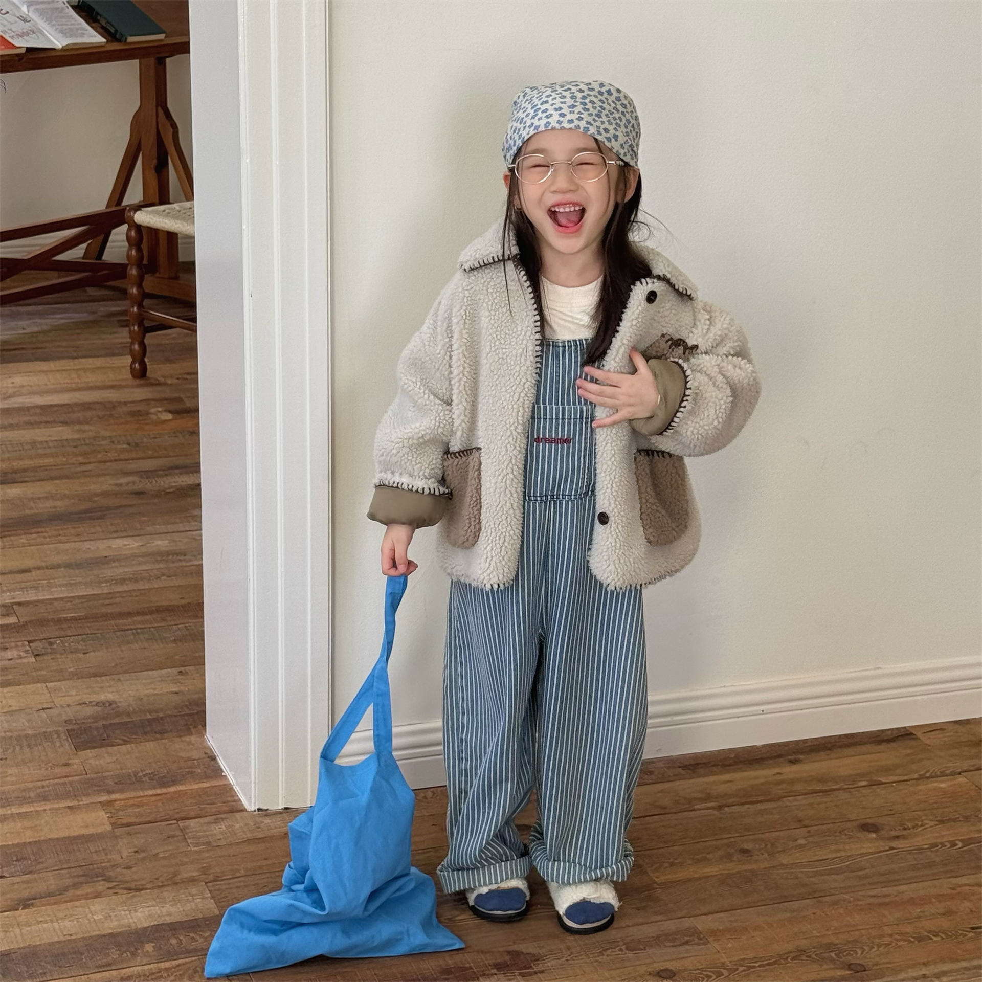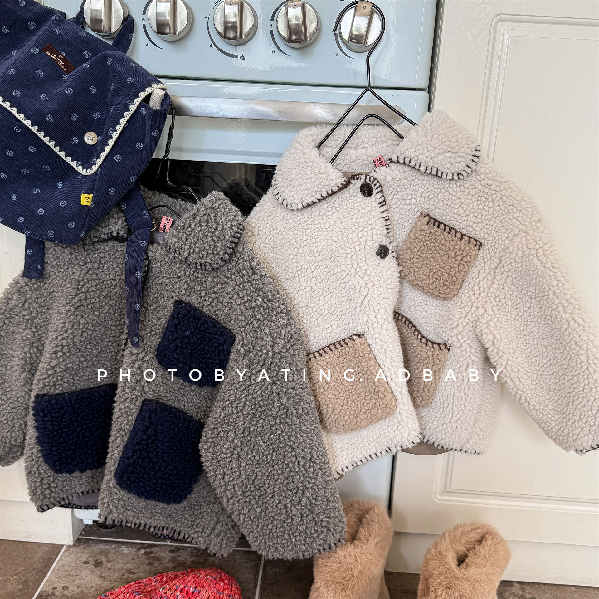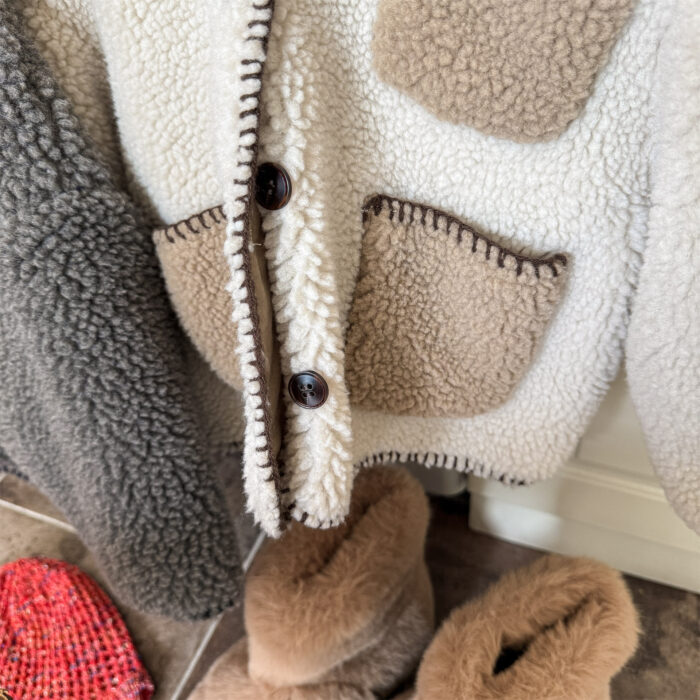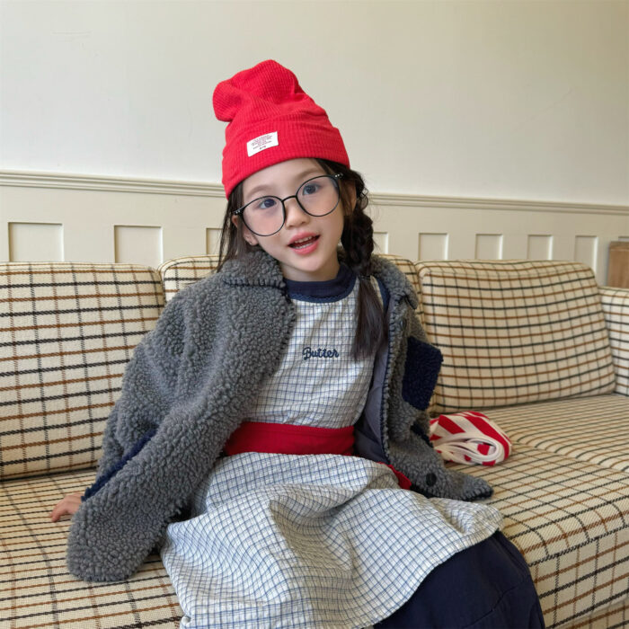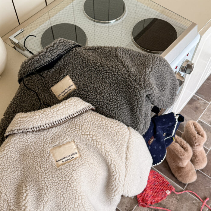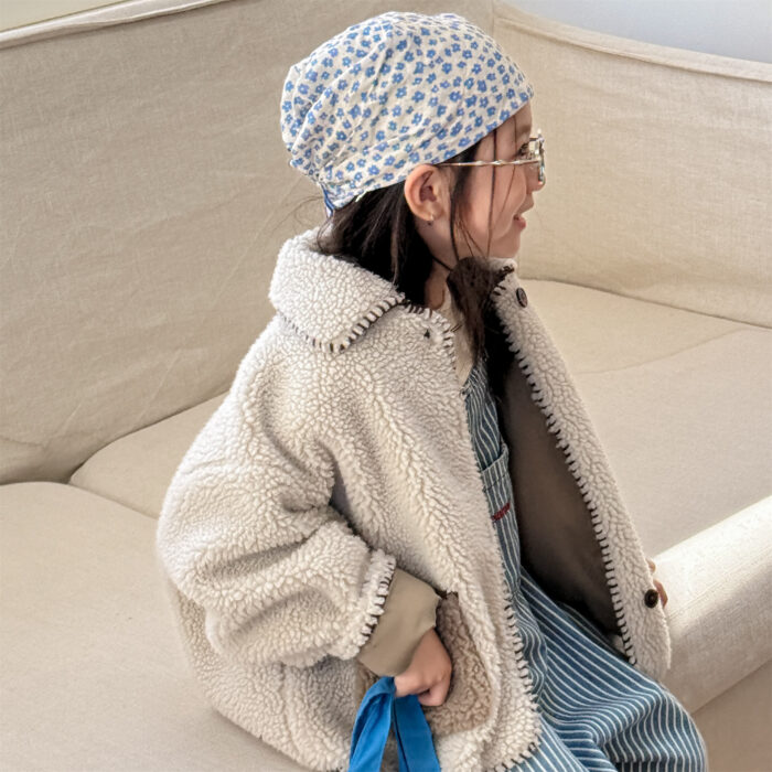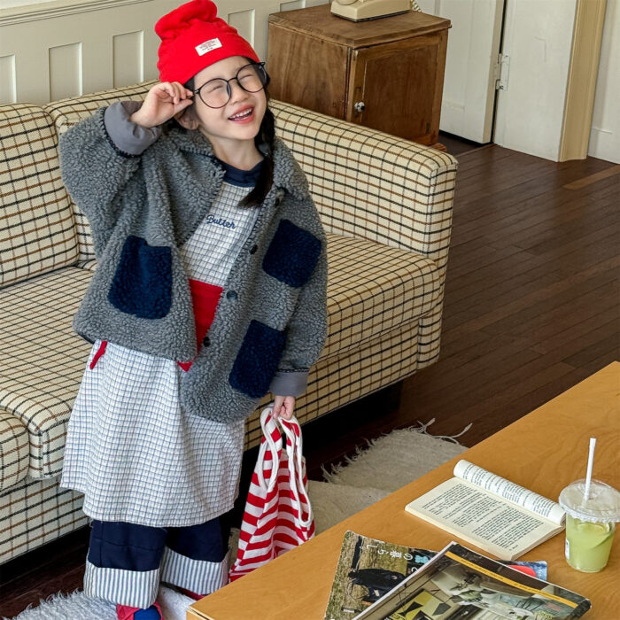 韓版冬季80~130cm – 羊羔絨棉口袋外套 / 二色