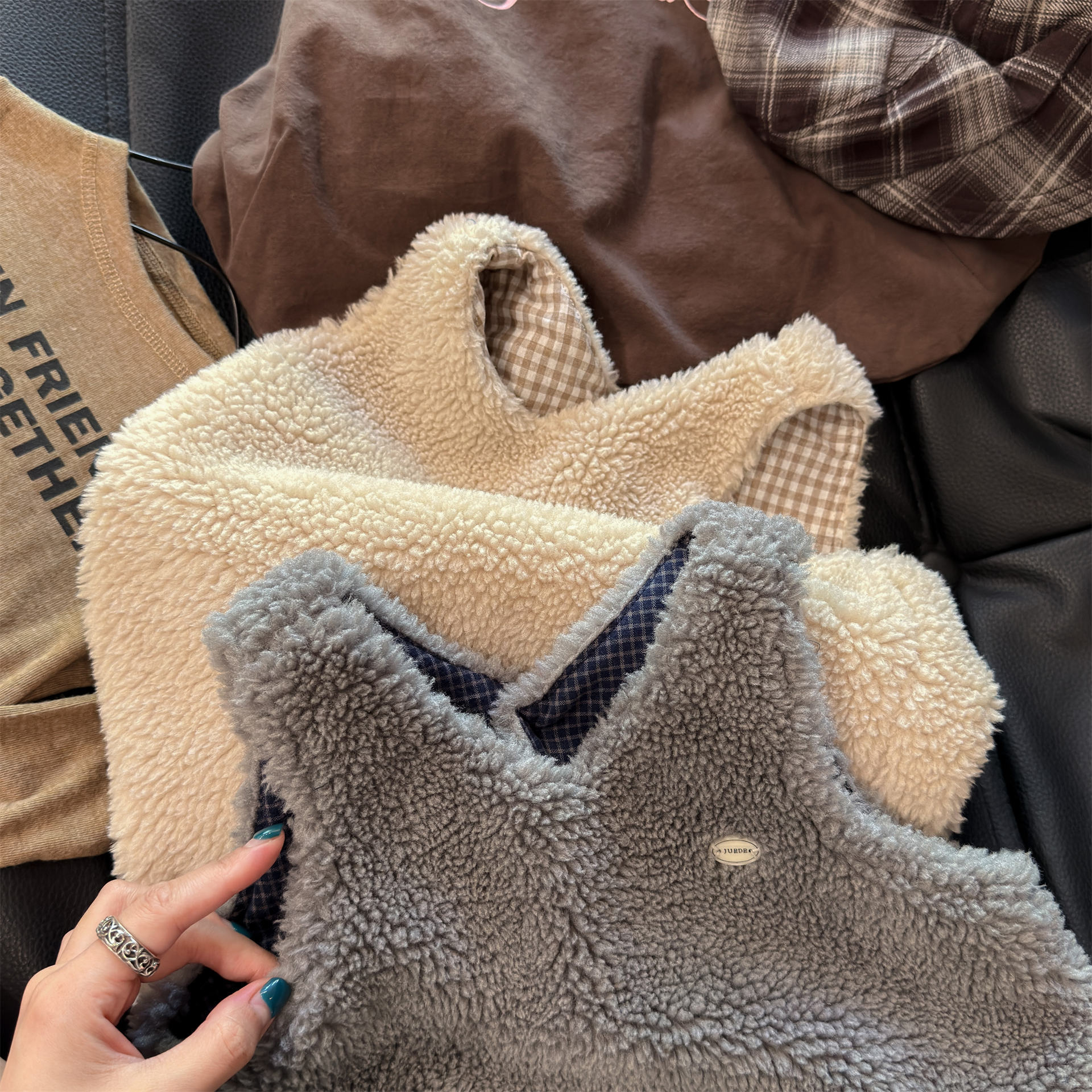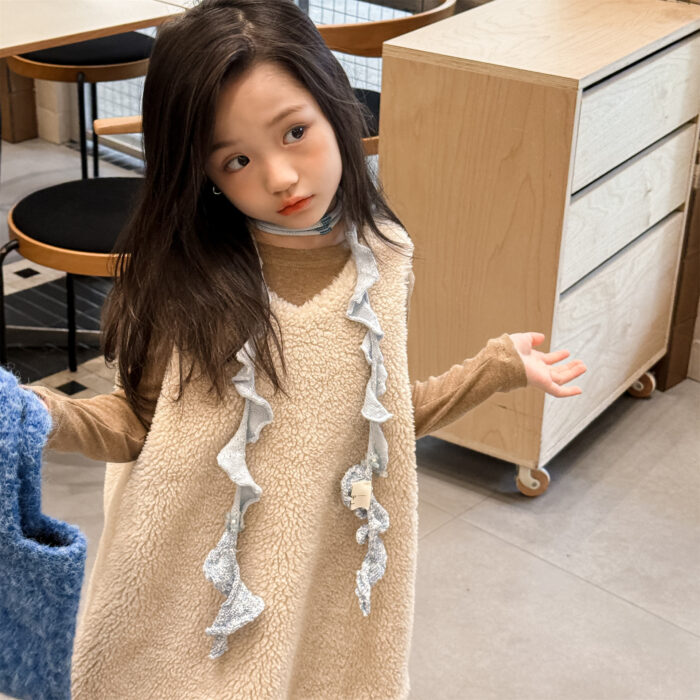 韓版冬季80~130cm – 羊羔絨背心裙可當上衣 / 二色