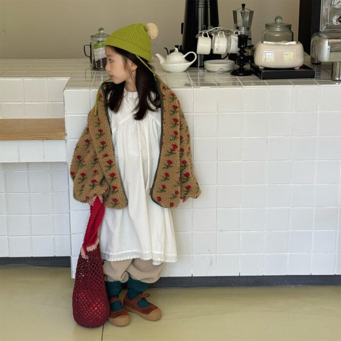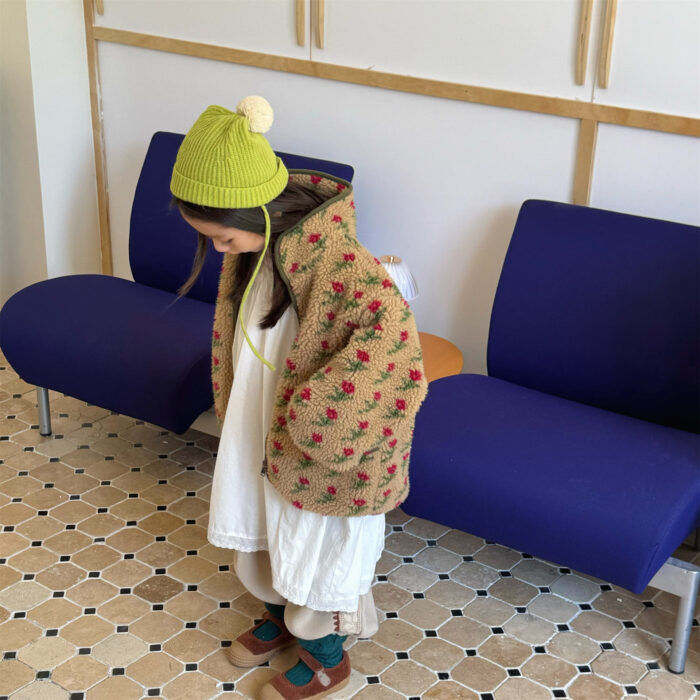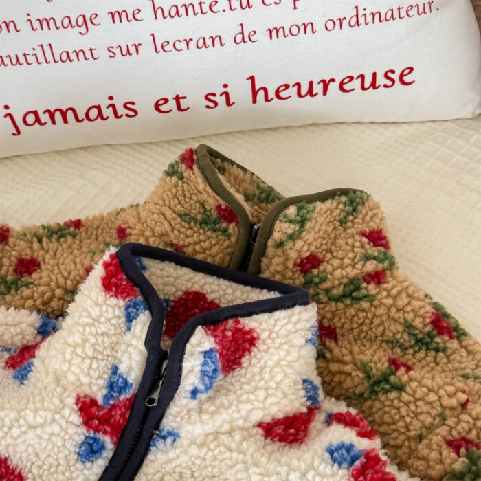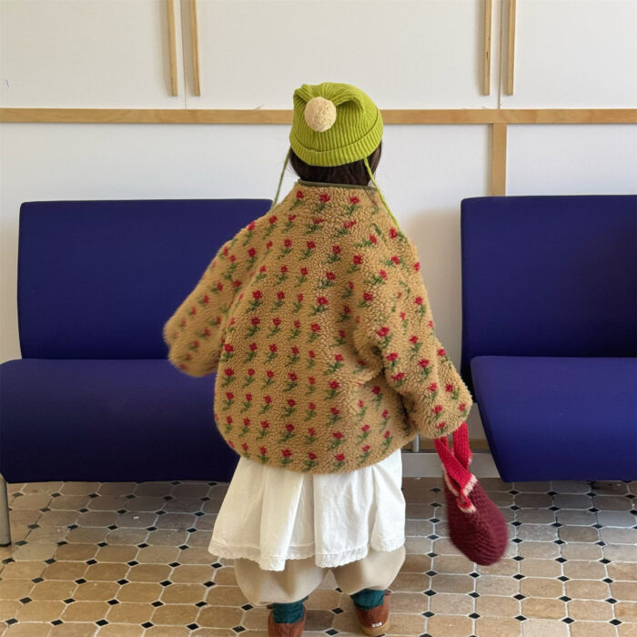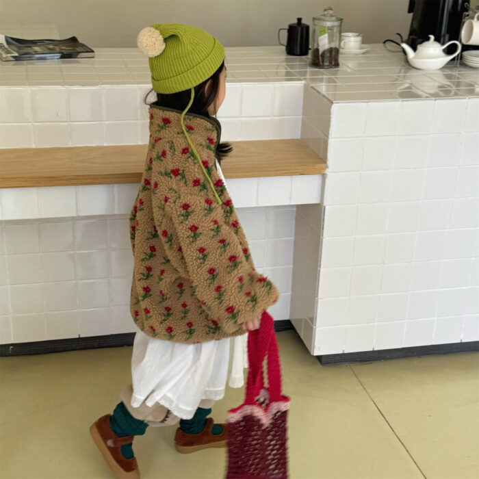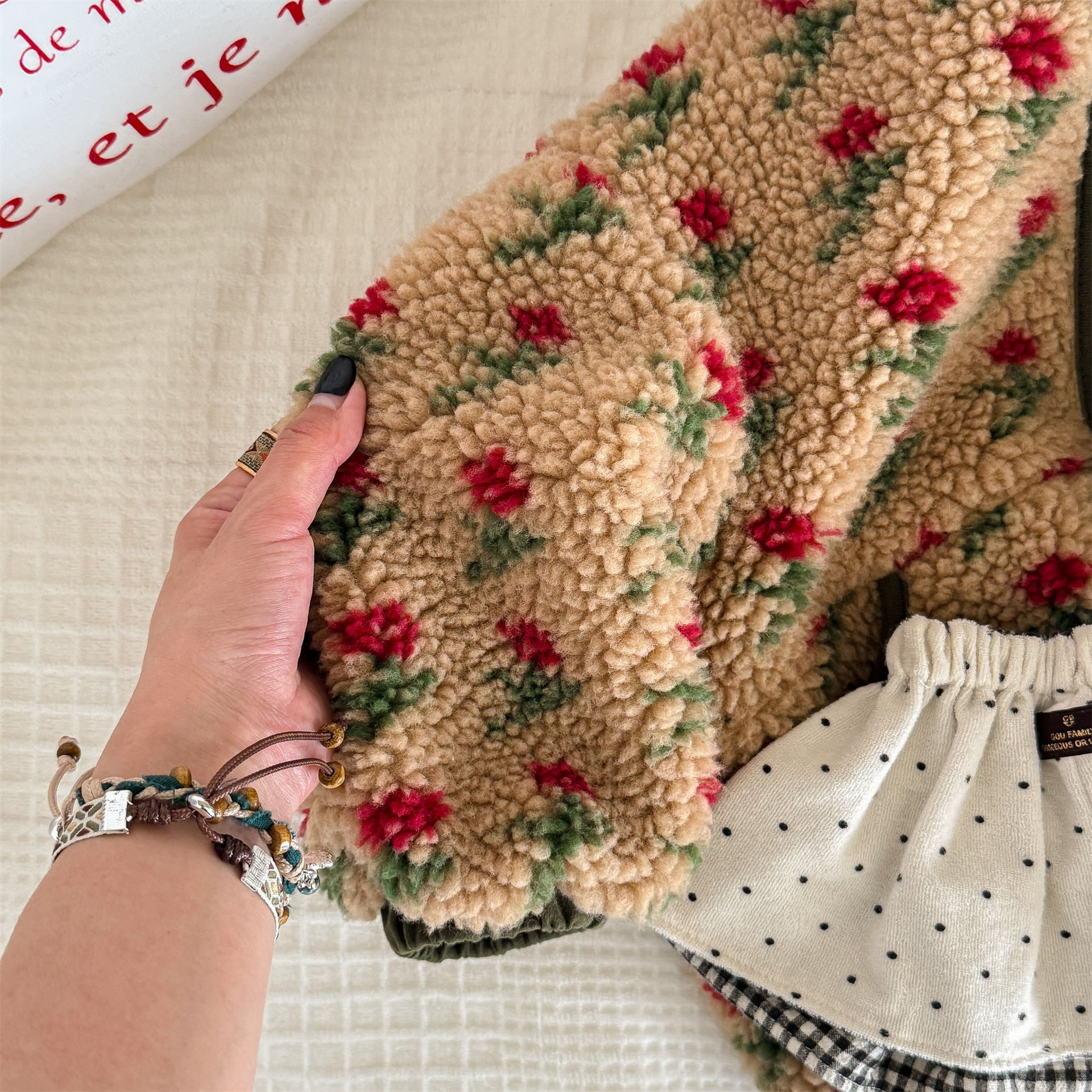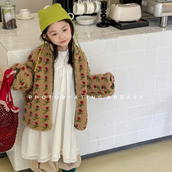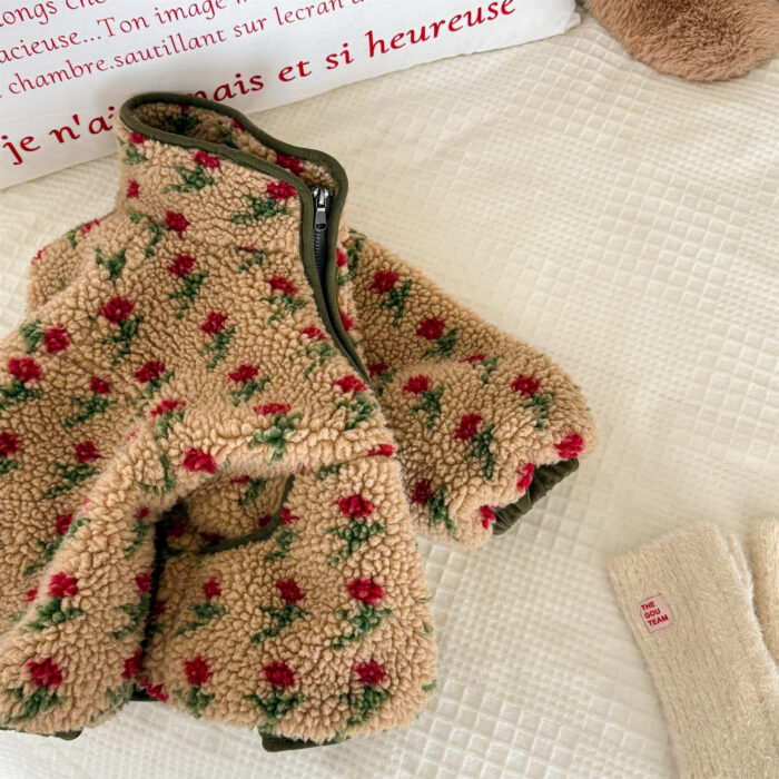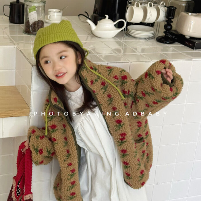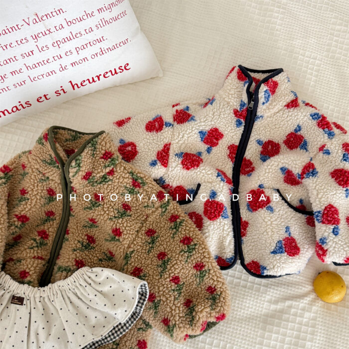 韓版冬季80~130cm – 花花羊羔絨棉外套 / 二色