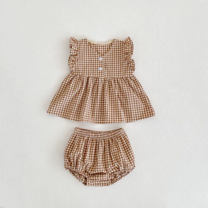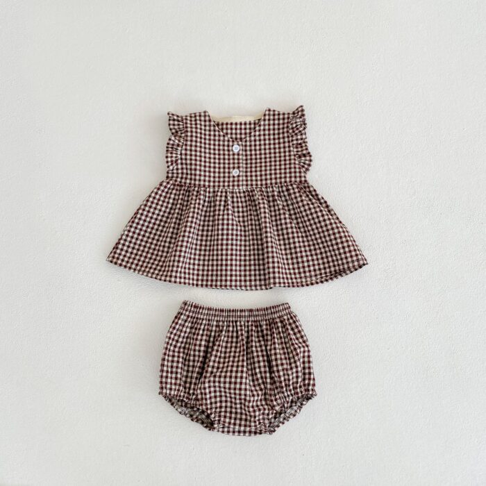 韓版夏季66~100cm – 森林系格紋套裝 / 二色