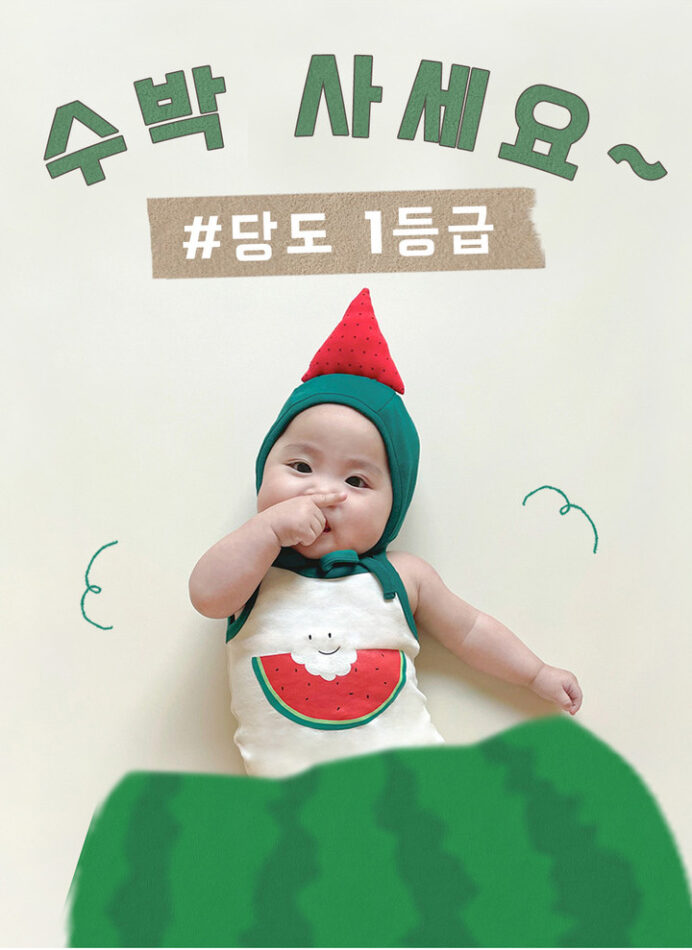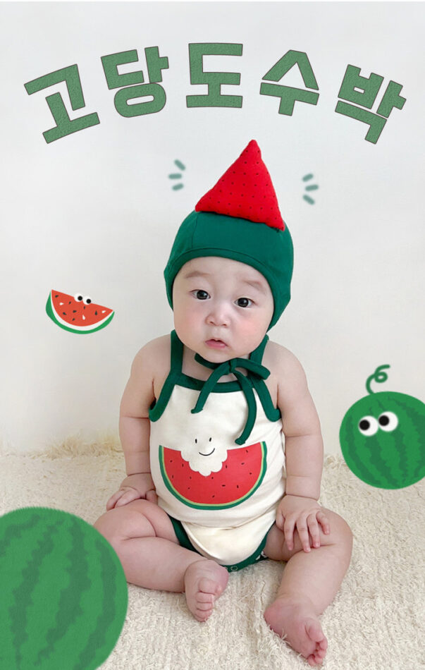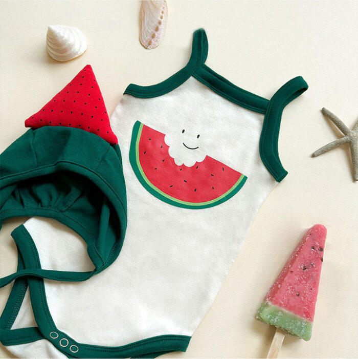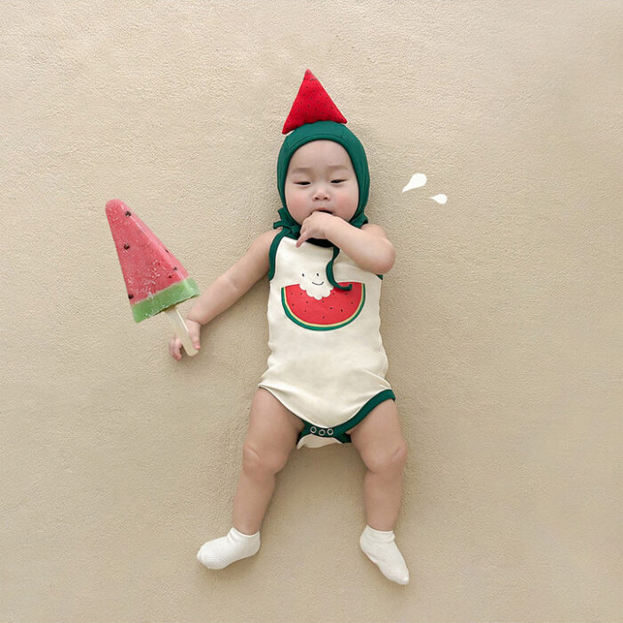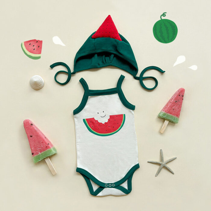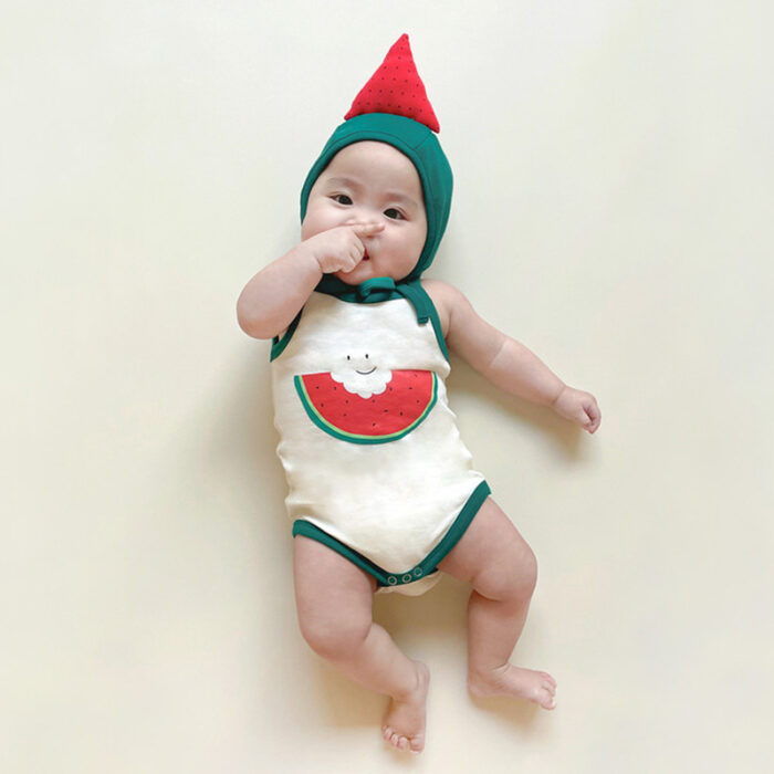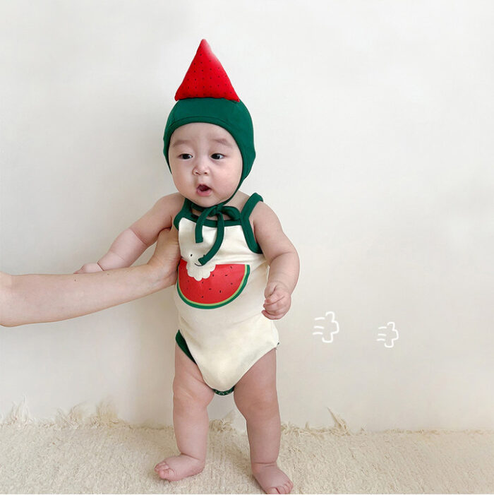韓版夏季66~90cm – 可愛西瓜包屁衣含帽子