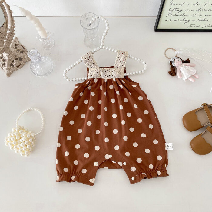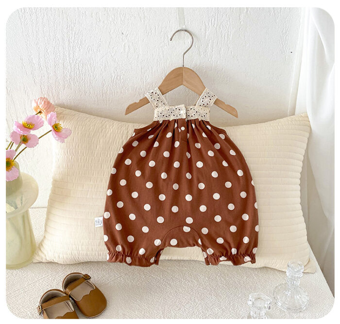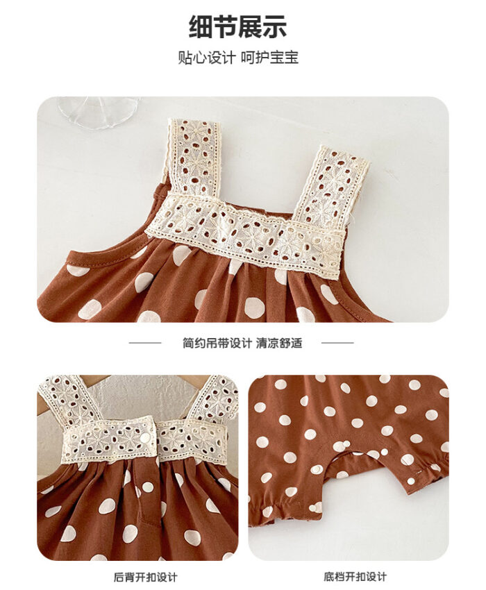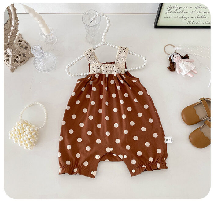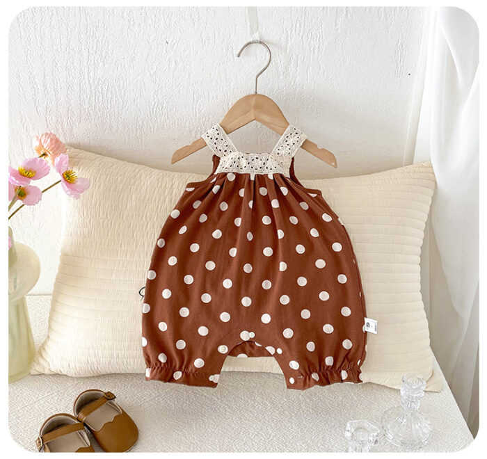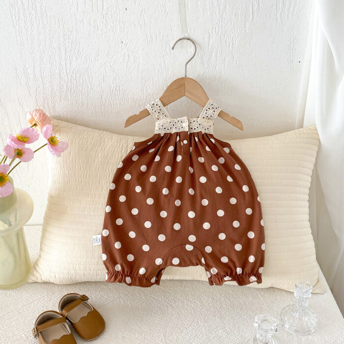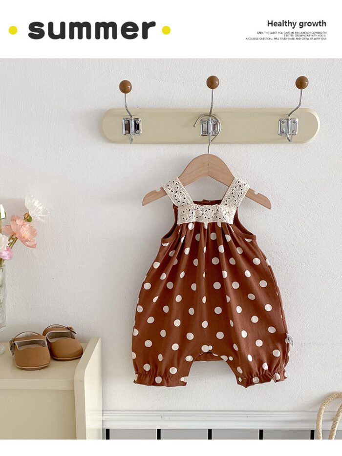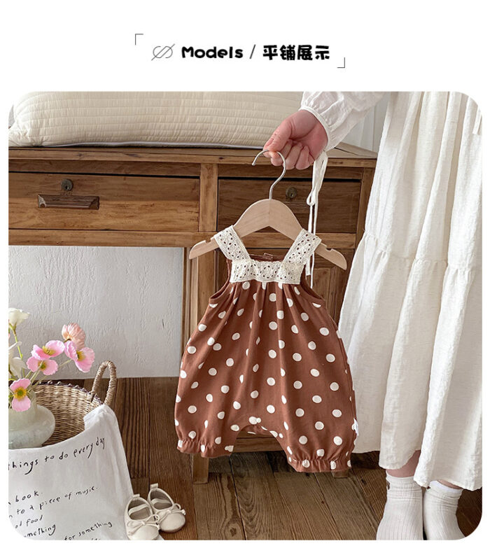 韓版夏季66~90cm – 大圓點蕾絲吊帶包屁褲