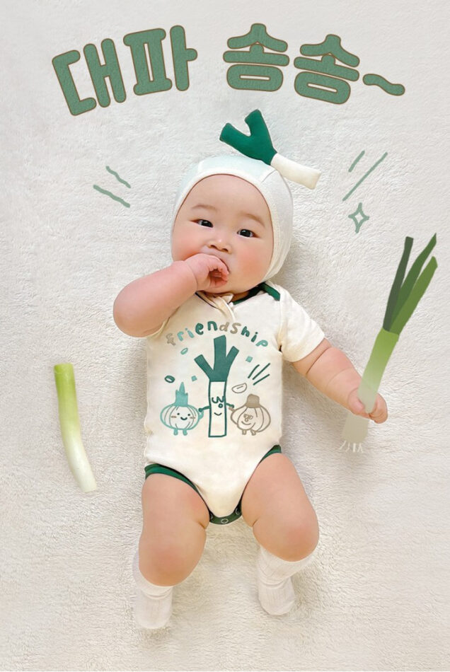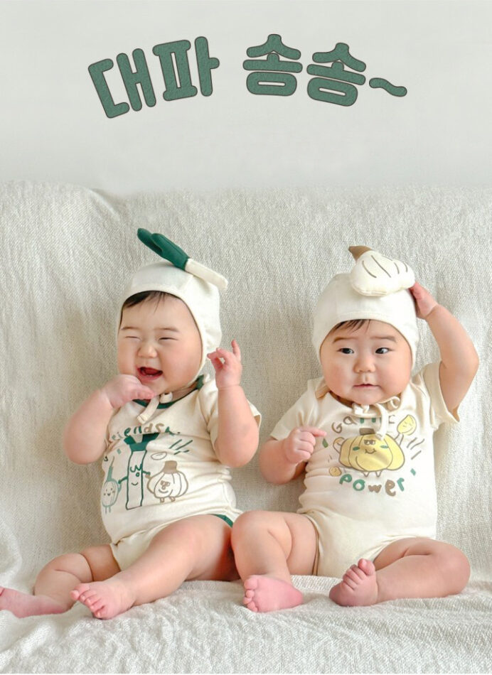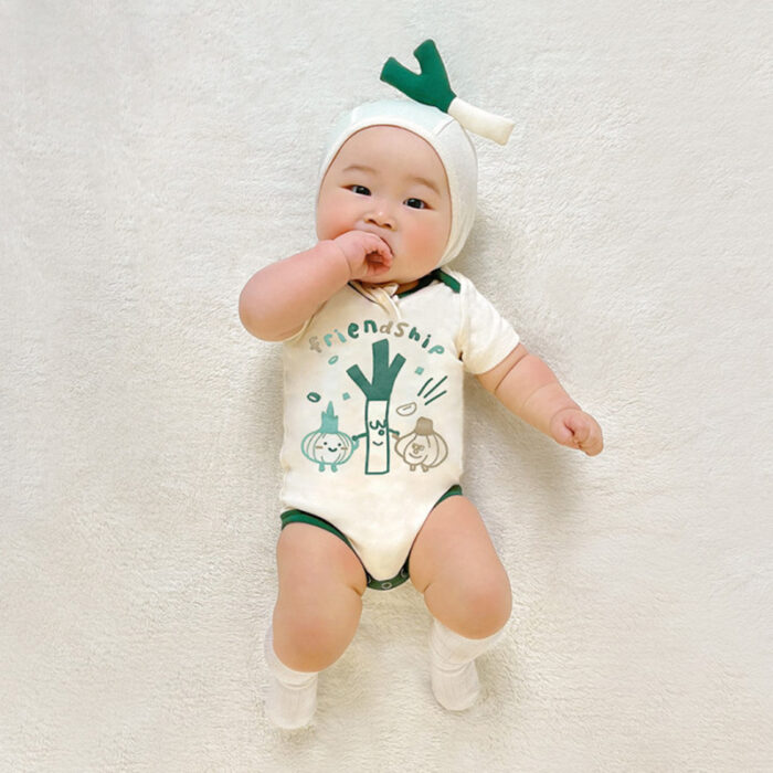 韓版夏季66~90cm – 大蔥造型包屁衣含帽子