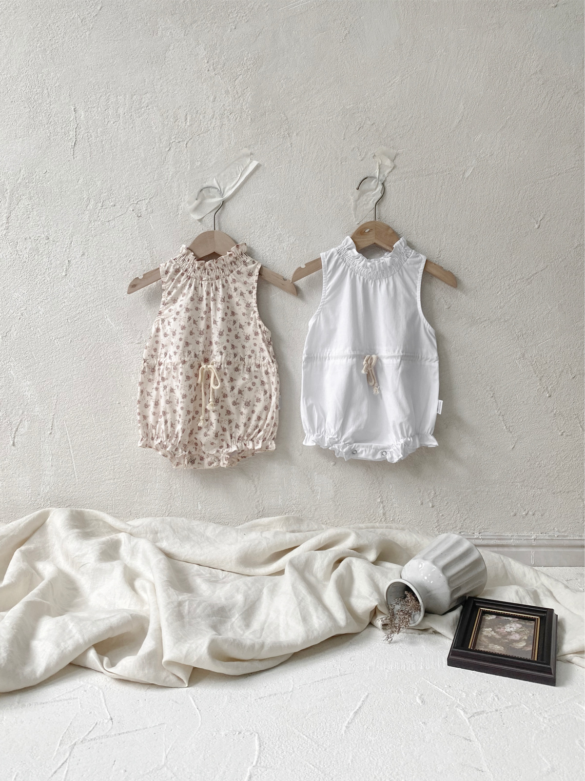 韓版夏季66~90cm – 捲邊背心包屁衣 / 二色