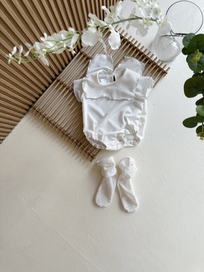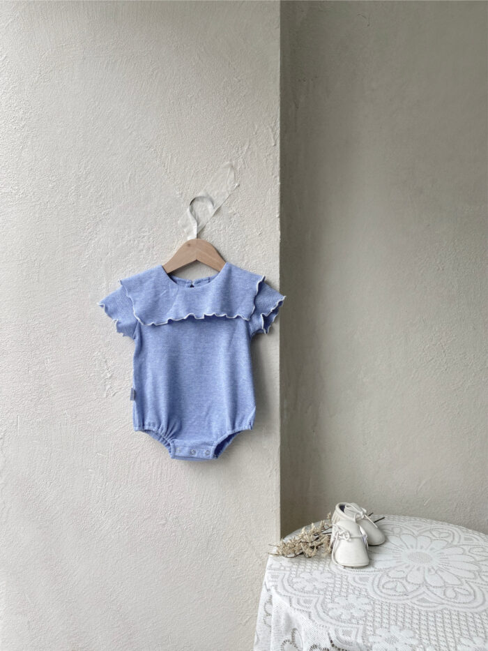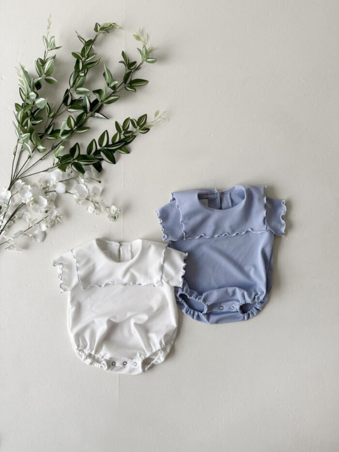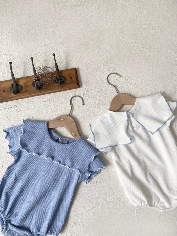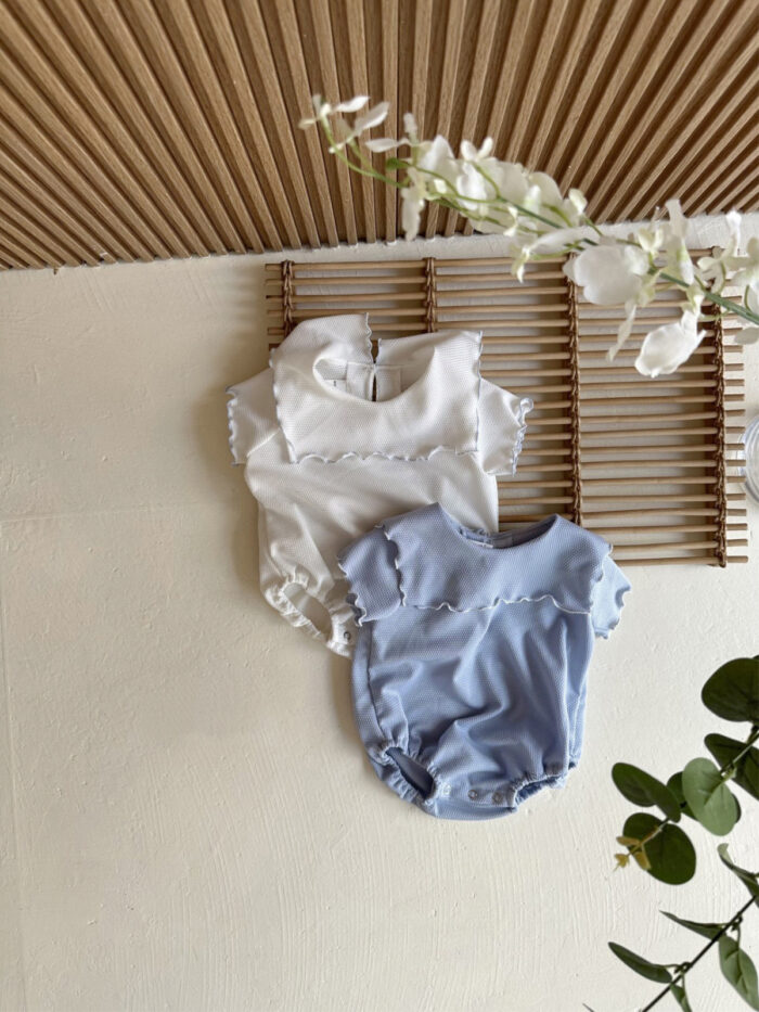 韓版夏季66~90cm – 木耳邊大領片包屁衣 / 二色
