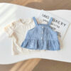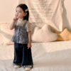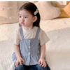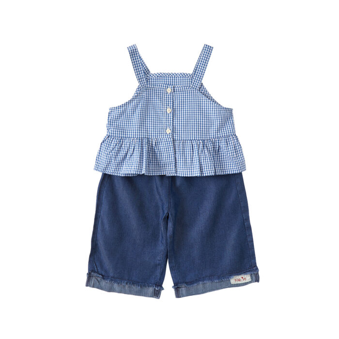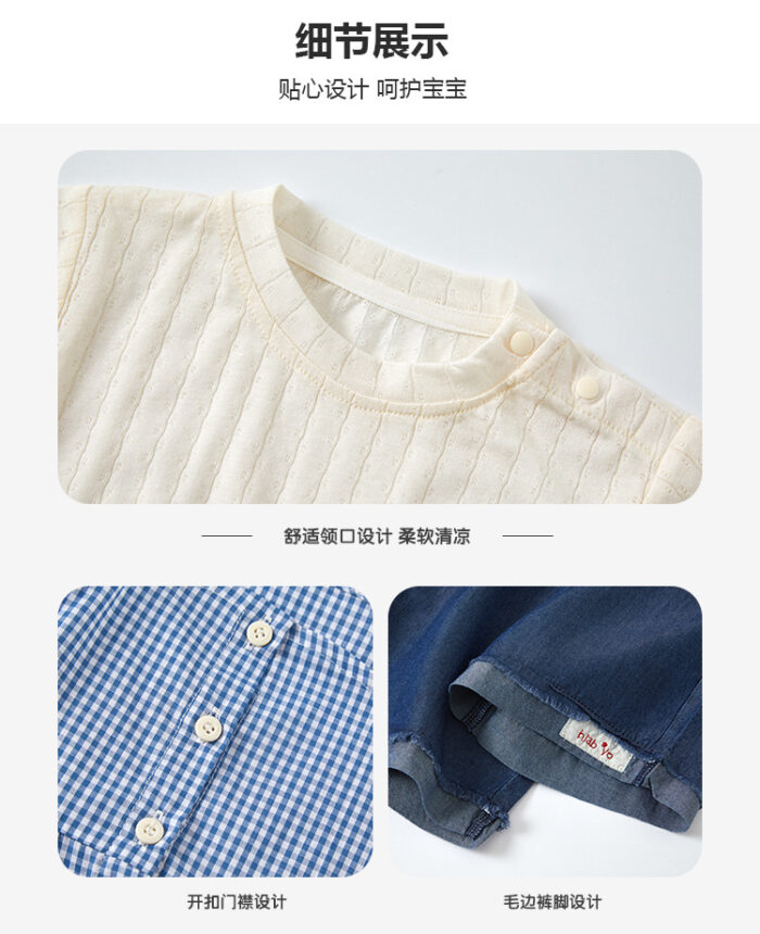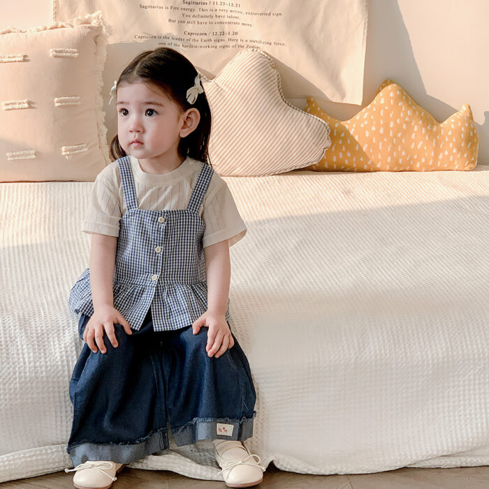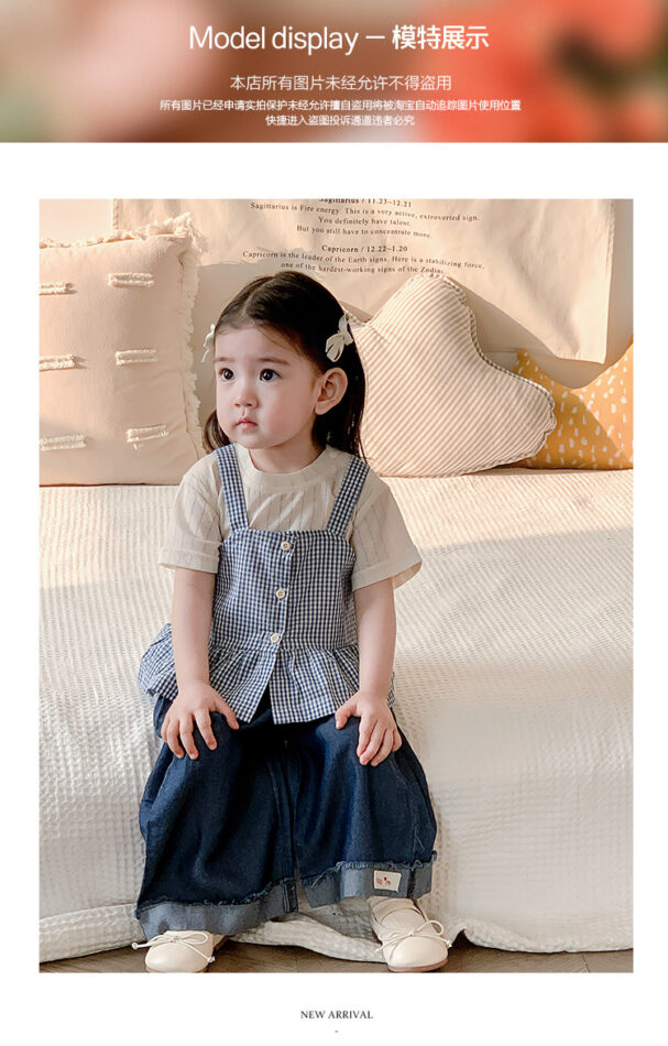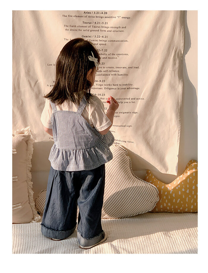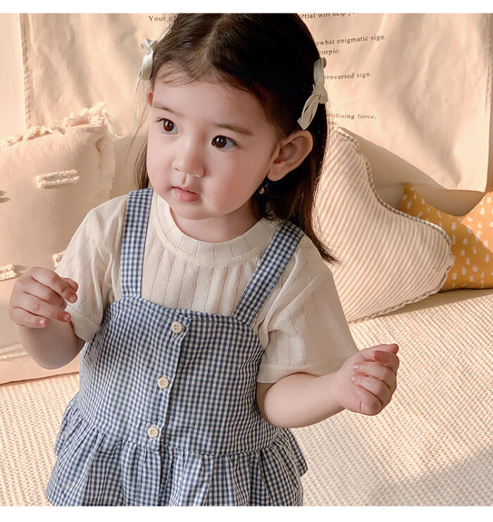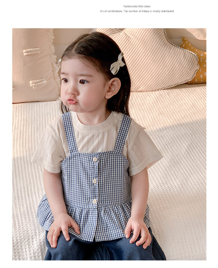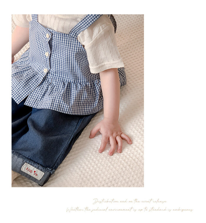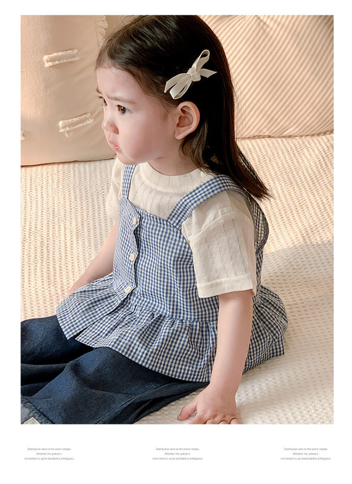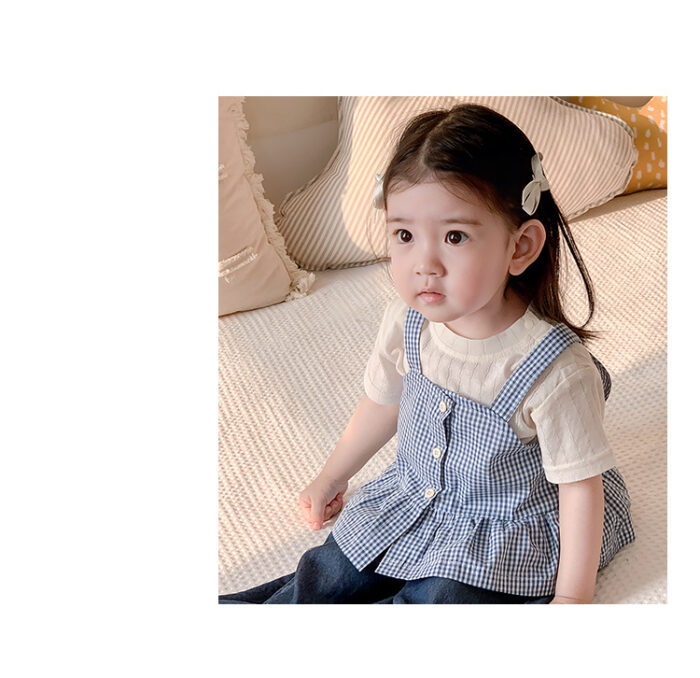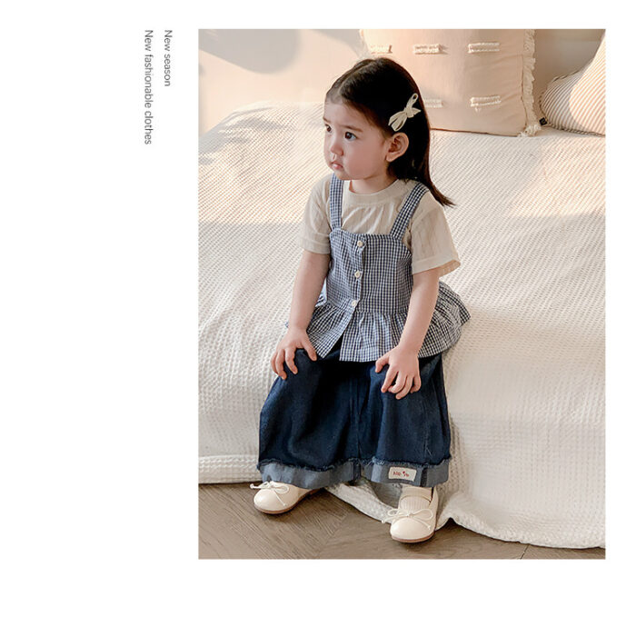 韓版夏季73~100cm – 格子背心短袖上衣寬褲三件組套裝