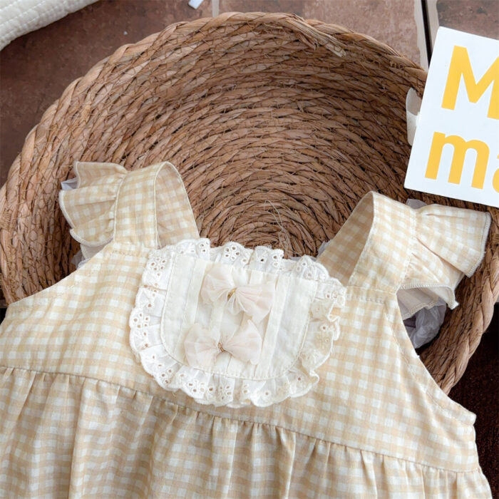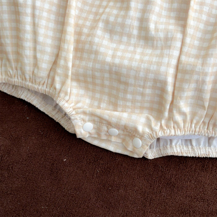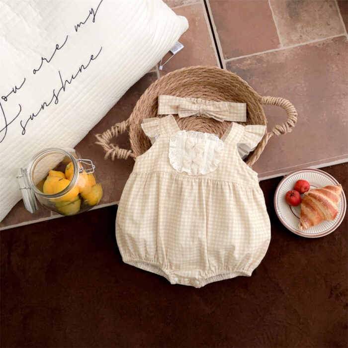 韓版夏季66~90cm – 格紋包屁衣+髮帶