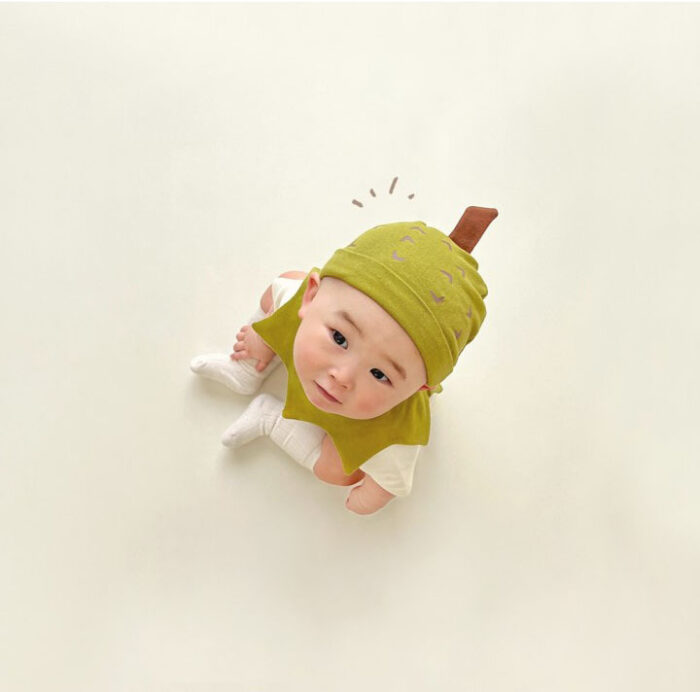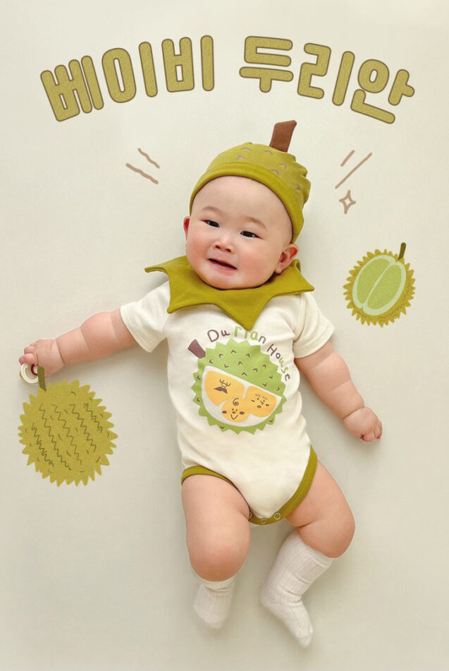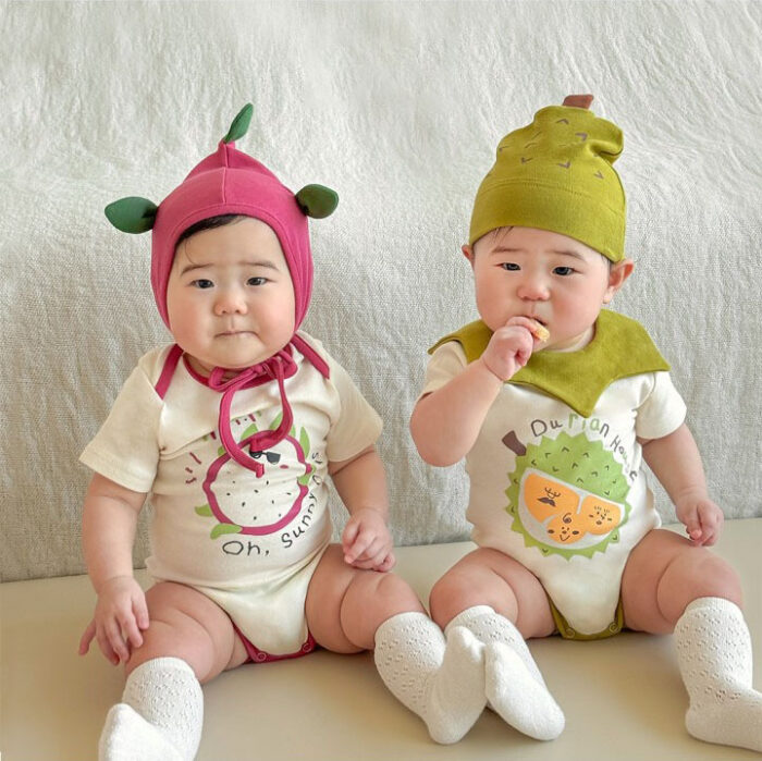韓版夏季66~90cm – 榴槤造型包屁衣含帽子