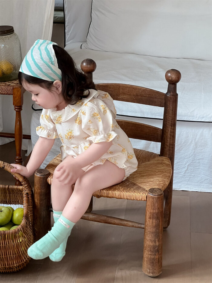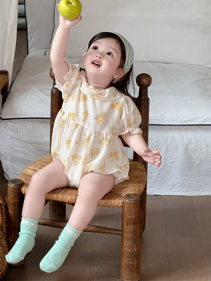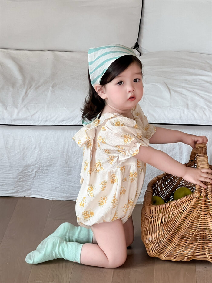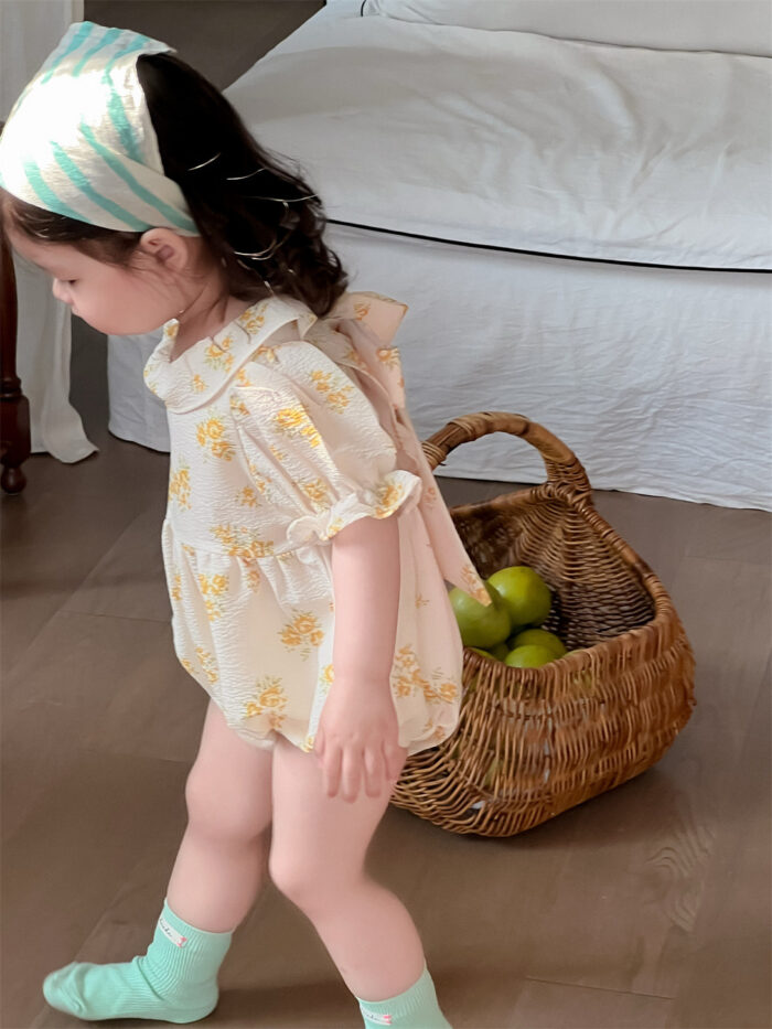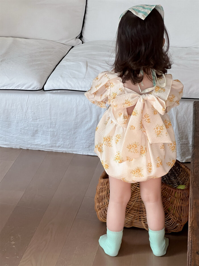 韓版夏季66~90cm – 碎花公主袖後綁帶包屁衣