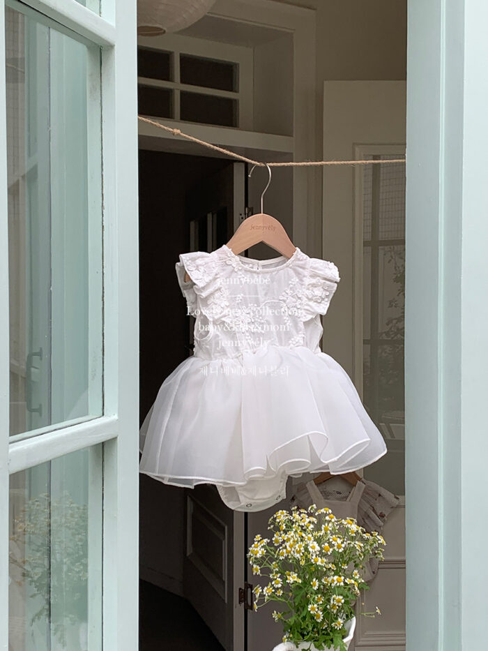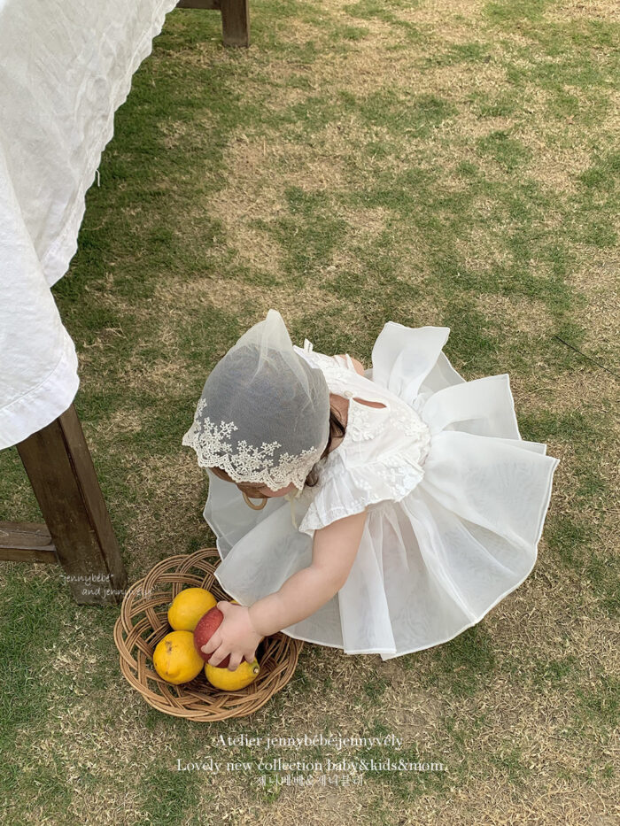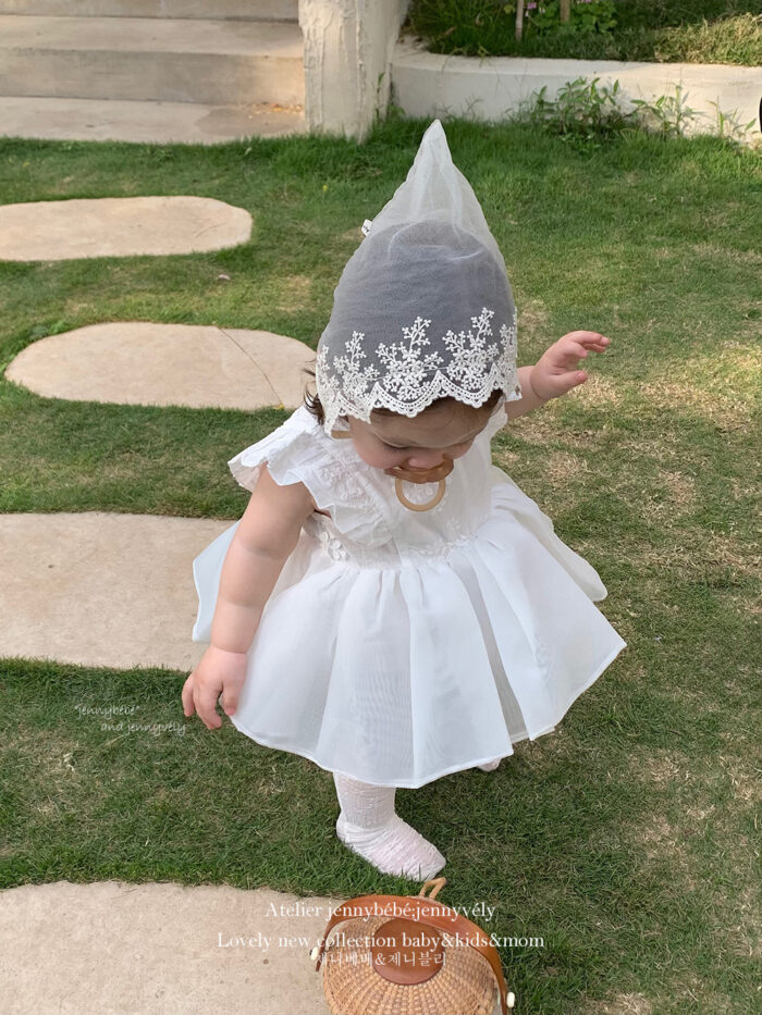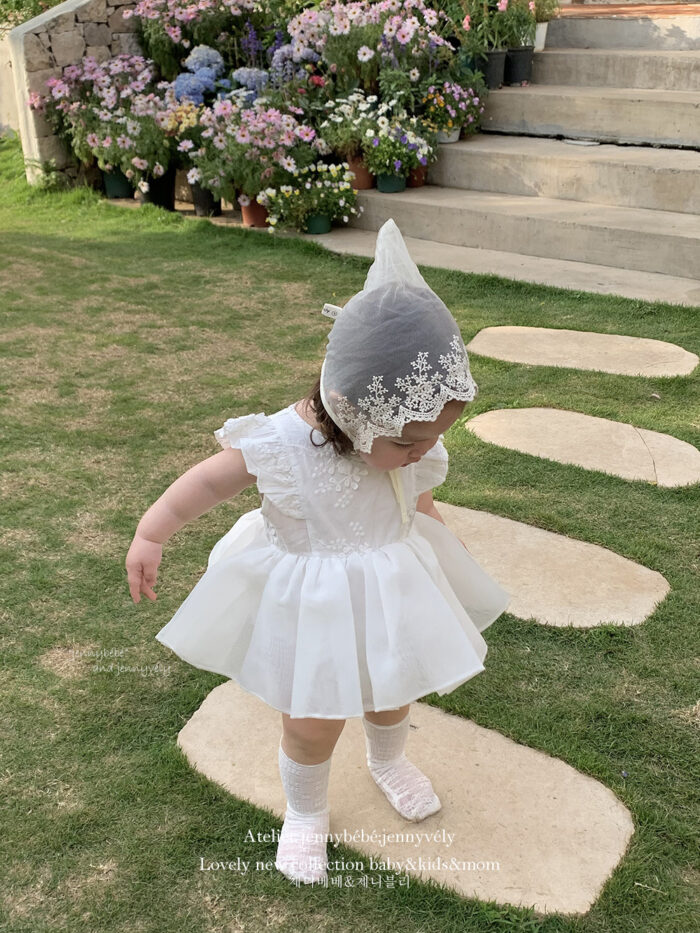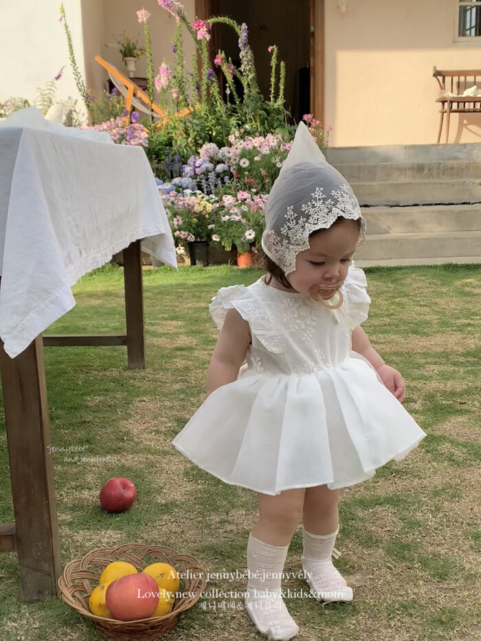 韓版夏季66~90cm – 繡花網紗包屁衣/帽子 百日宴 抓週