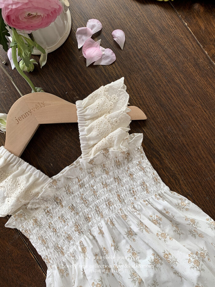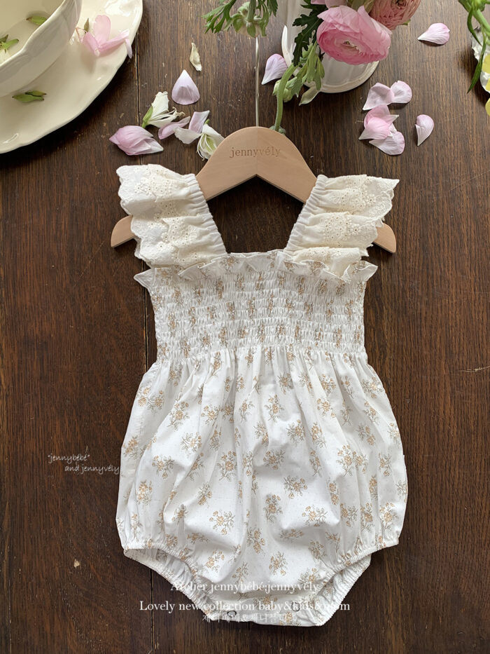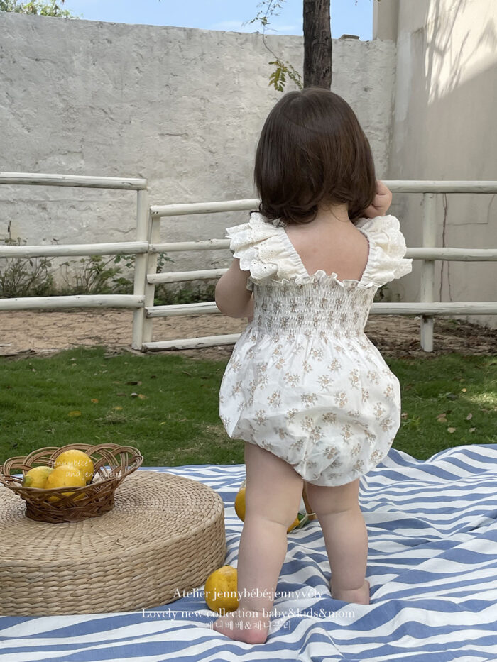 韓版夏季66~90cm – 蕾絲袖碎花包屁衣