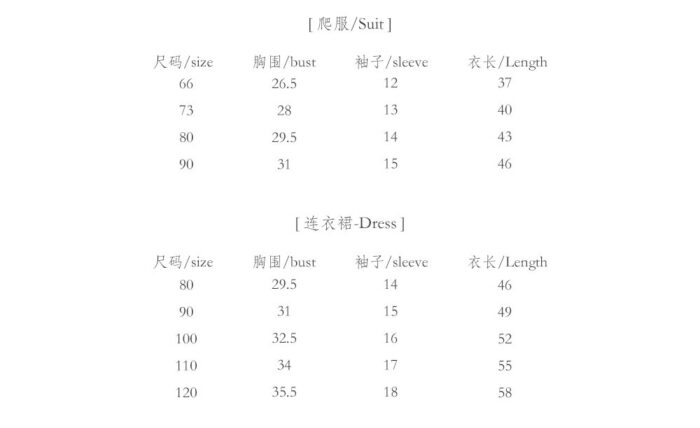 韓版童裝尺寸